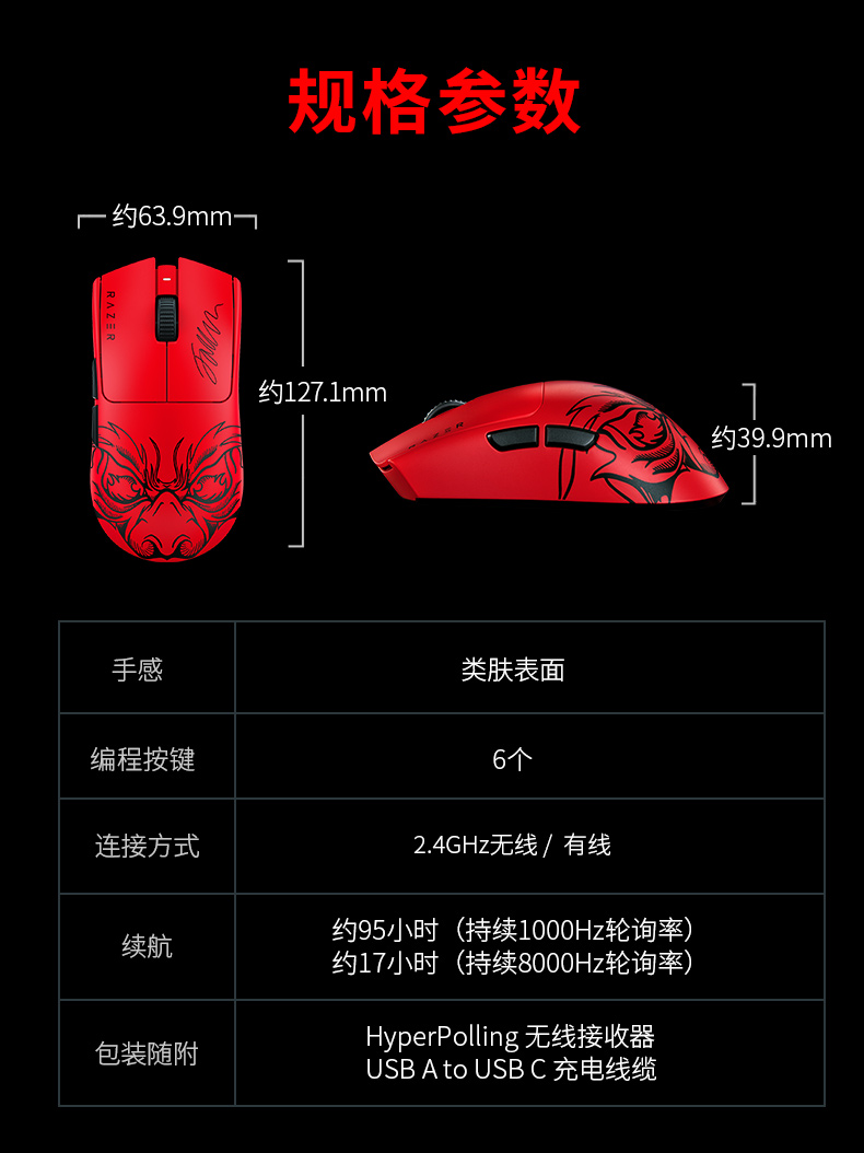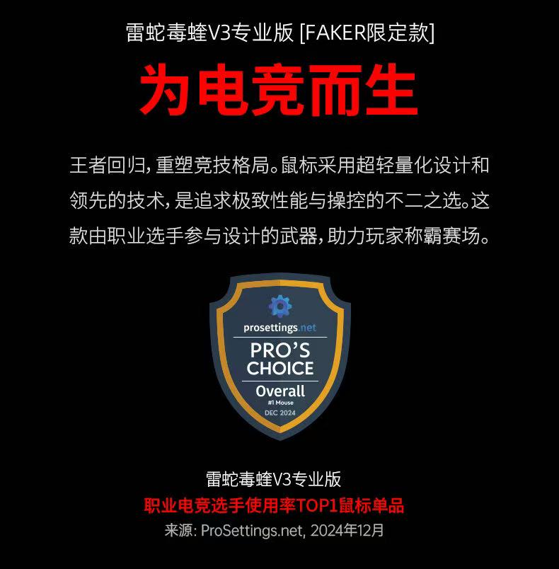 Razer雷蛇毒蝰V3 Pro专业版 Faker联名款无线鼠标【雷蛇官方直营,3年有限质保】