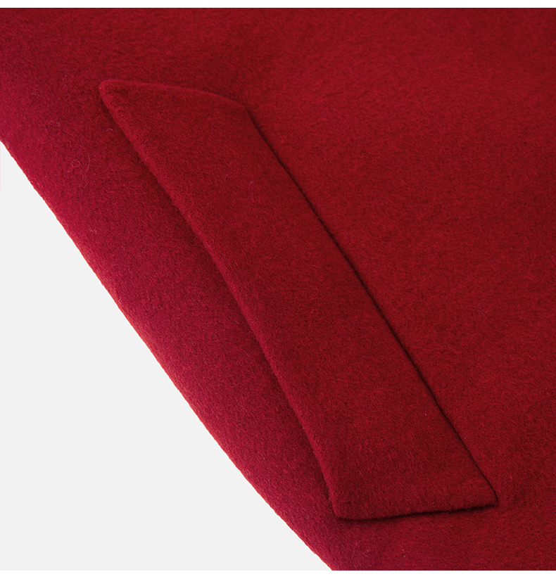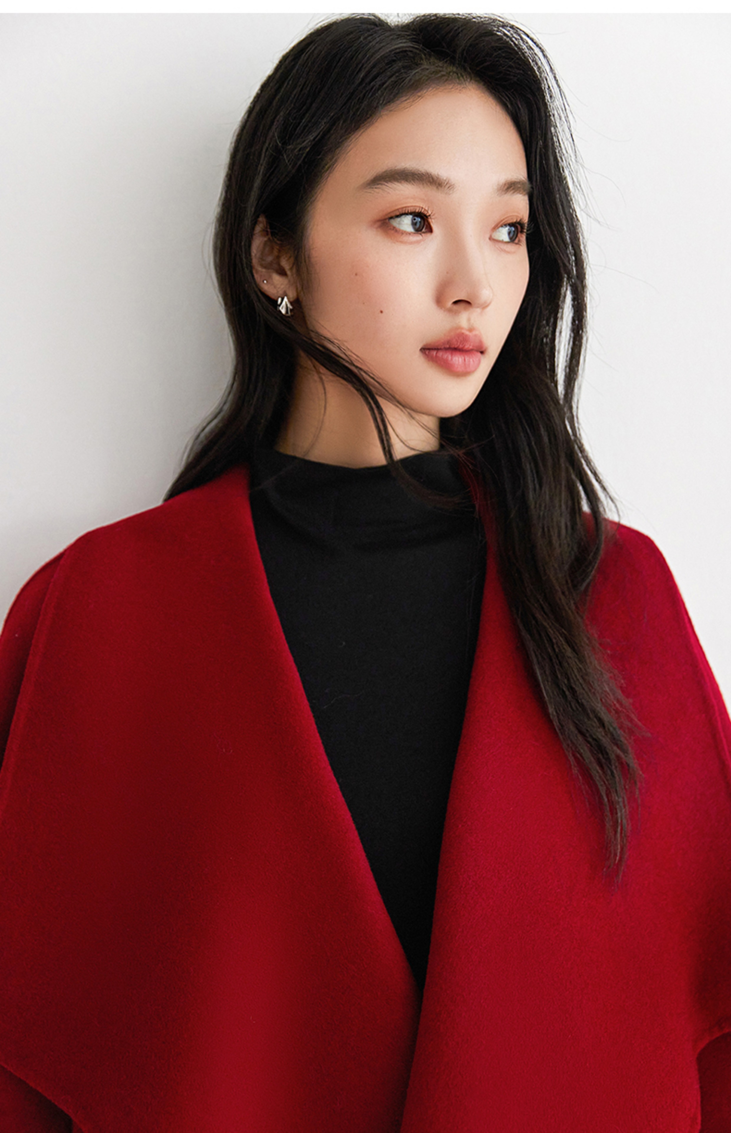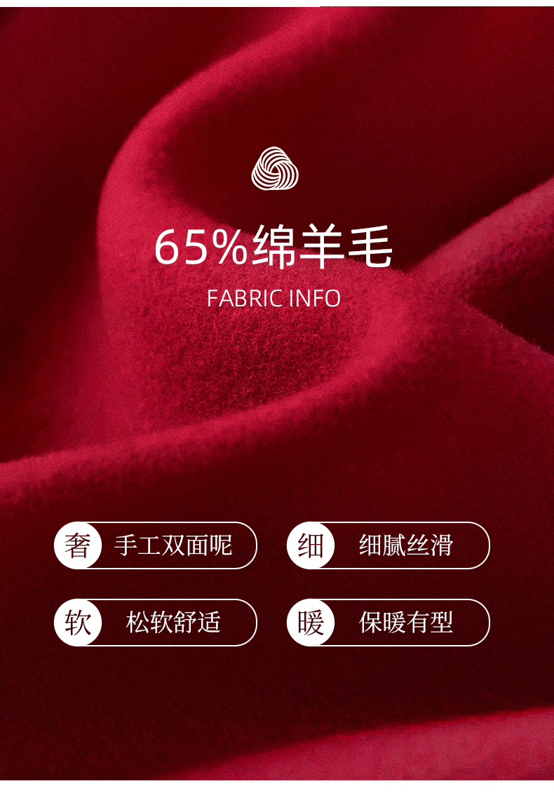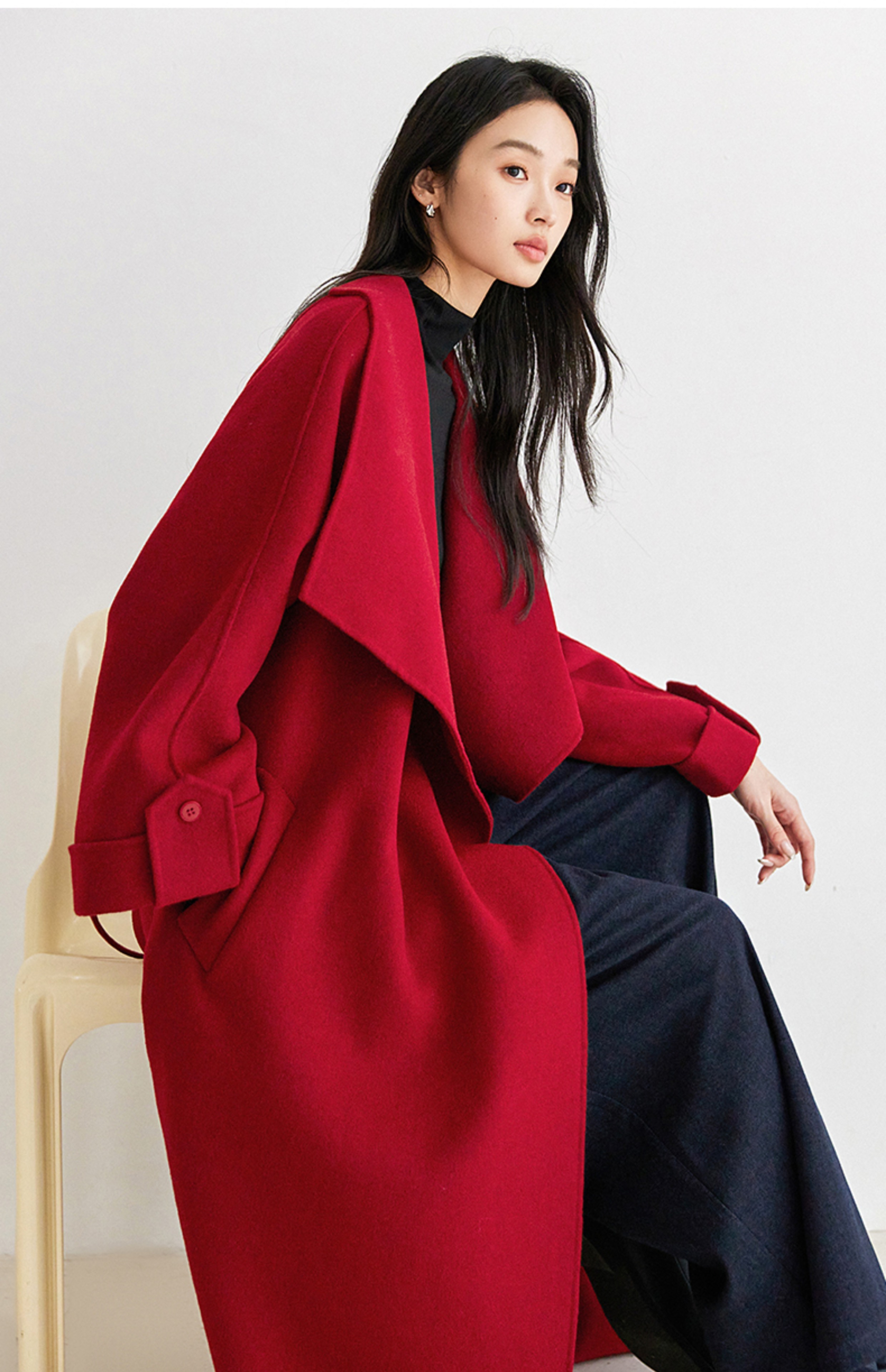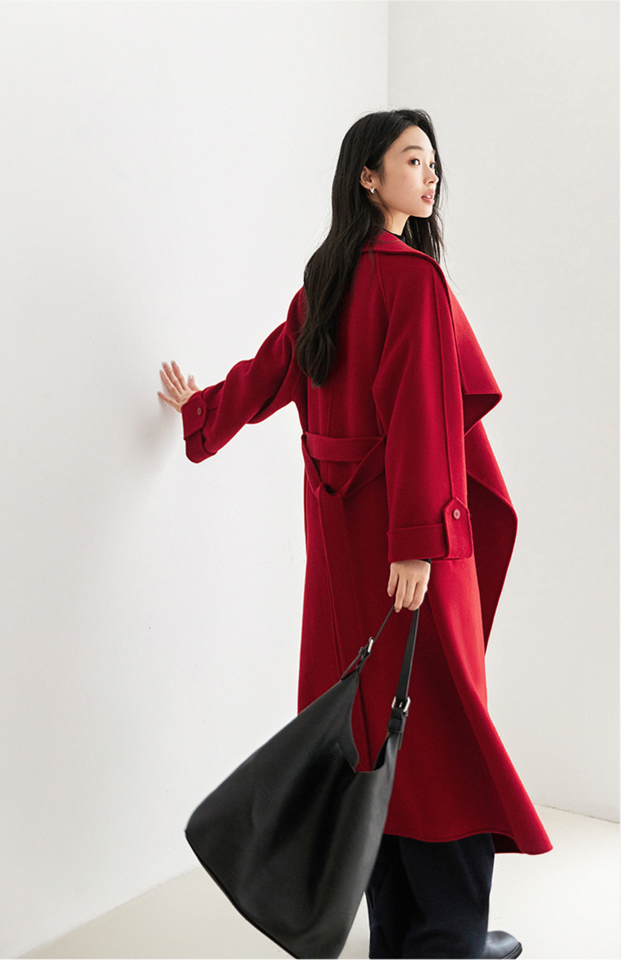 IC 秋冬红色轻奢大翻领长款双面呢大衣女新款高级感毛呢外套