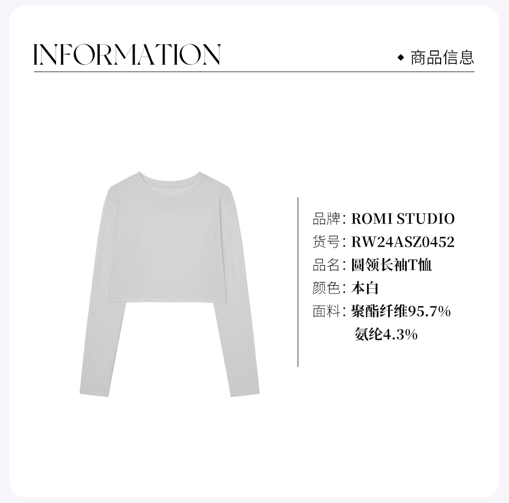 ROMI STUDIO“轻盈裸感”高弹亲肤运动休闲短款长袖T恤 RW24ASZ0452