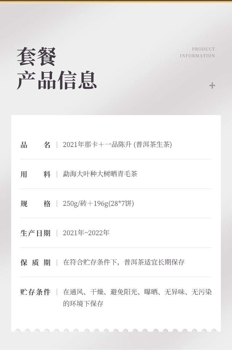 【超值套装】陈升号 2022年一品陈升196g+2021那卡250g普洱生茶