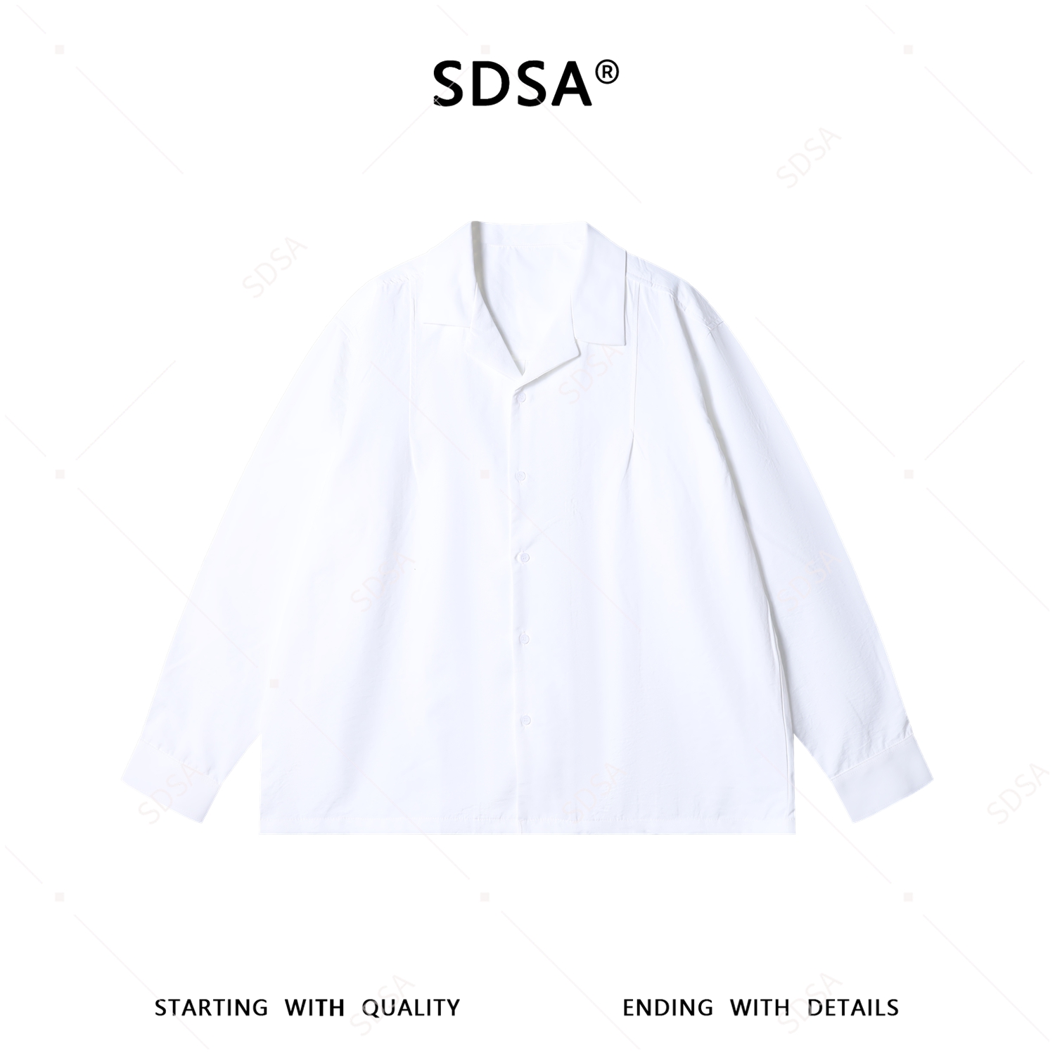 SDSA男士春夏新款痞帅男装潮牌时尚纯色褶皱翻领衬衫休闲百搭舒适