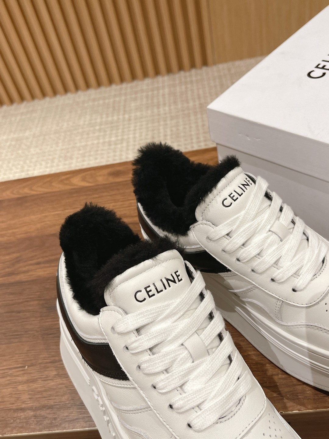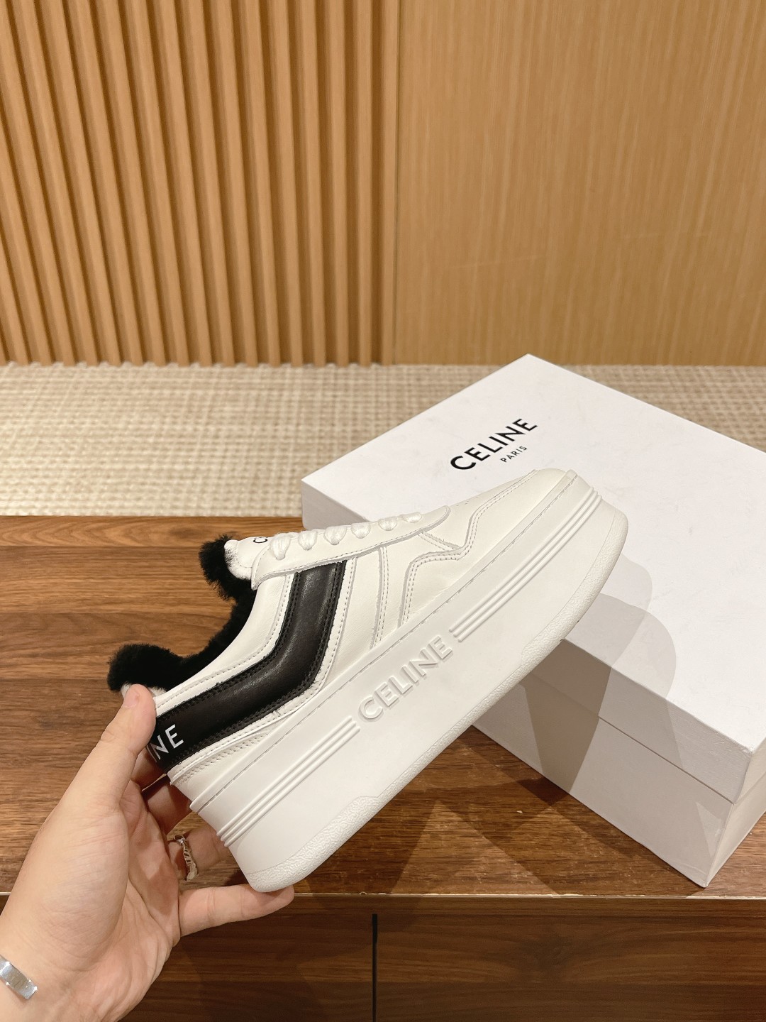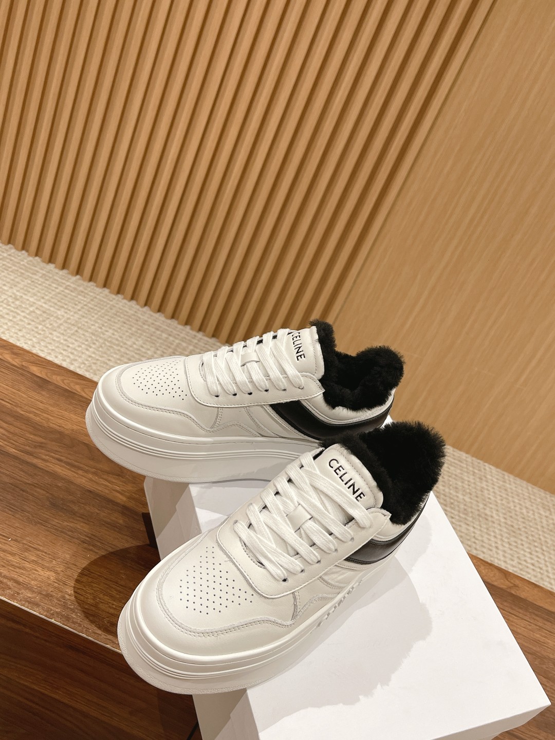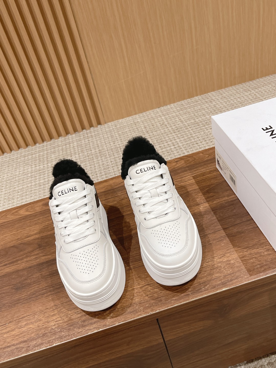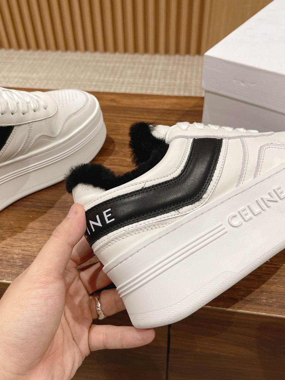 # 思琳厚底羊毛休闲鞋 增高运动鞋 小个子女生偷着乐,上脚瞬间增高5cm 妥妥的长腿福利 松糕小白鞋简单 舒服 干净 最近真的中了Celine毒 这季每一款都好看 爱死了 可爱的圆头设计 复古的感觉 特别好看 休闲百搭轻松驾驭! 面料头层牛皮材质 羊毛内里 橡胶防滑大底