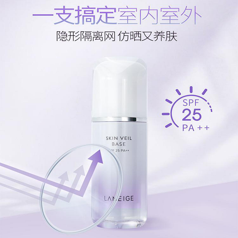 兰芝雪纱丝柔防晒隔离乳霜SPF23 PA++,丝柔质地带给肌肤轻盈的服帖感,提亮暗黄肤色,打造自然好气色
