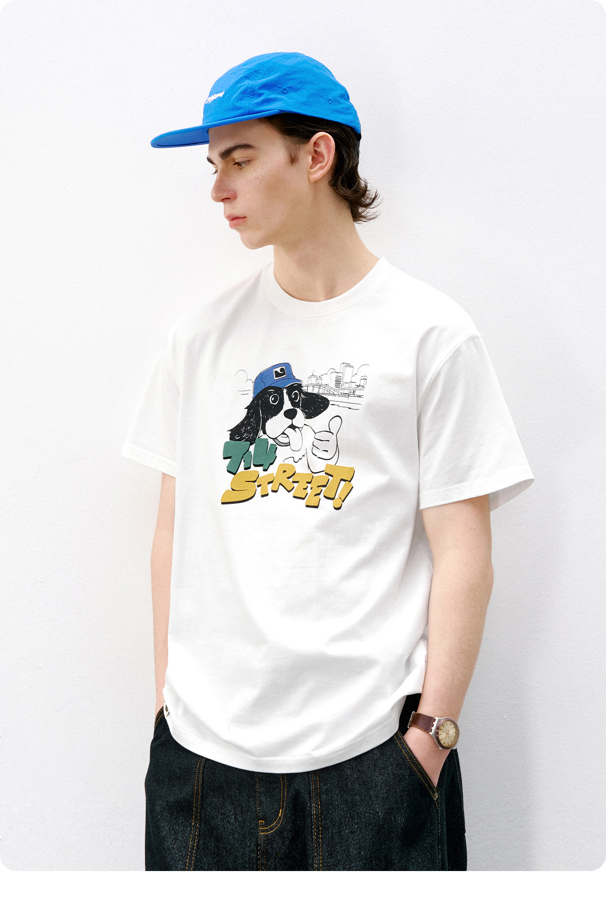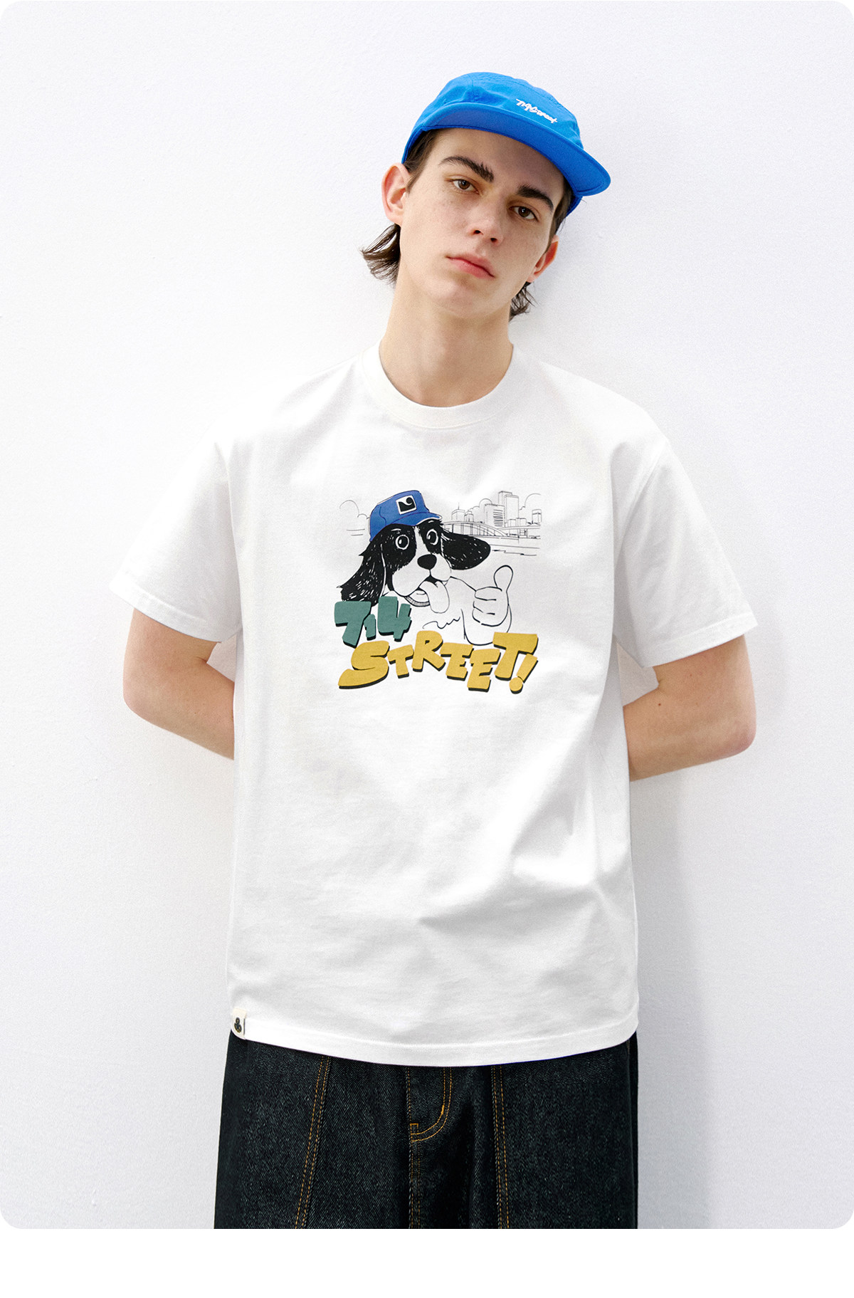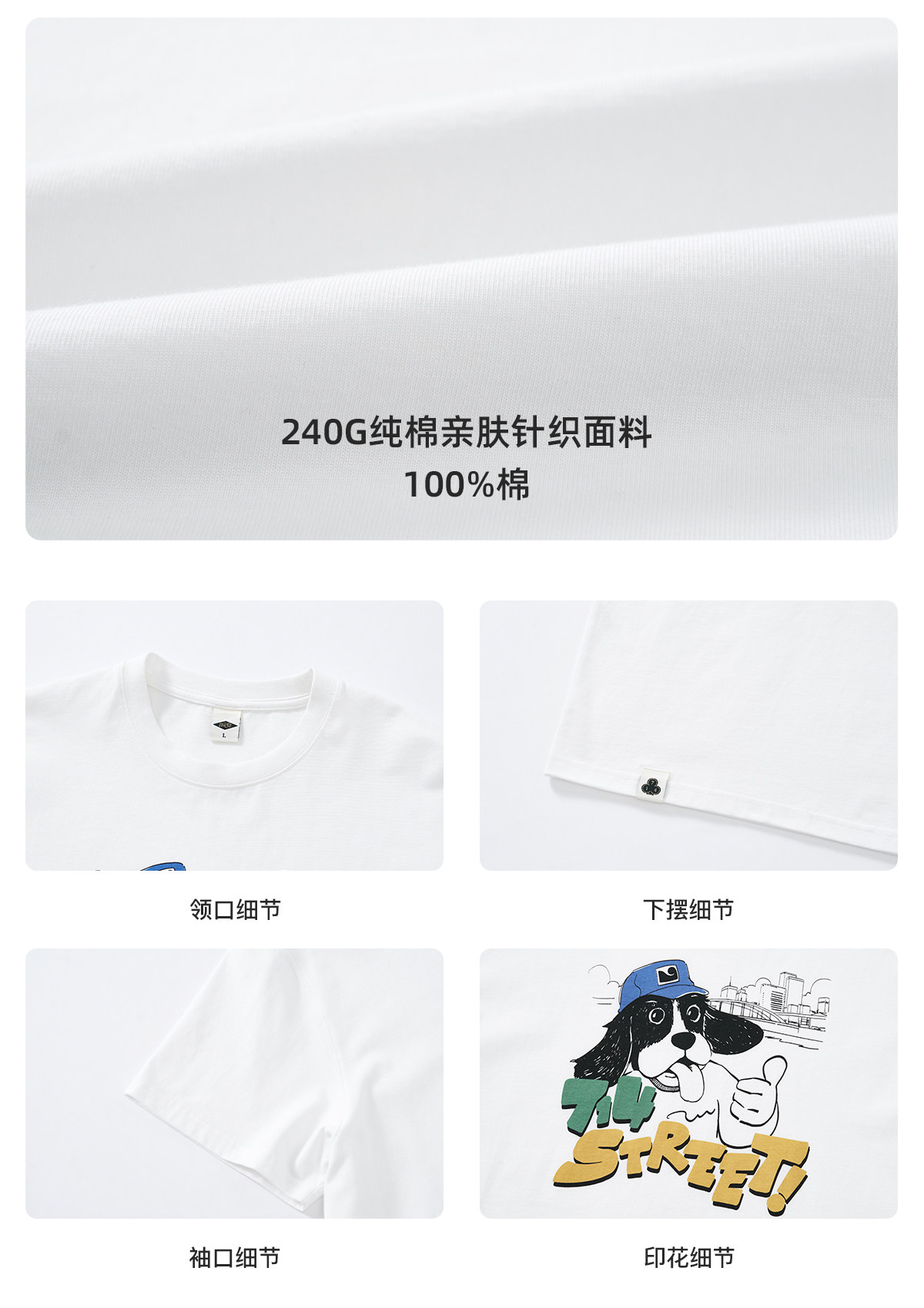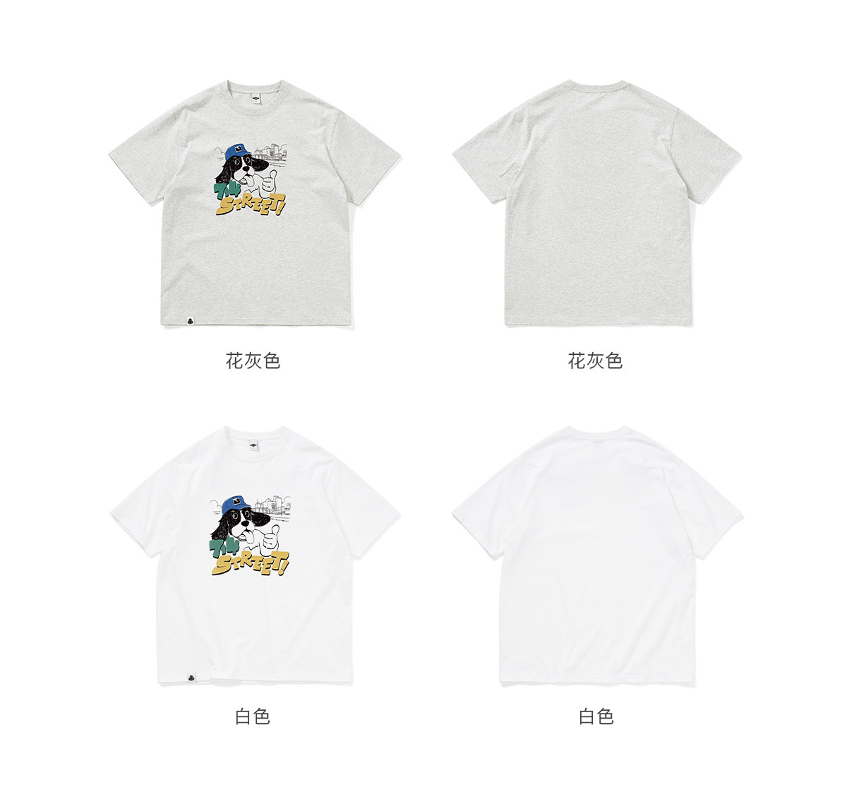 714street美式复古可爱小狗印花短袖T恤男2026夏季情侣款半袖上衣