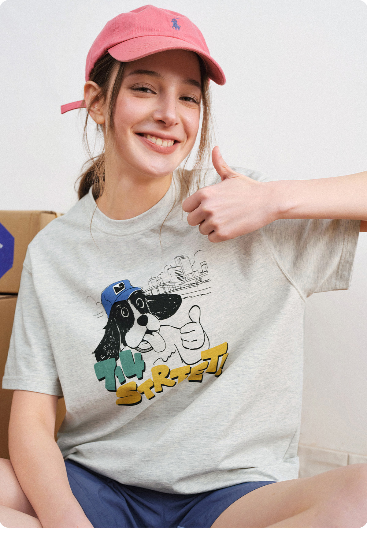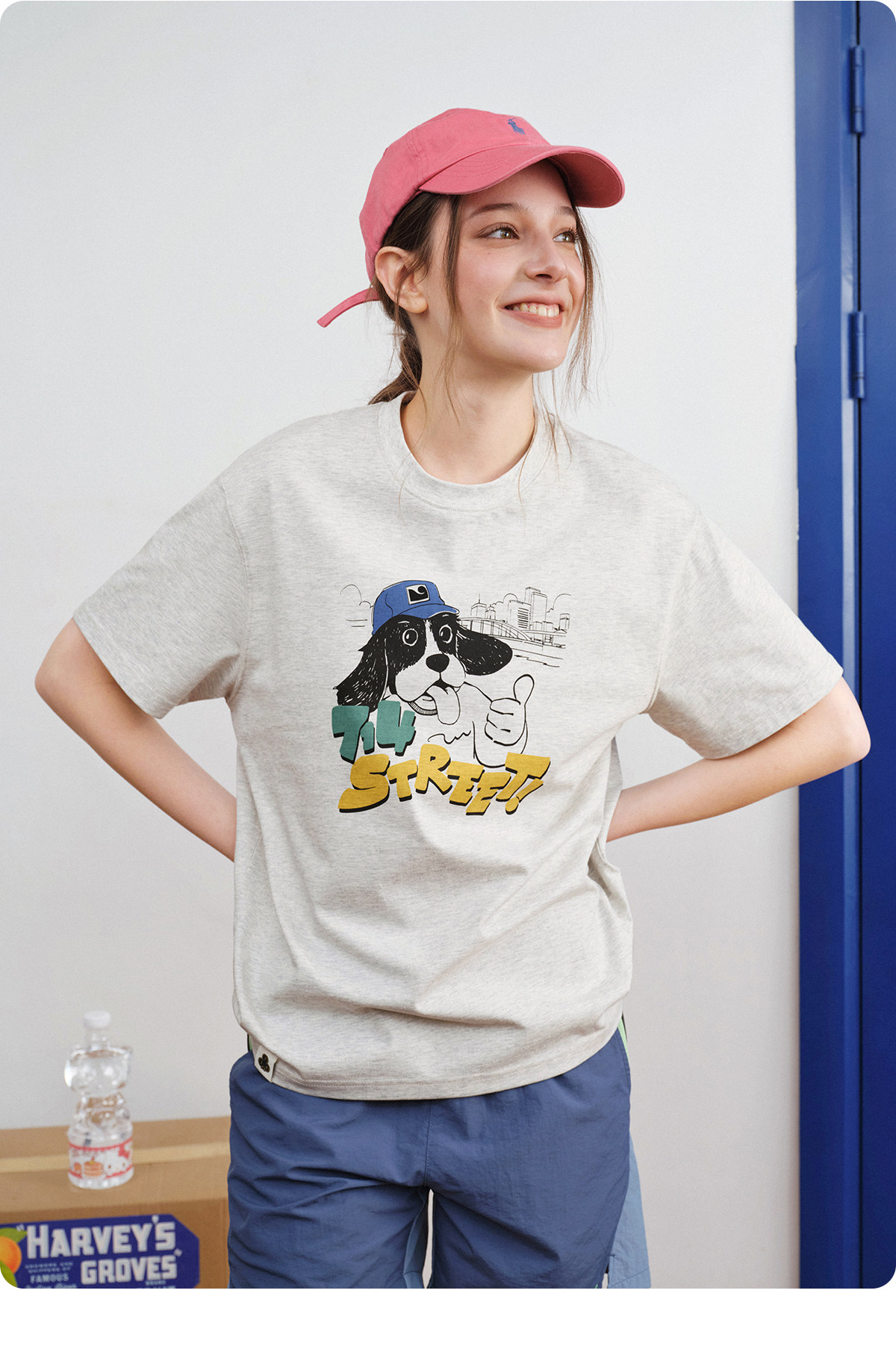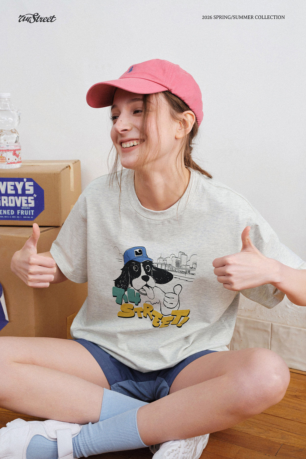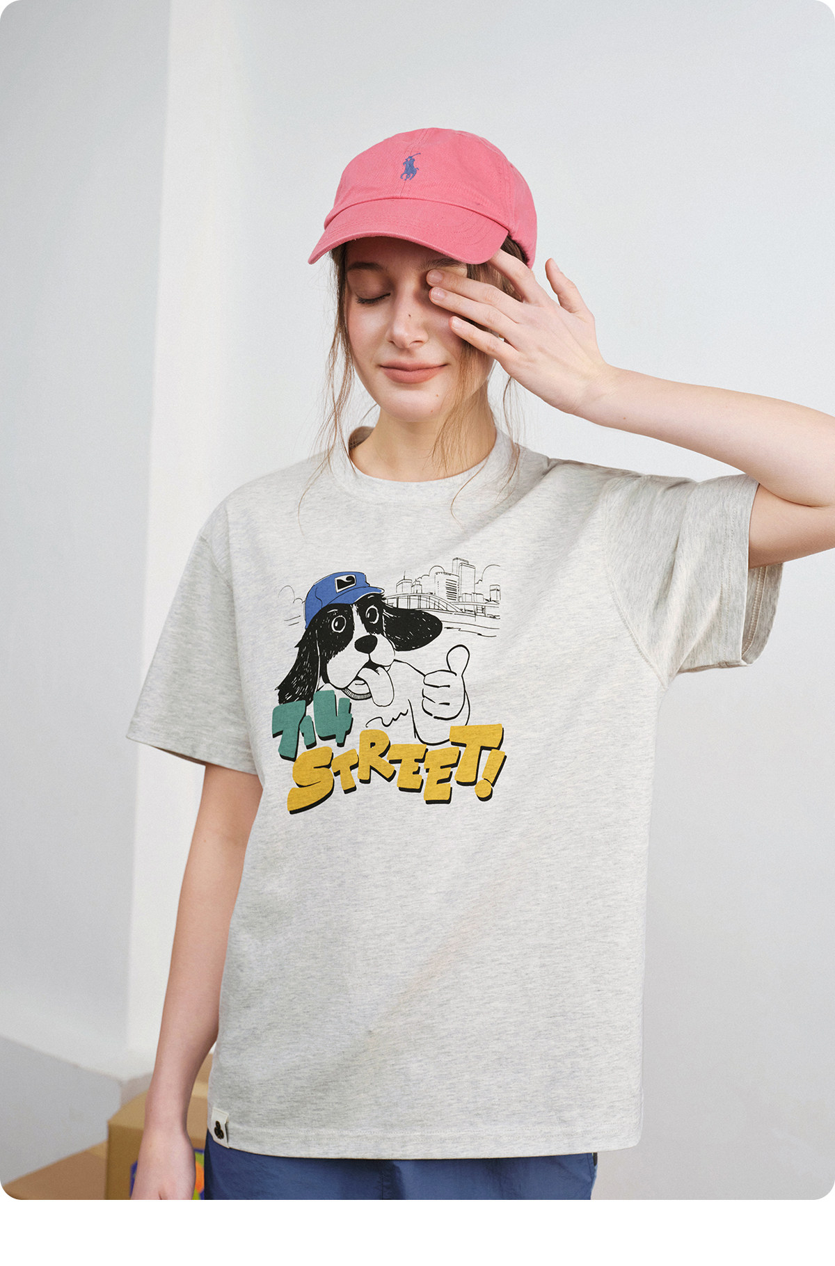 714street美式复古可爱小狗印花短袖T恤男2026夏季情侣款半袖上衣