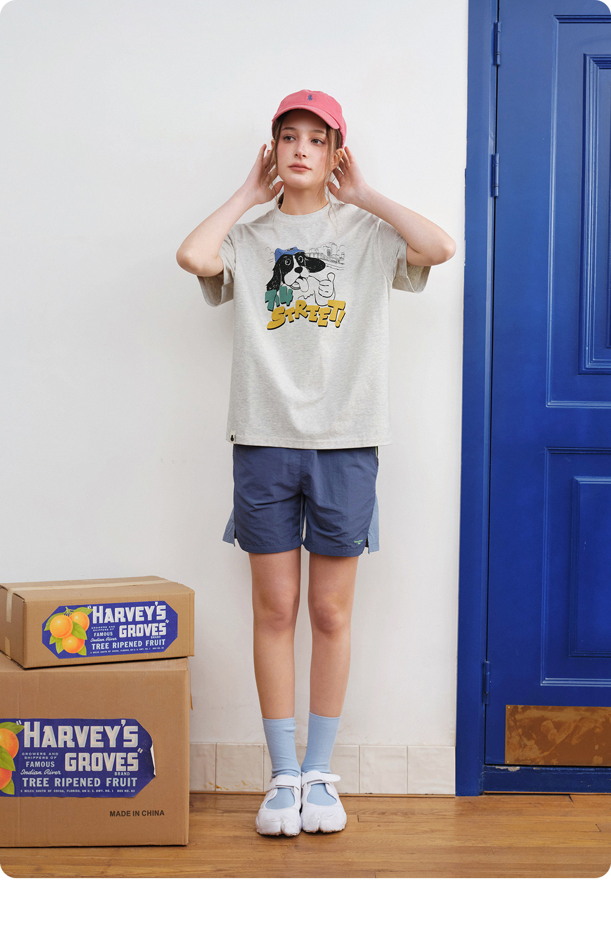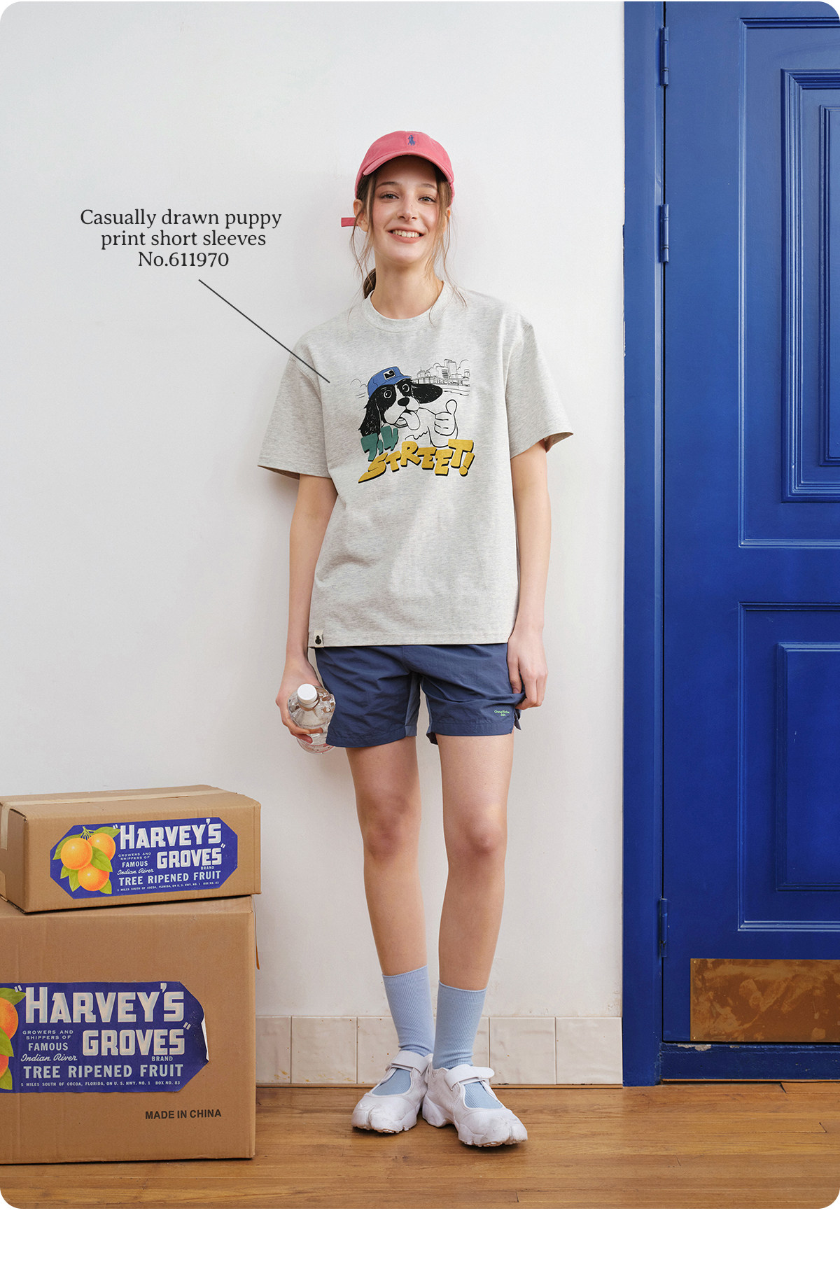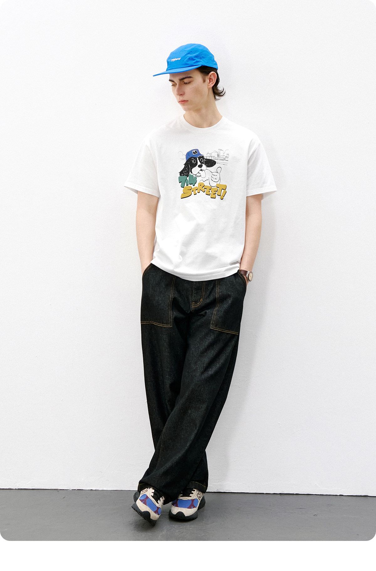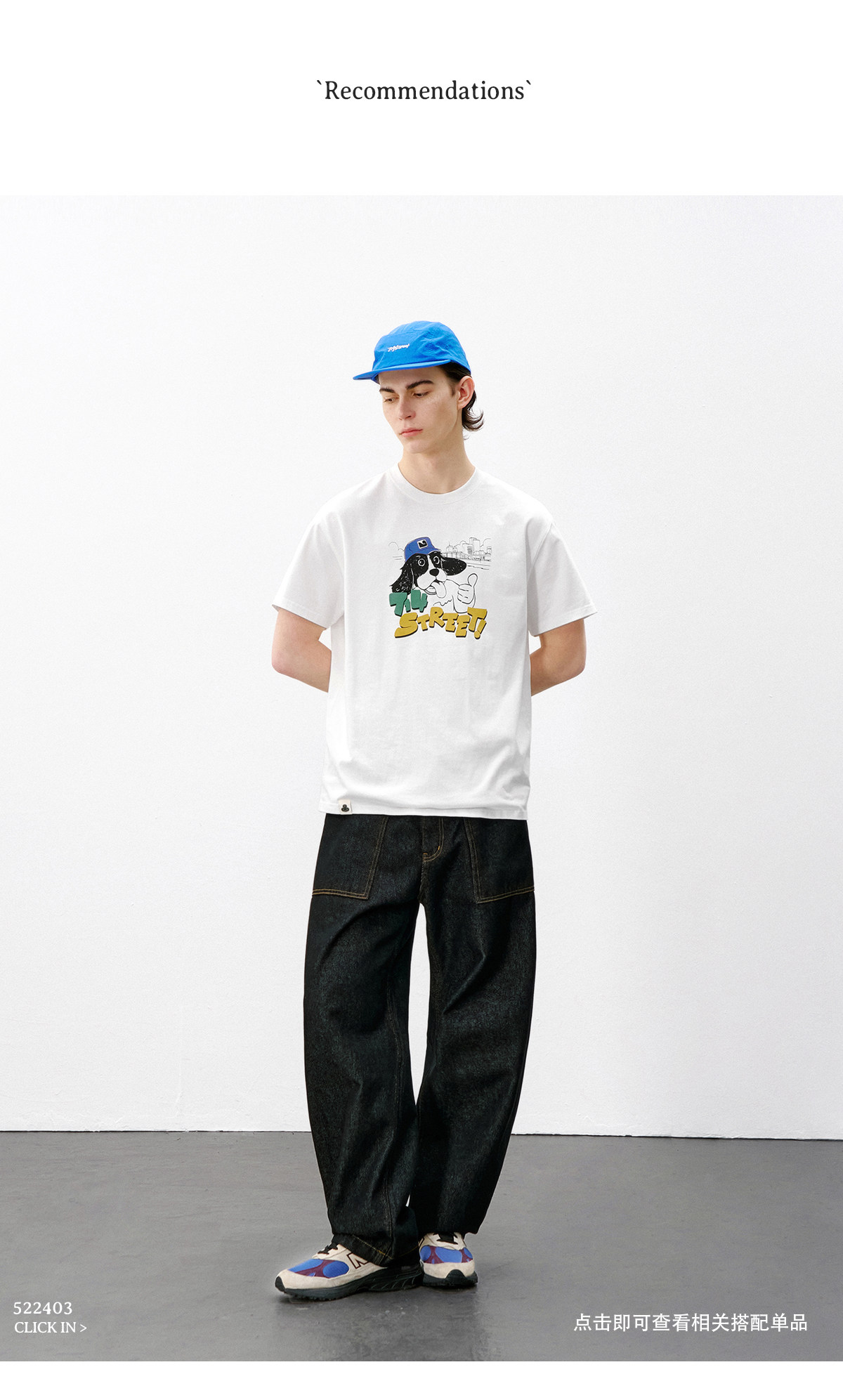 714street美式复古可爱小狗印花短袖T恤男2026夏季情侣款半袖上衣