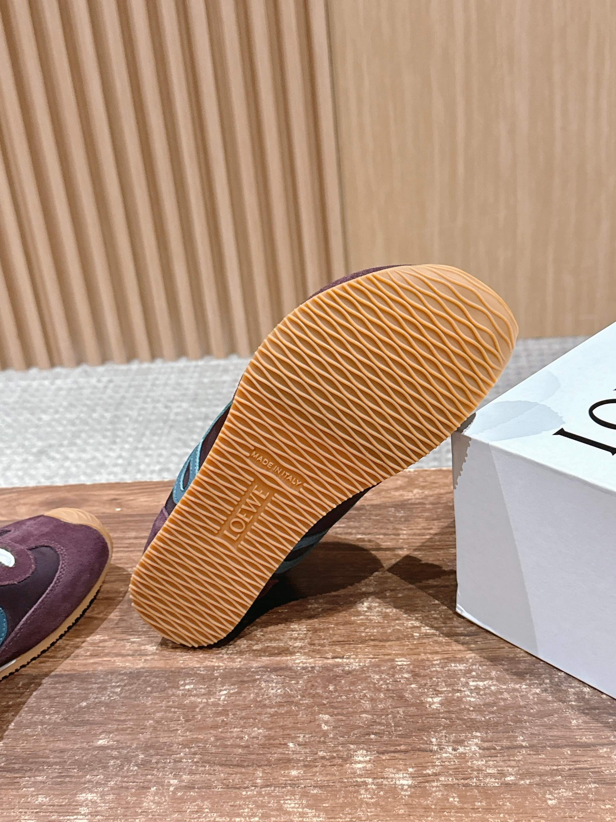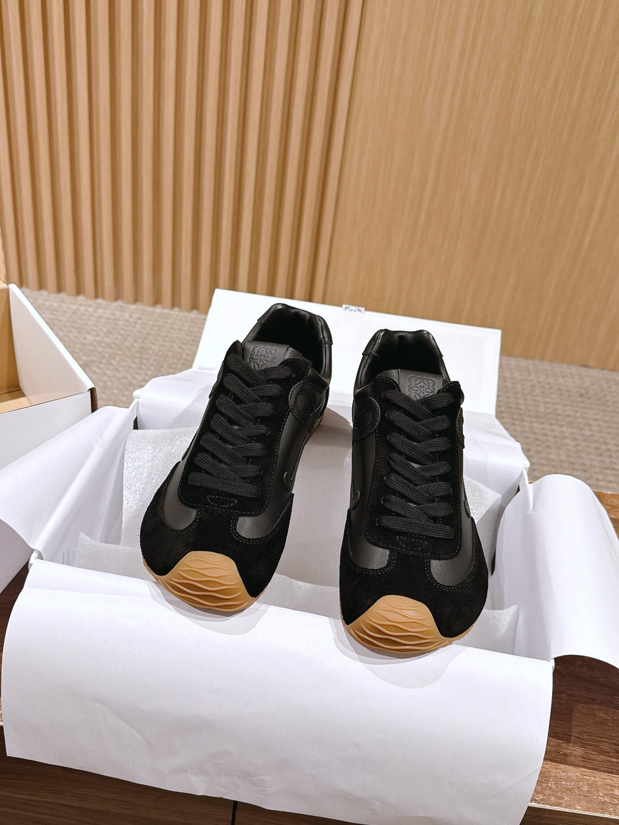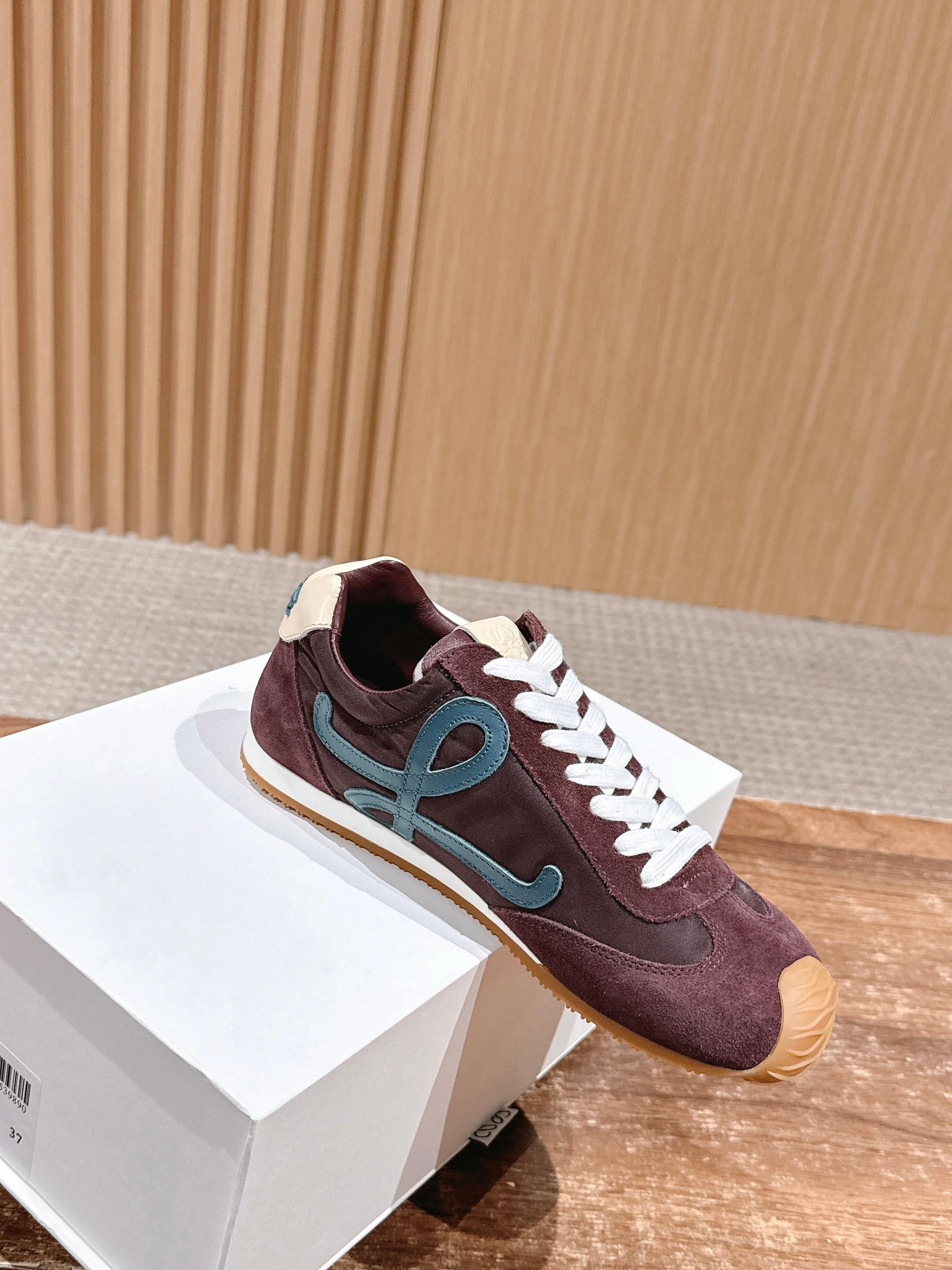 𝐋𝐎𝐄𝐖𝐄#罗意威新款大头运动鞋Ballet Runner2.0芭蕾阿甘鞋,鞋头的设计更有趣味性,脚后跟设计新颖 柔软舒适,这款阿甘鞋会被评为年度最舒适的暴走鞋 ,如履平地 !运动鞋建议正码 鞋子呈简约利落的低帮鞋型,侧面有品牌Logo的首字母,最重要的一点 ,穿上这款鞋就一定会爱上,而且再也无心选备其他运动风了。 材质介绍 : 鞋面由进口牛绒+小牛皮+风衣布 拼接而成 (很考验针车走线的技术哟) ,原版定制磨具大底! 配齐包装 舒适 简约 百搭 暴走阿甘鞋 ,设计灵感来源于芭蕾舞鞋和20世纪70年代的鞋履风格,有些小复古 !!原盒包装!Size:35-45M