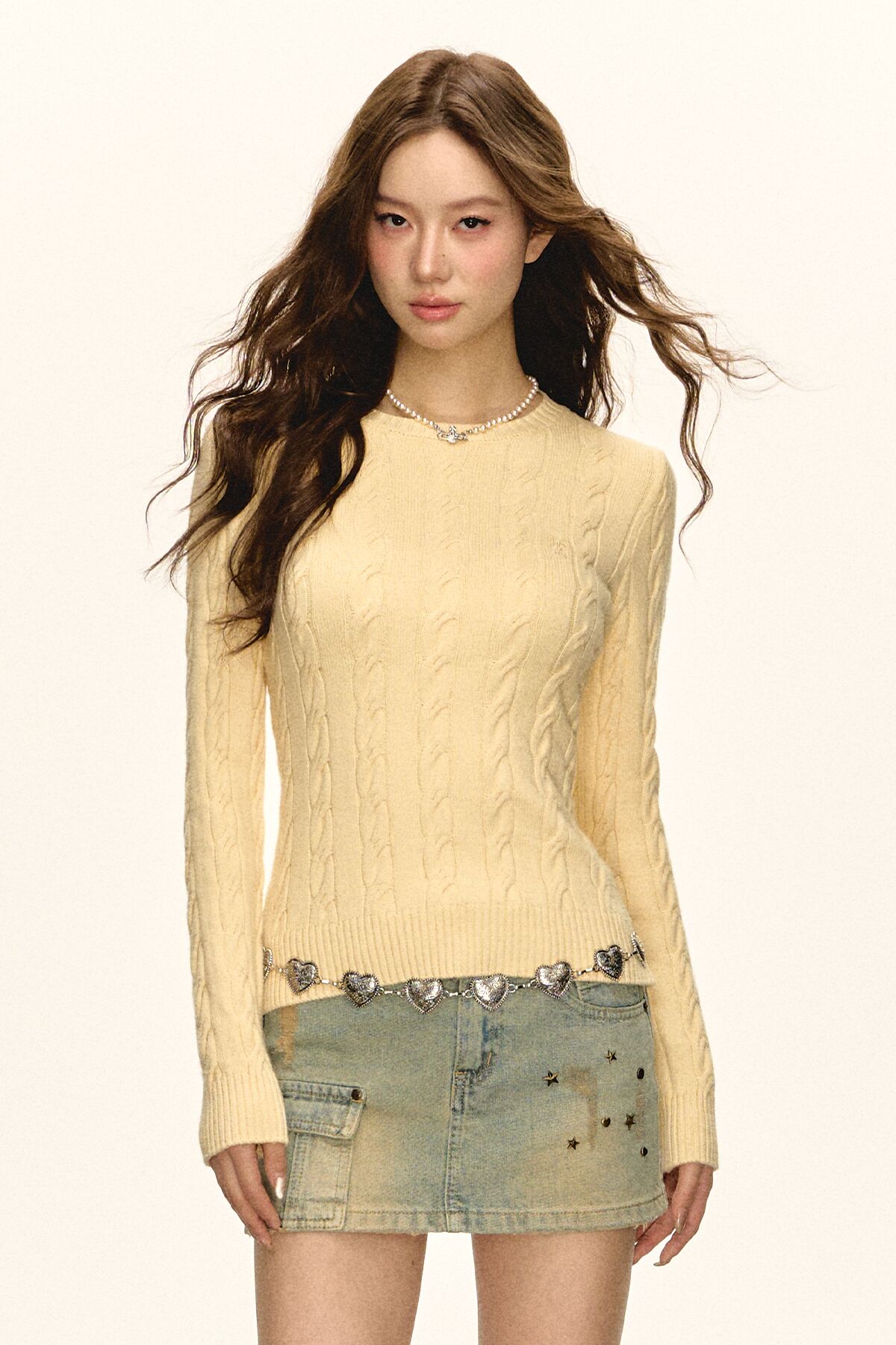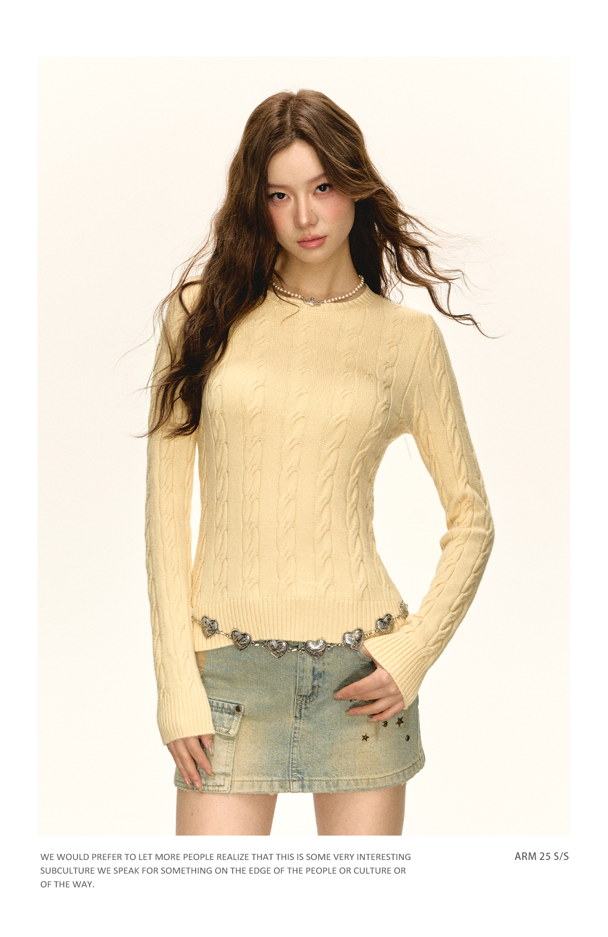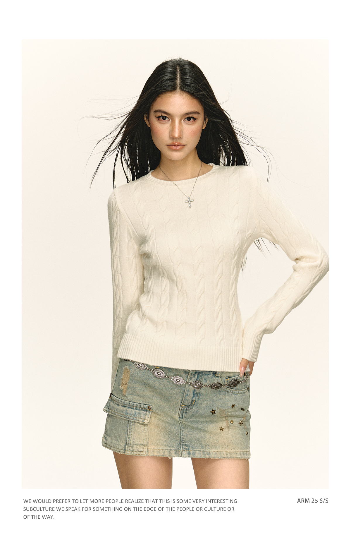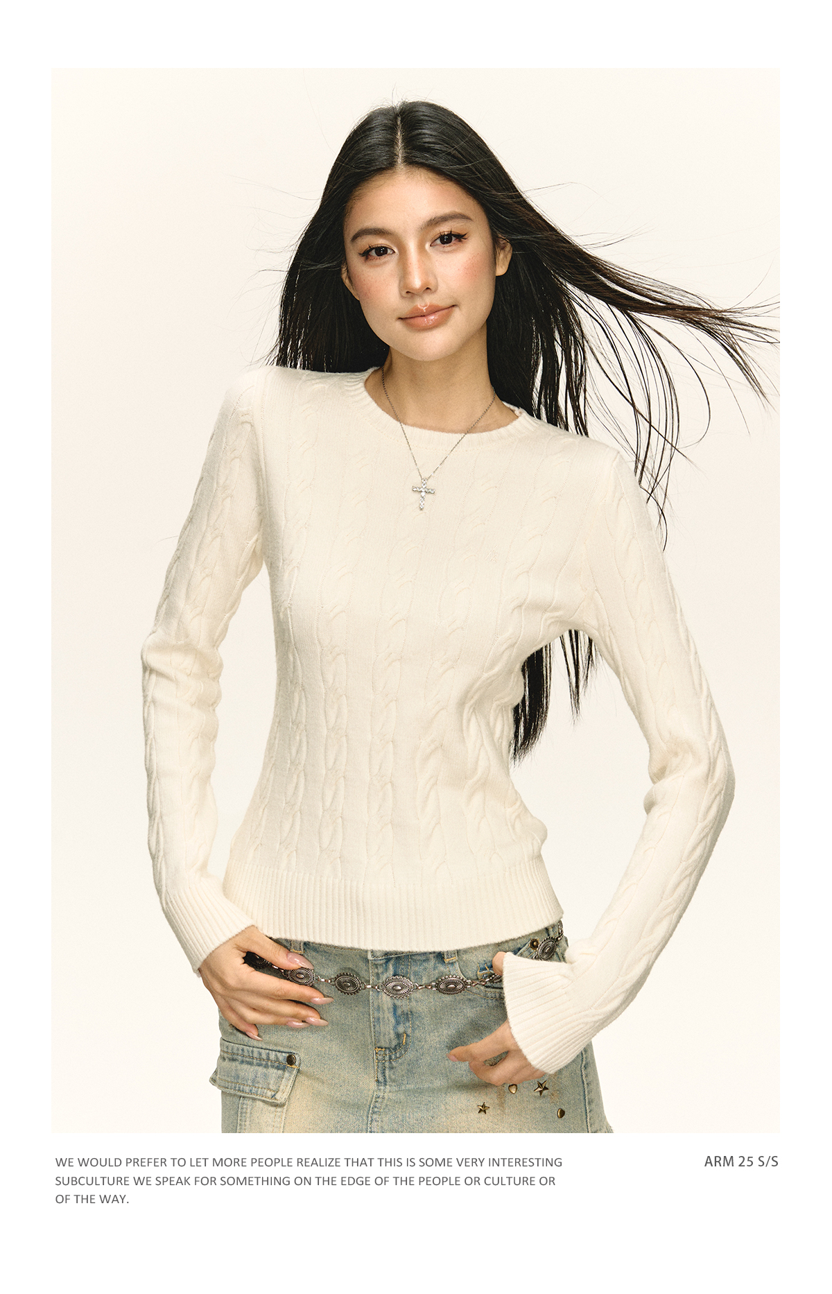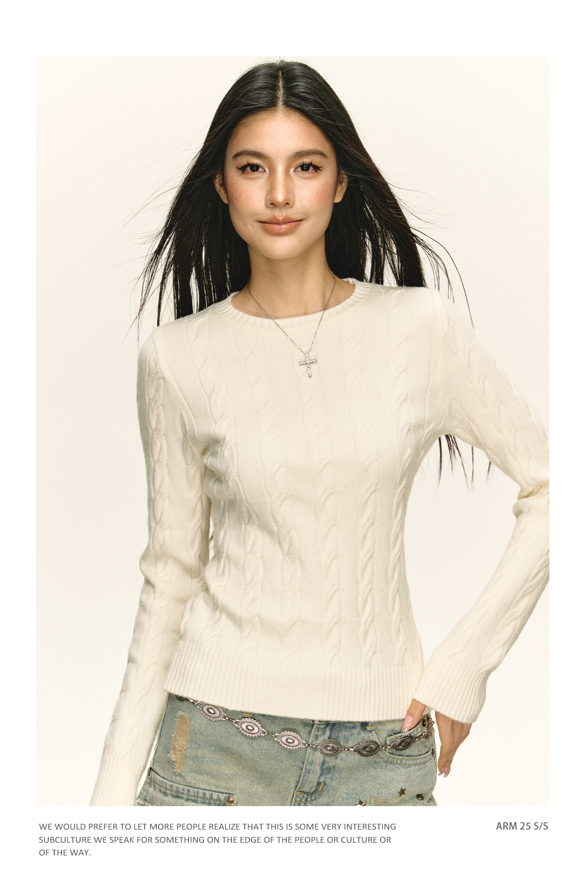 Ariseism 美式复古白色绞花毛衣女秋季新款针织上衣