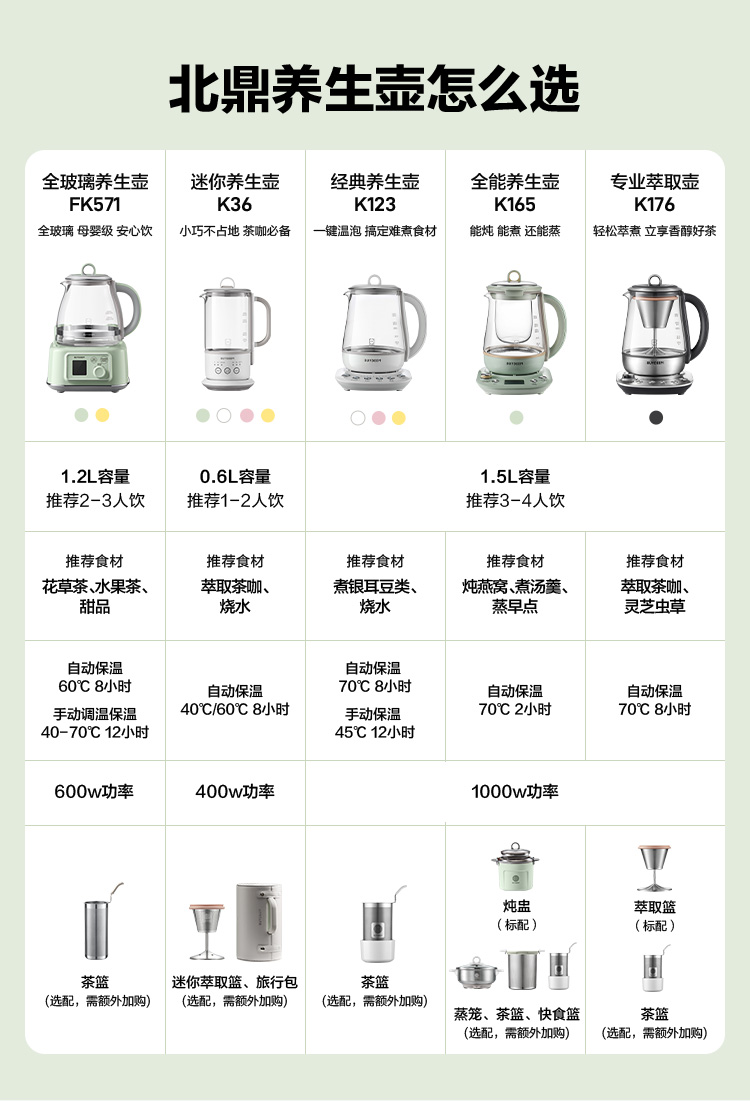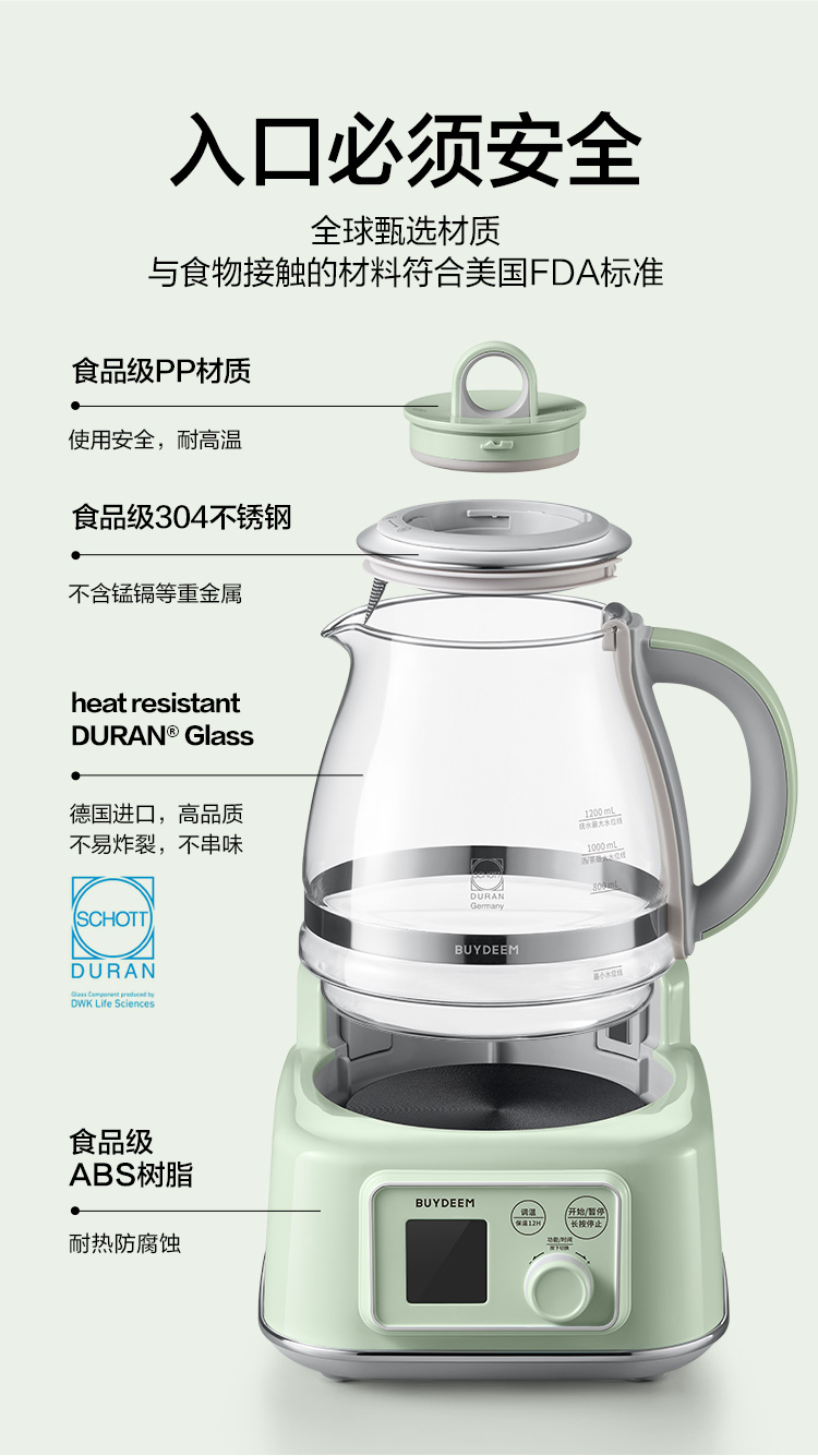 北鼎全玻璃养生壶家用多功能办公室煮茶器烧水壶FK571