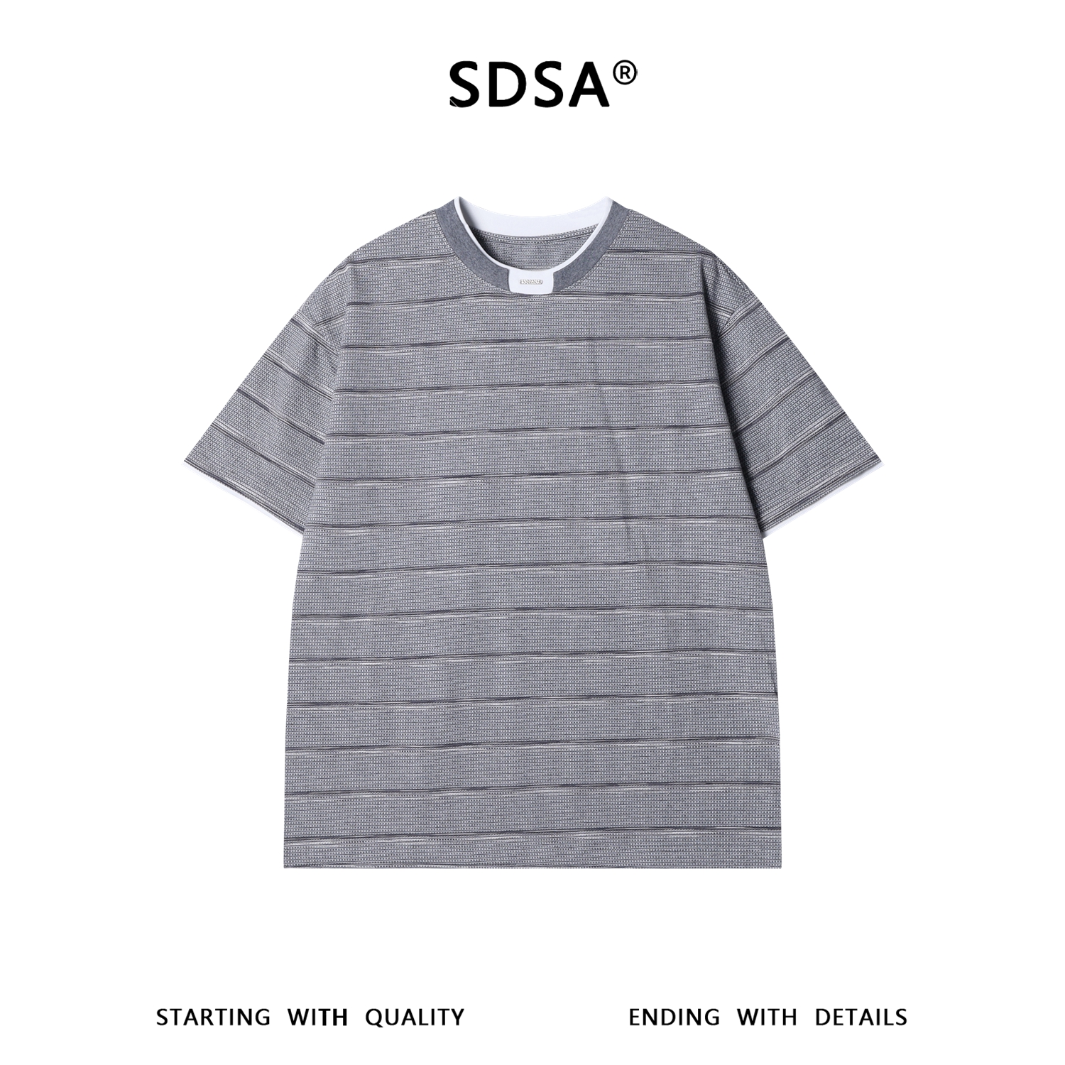 26622SDSA男装2026新款高贵轻奢韩版撞色细条纹肌理短袖T恤百搭时尚潮