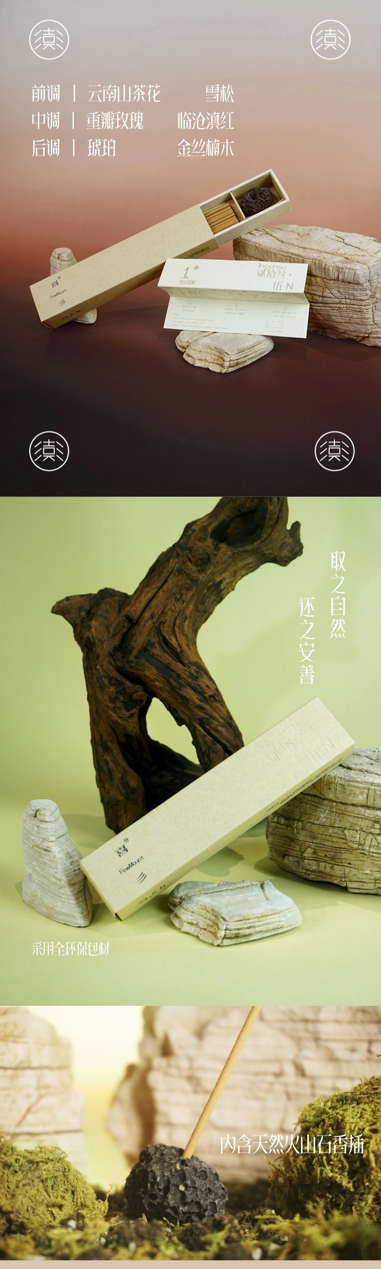 喜彡FewMount 贰拾叁·伍N 1°线香-贡山花岭(含天然火山石香插)