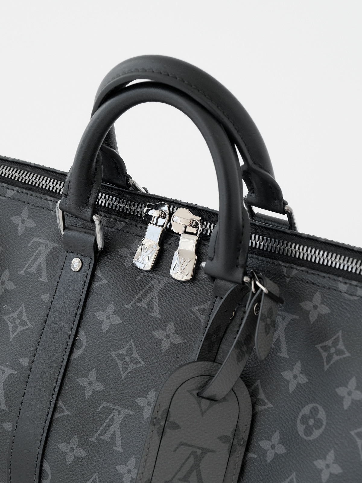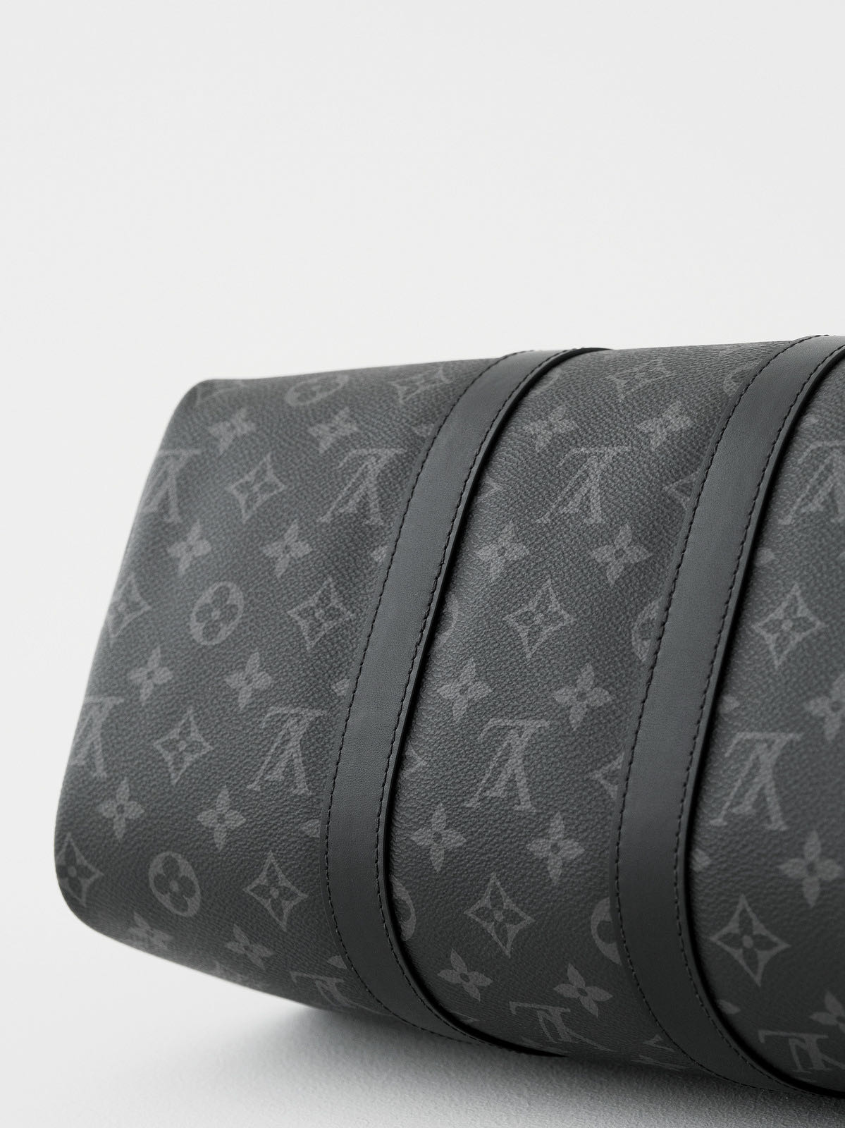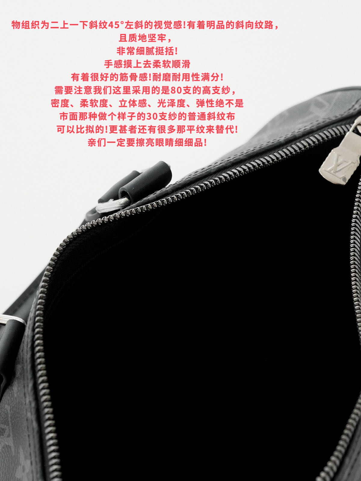 Monogram Eclipse涂层帆布配头层牛皮材质制成,面料很柔软,非常有质感,又不扁塌,立体感很强,耐磨耐用,下雨天淋湿了也毫无影响,拿布一擦就Ok!