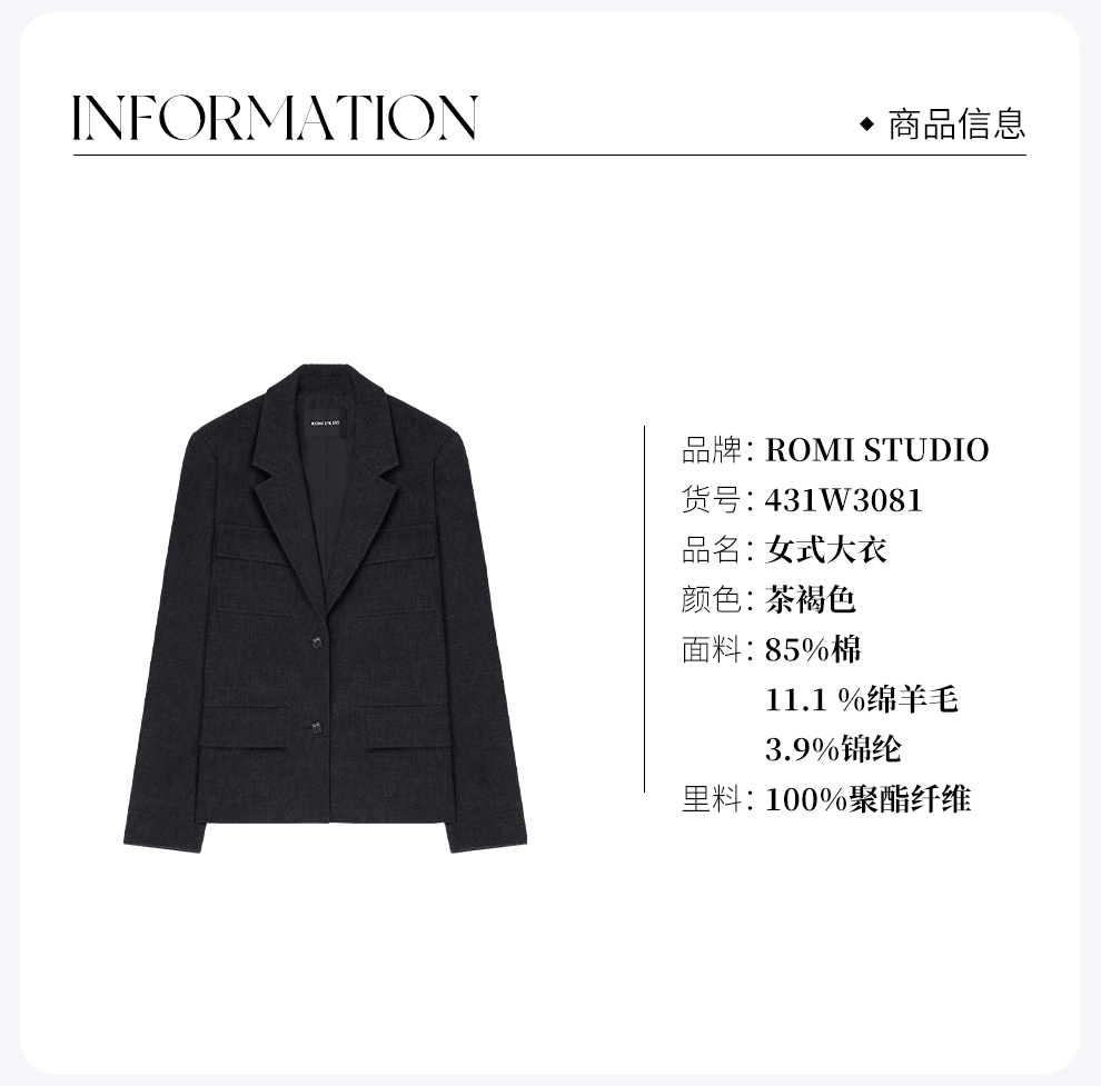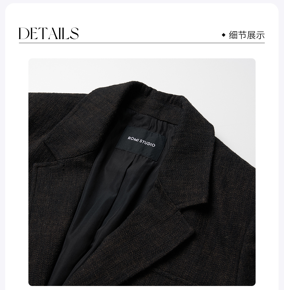 ROMI STUDIO“远山之间”羊毛混纺短斜纹肌理感短西装外套 431W3081