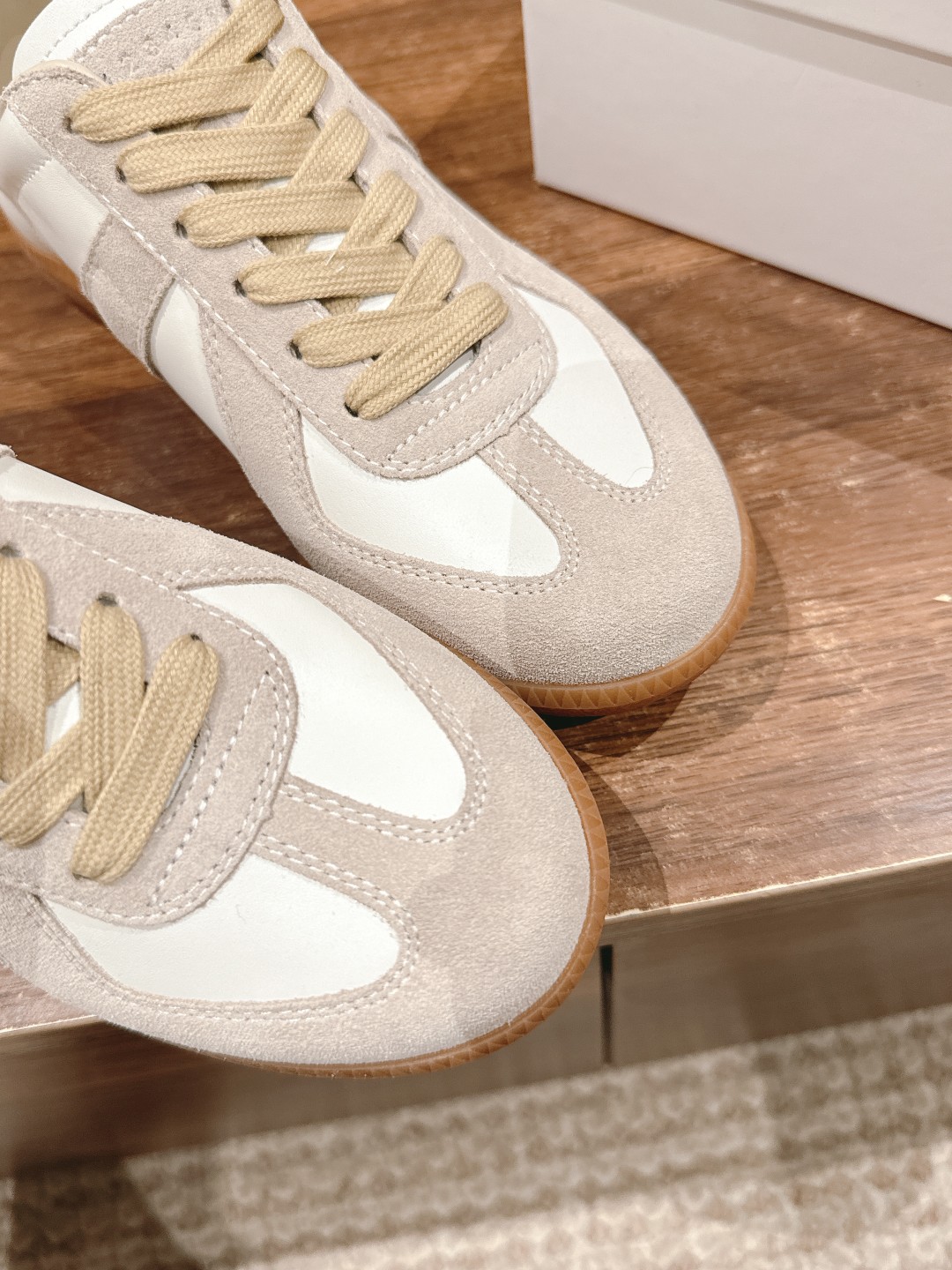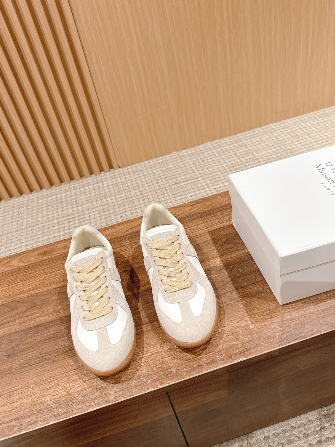 脚感好&低调有品又百搭的德训鞋必须拥有名字,强烈推荐大家要入啊!关于材质:牛皮➕麂皮 灰白拼接的设计+黄色的橡胶底,比起普通的小白鞋多了一丝复古的味道。同样是百搭不挑人的鞋款,搭任何单品都能穿出自己的风格。
