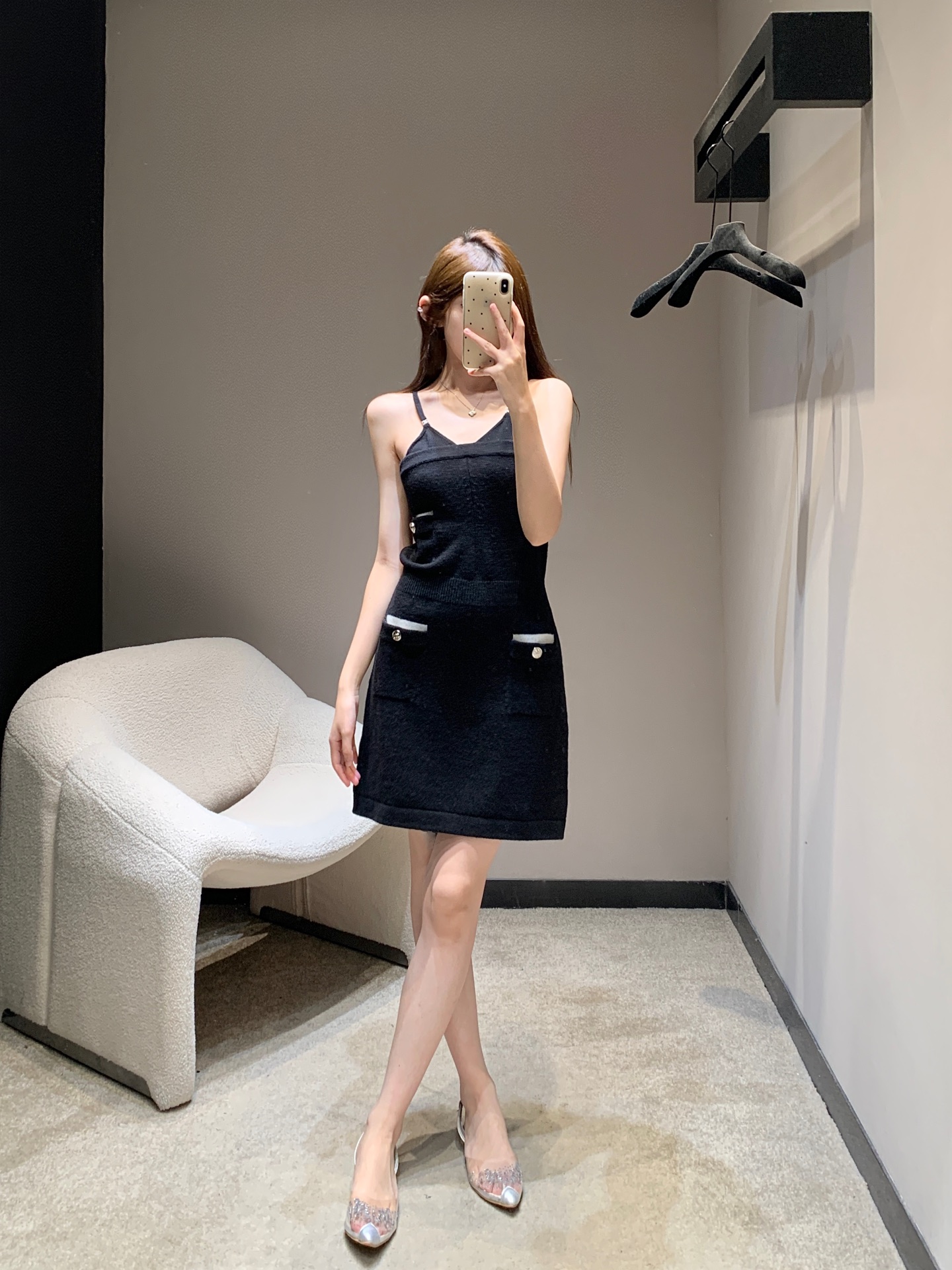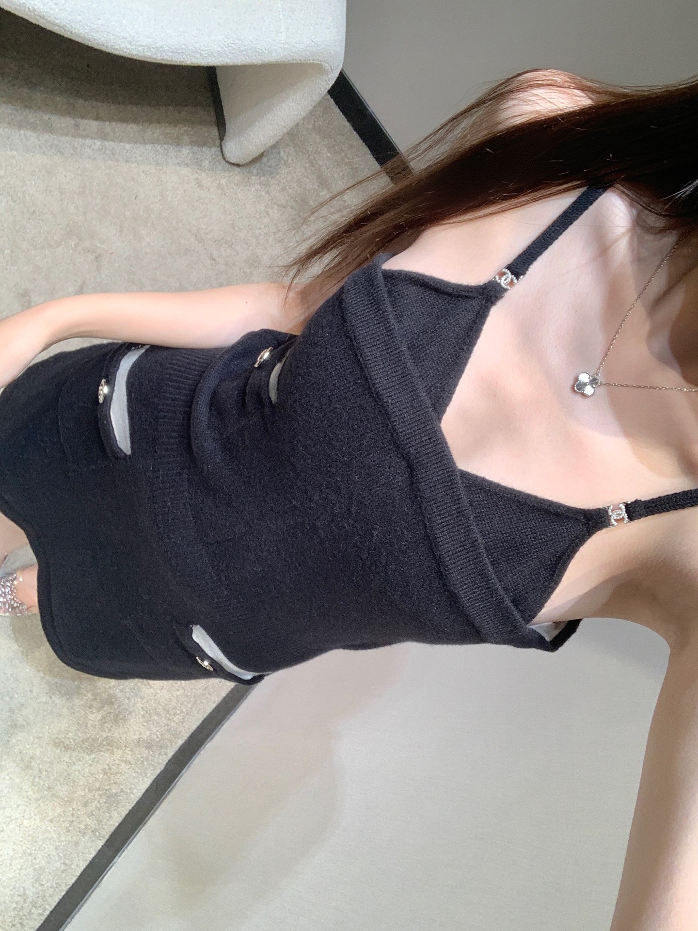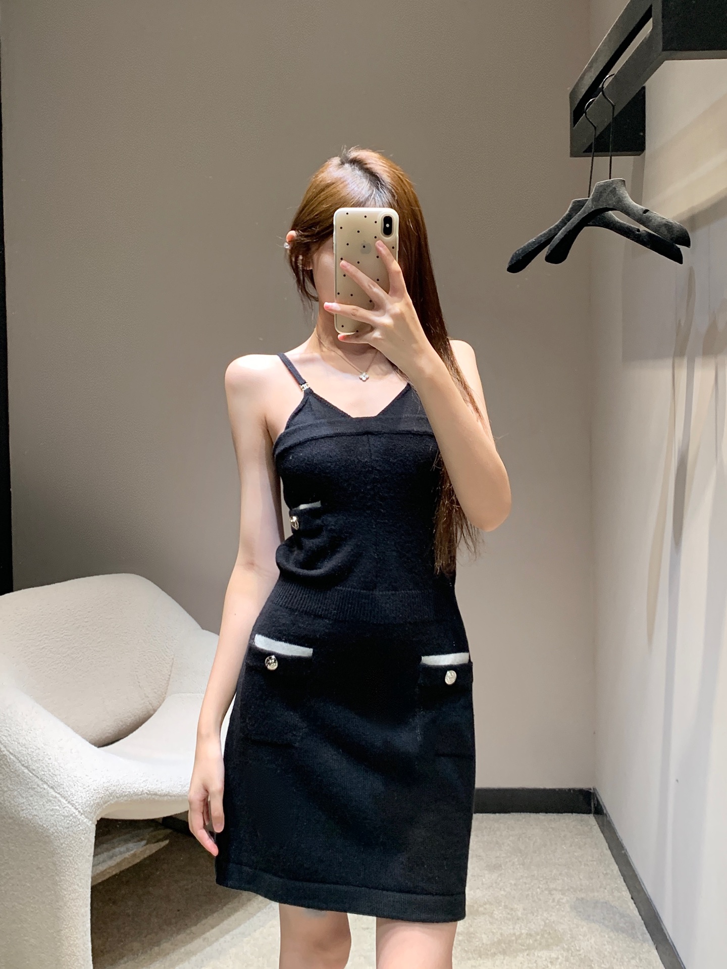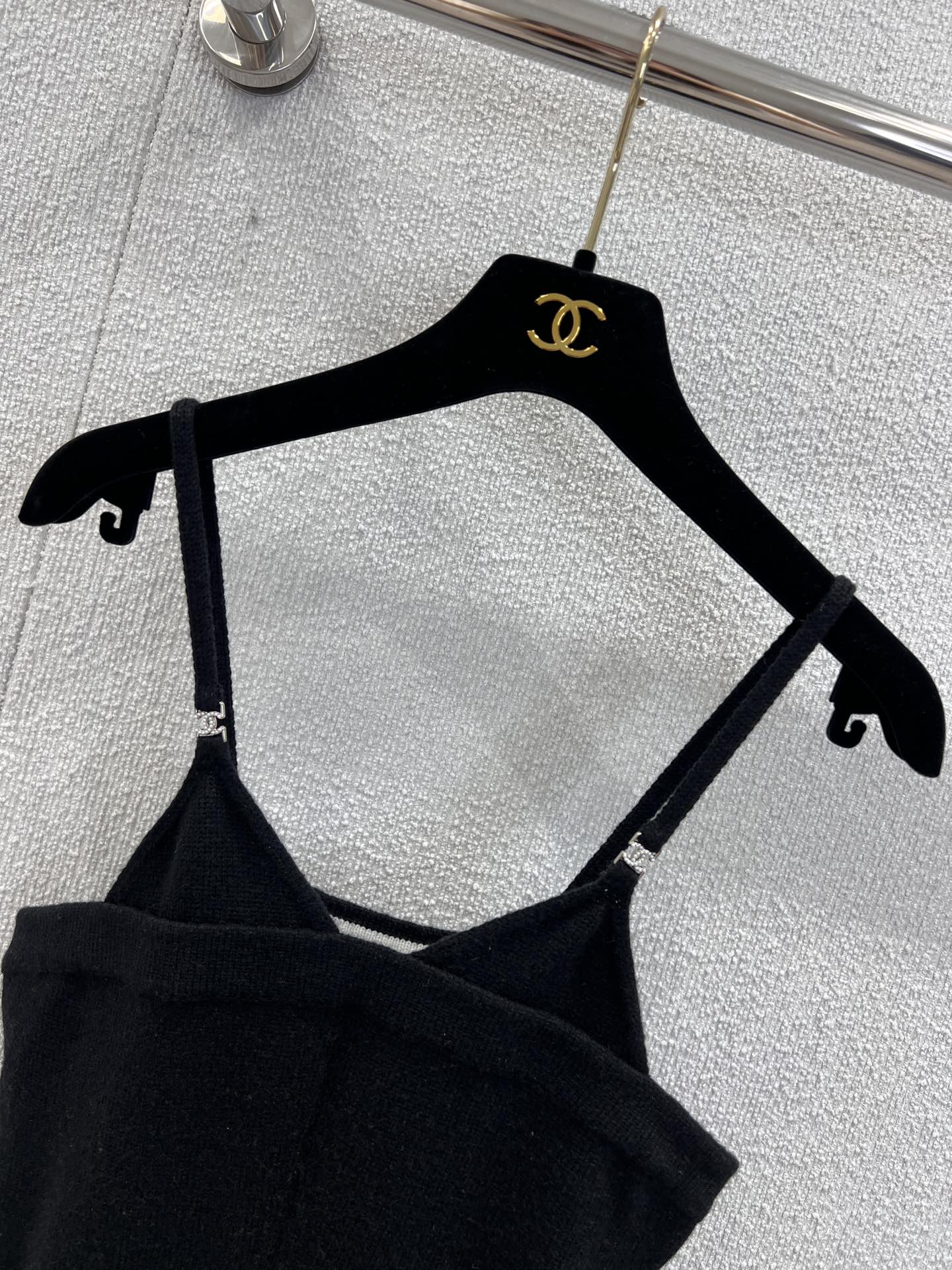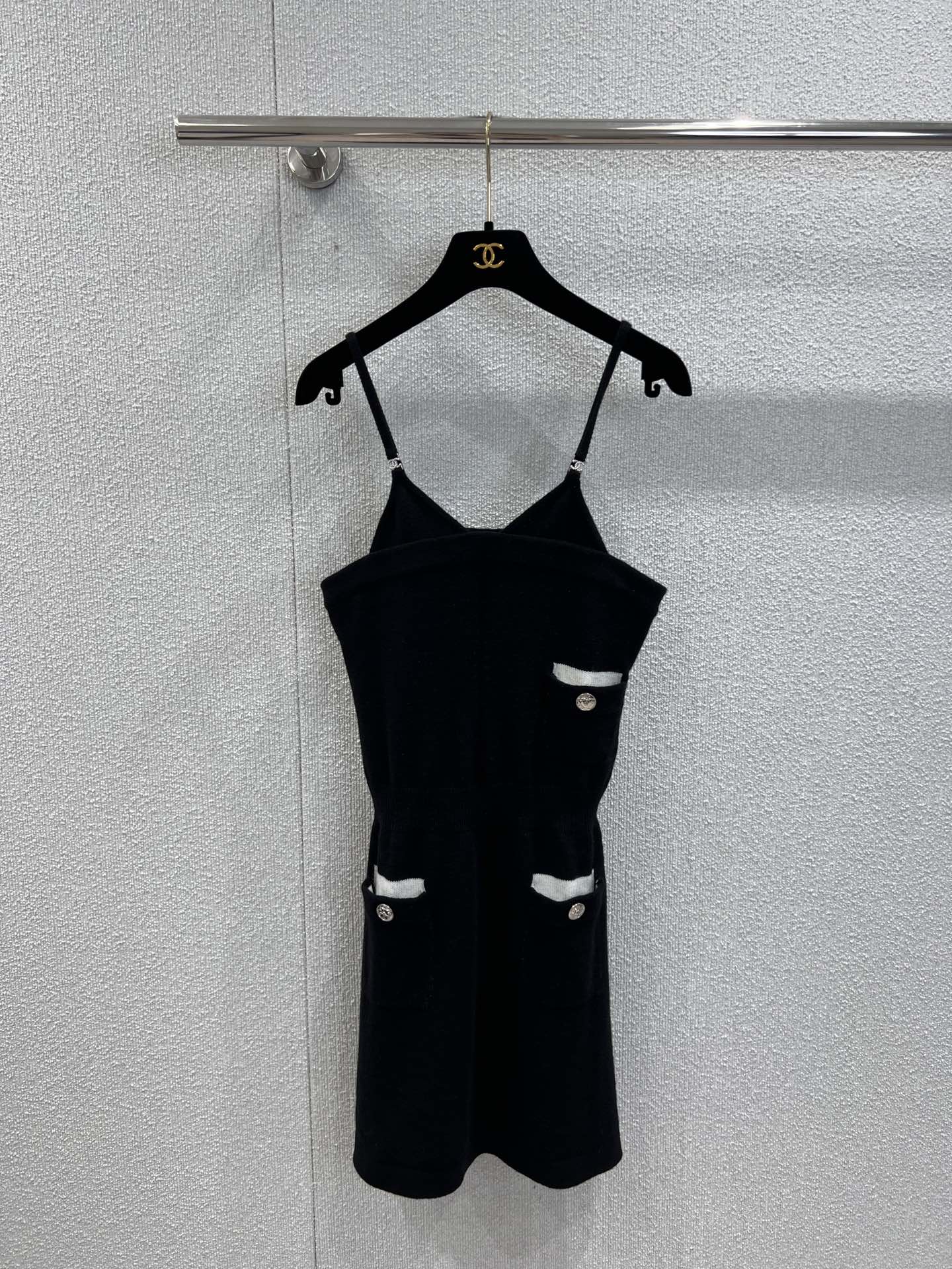 Chane* 25B高级手工坊系列新款 黑色针织吊带裙丨⚠独家高版出品!黑白拼色设计 精致logo纽扣装饰 简约高级 定制针织面料 柔软舒适 弹力修身版型 上身显瘦又气质 做工品质看细节。