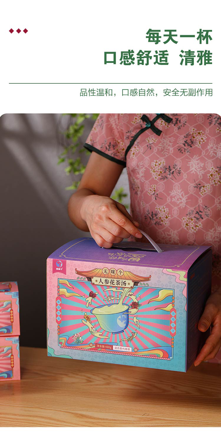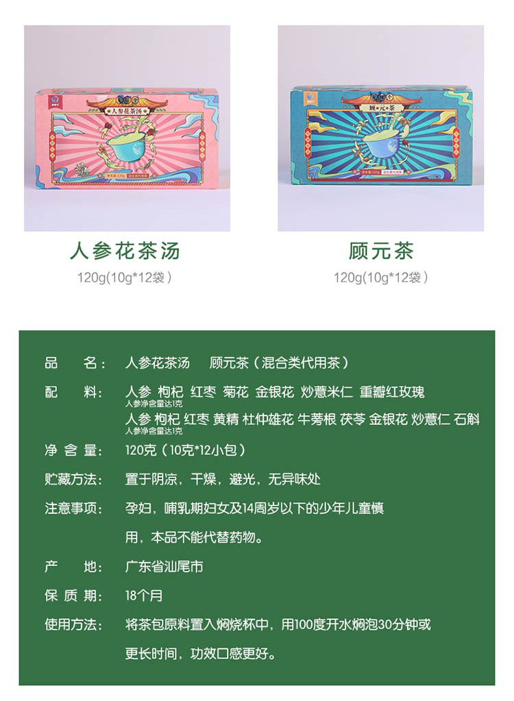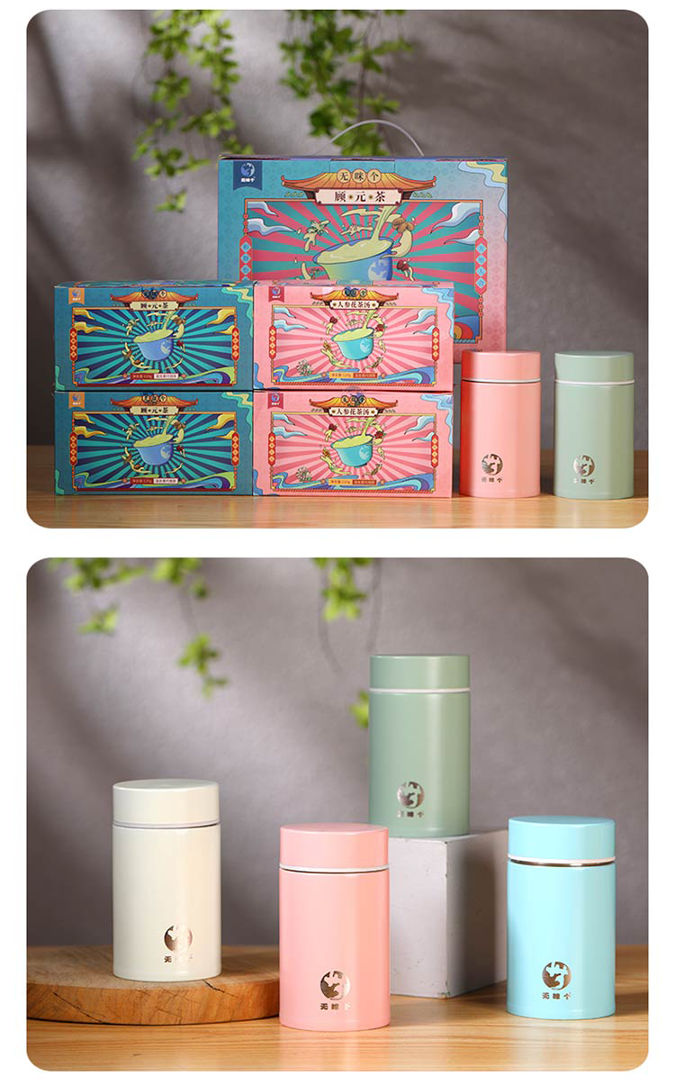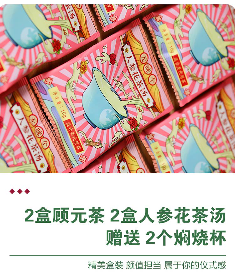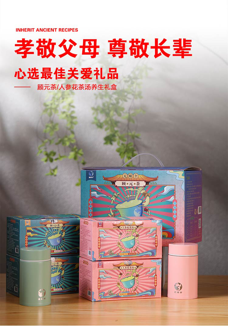 广东汕尾无咪个顾元茶人参花茶汤礼盒480g/套(礼盒内有两盒顾元茶,两盒人参花茶汤,两个焖烧杯)