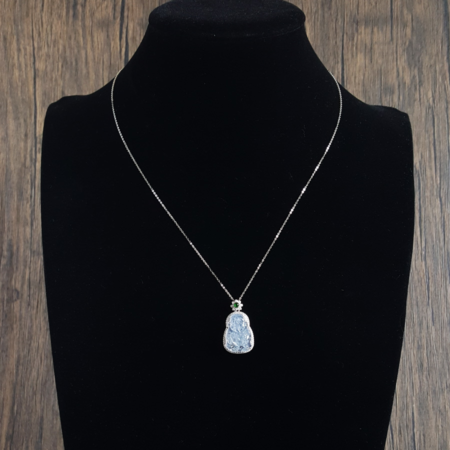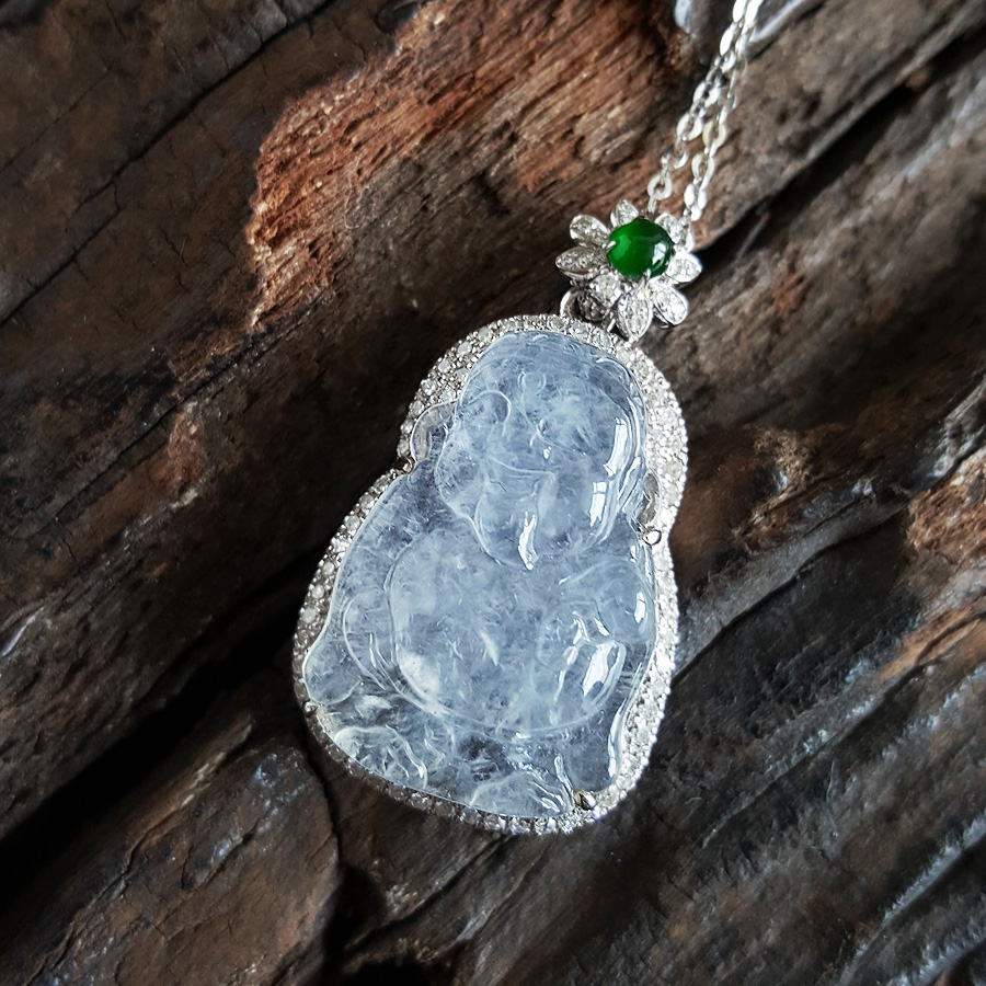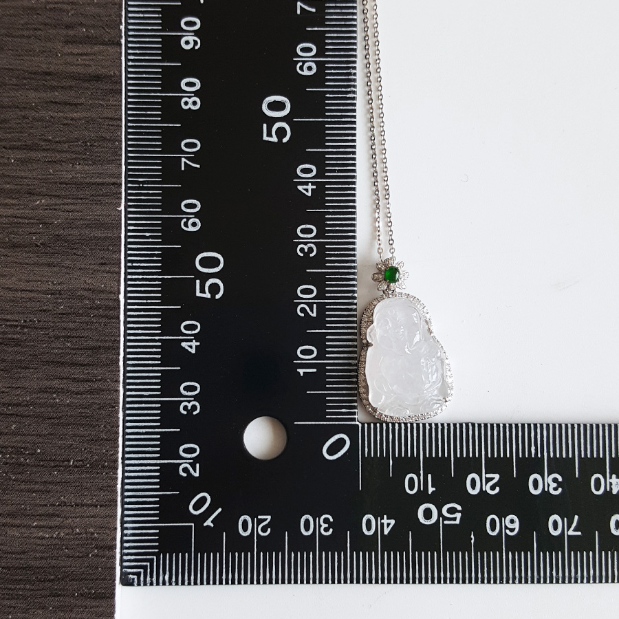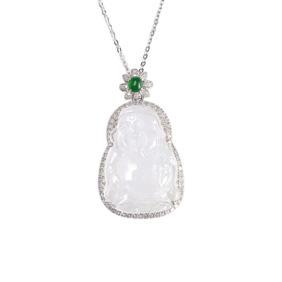 名称 | AU750白金镶钻镶高冰种财神造型翡翠(好运、招财)吊坠项链 |