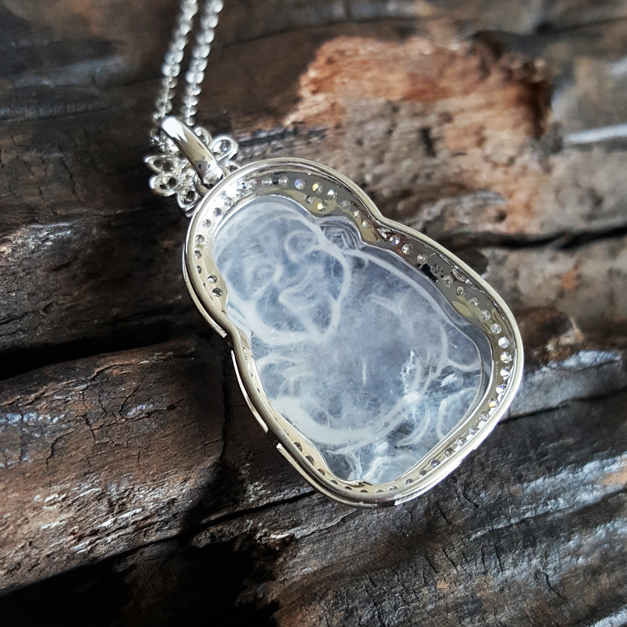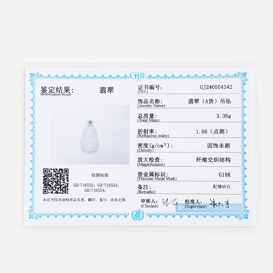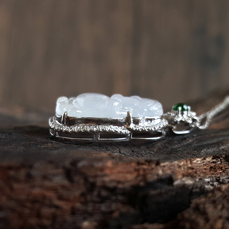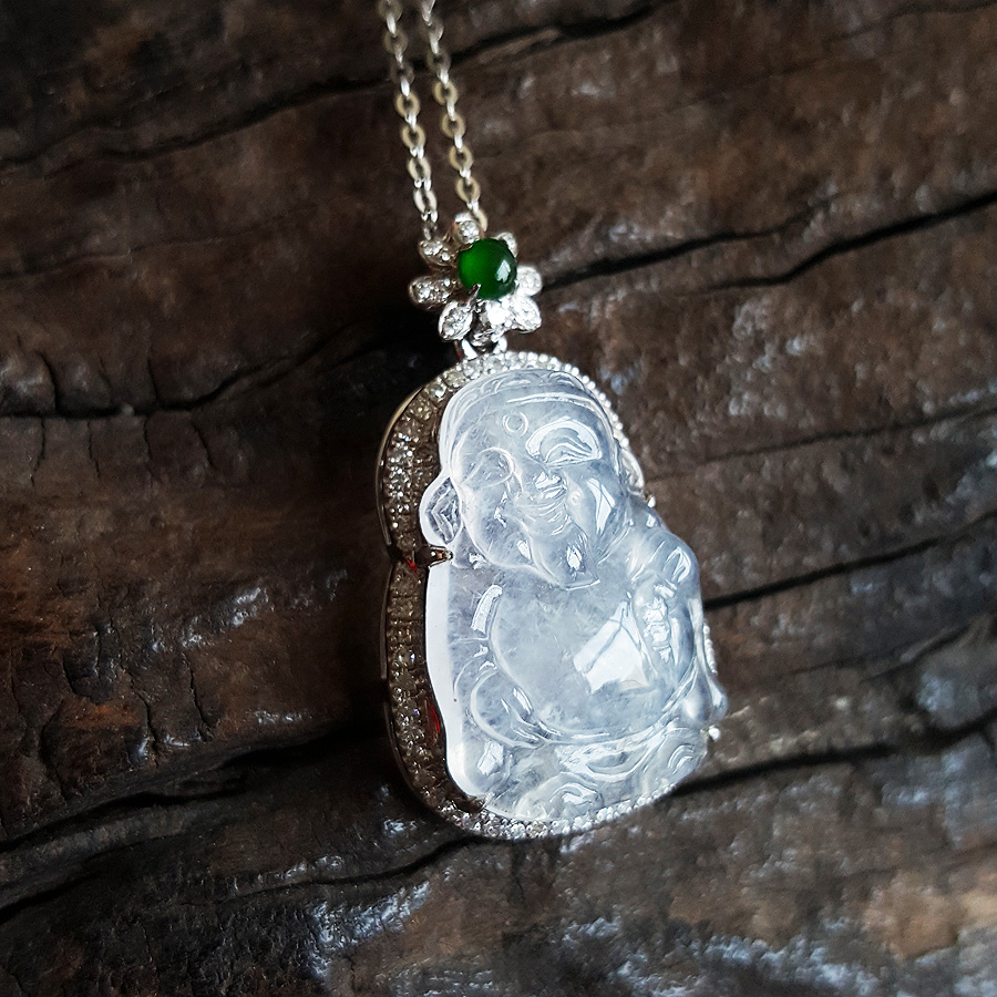 名称 | AU750白金镶钻镶高冰种财神造型翡翠(好运、招财)吊坠项链 |