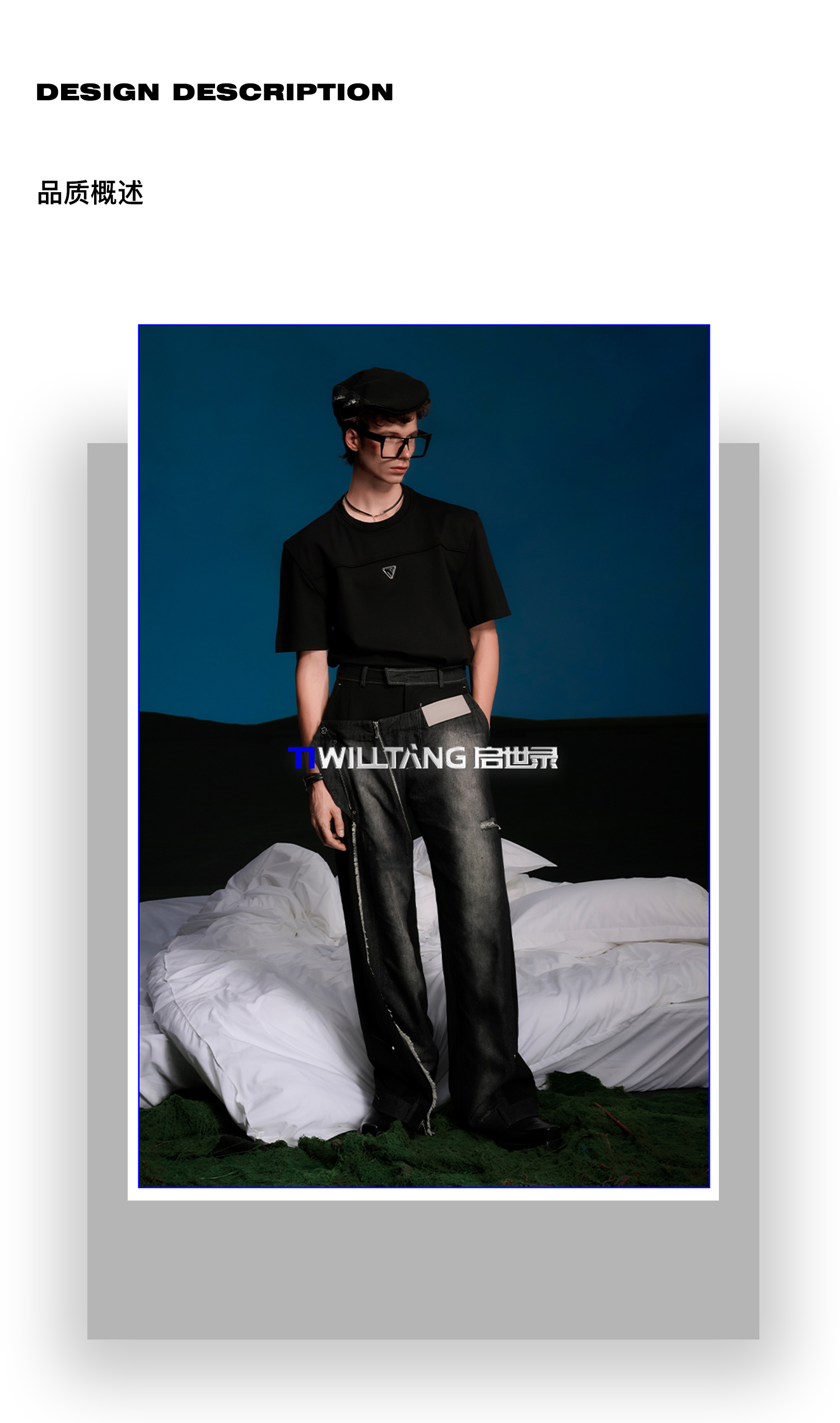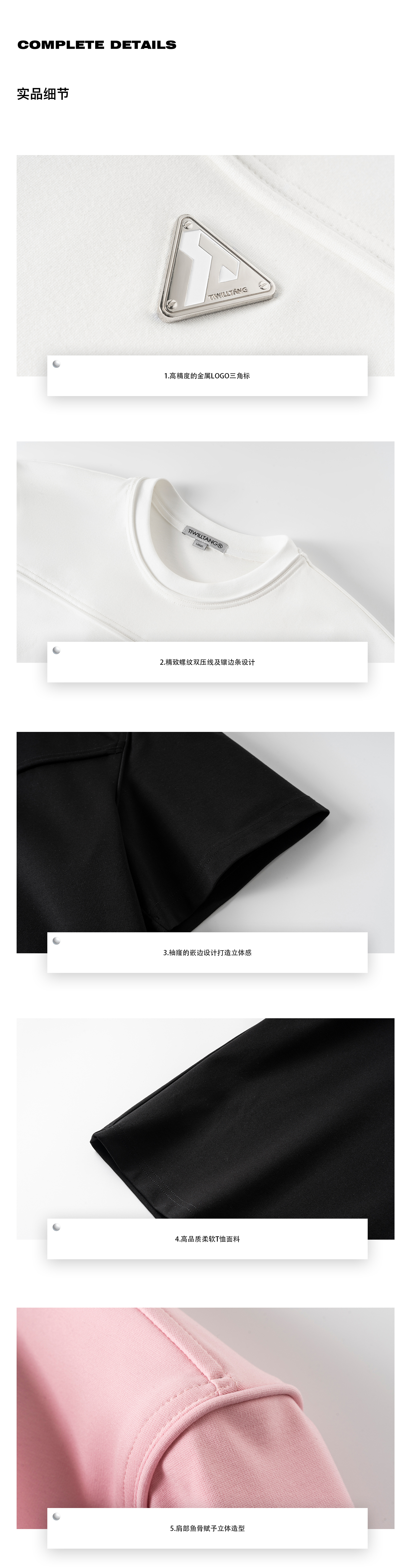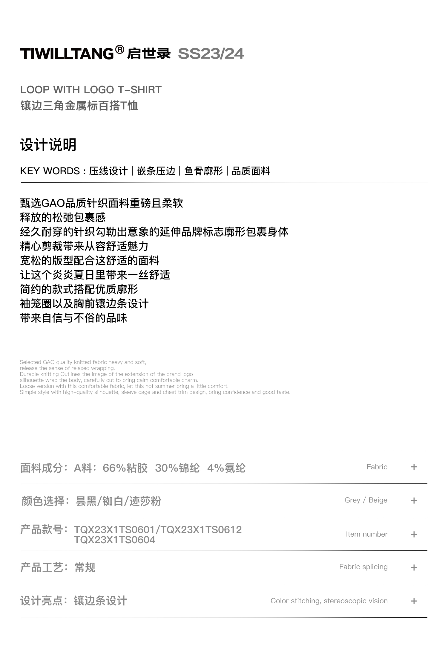 启世录TIWILLTANG“爵屿钦杰”镶边三角金属标百搭T恤圆领短袖男
