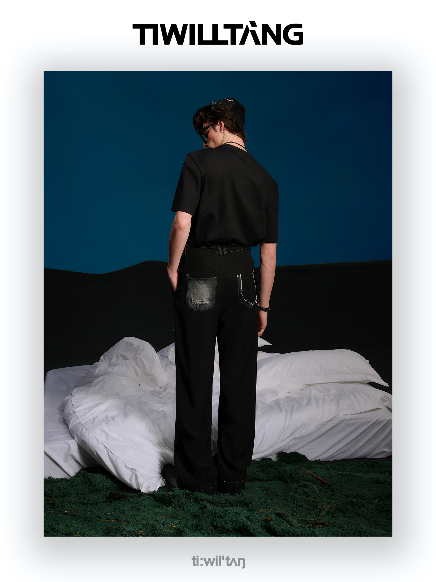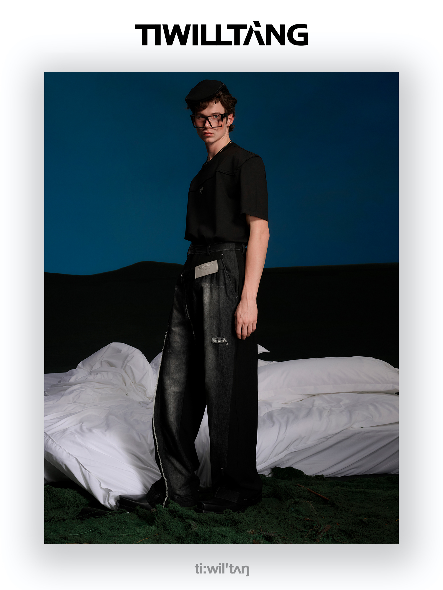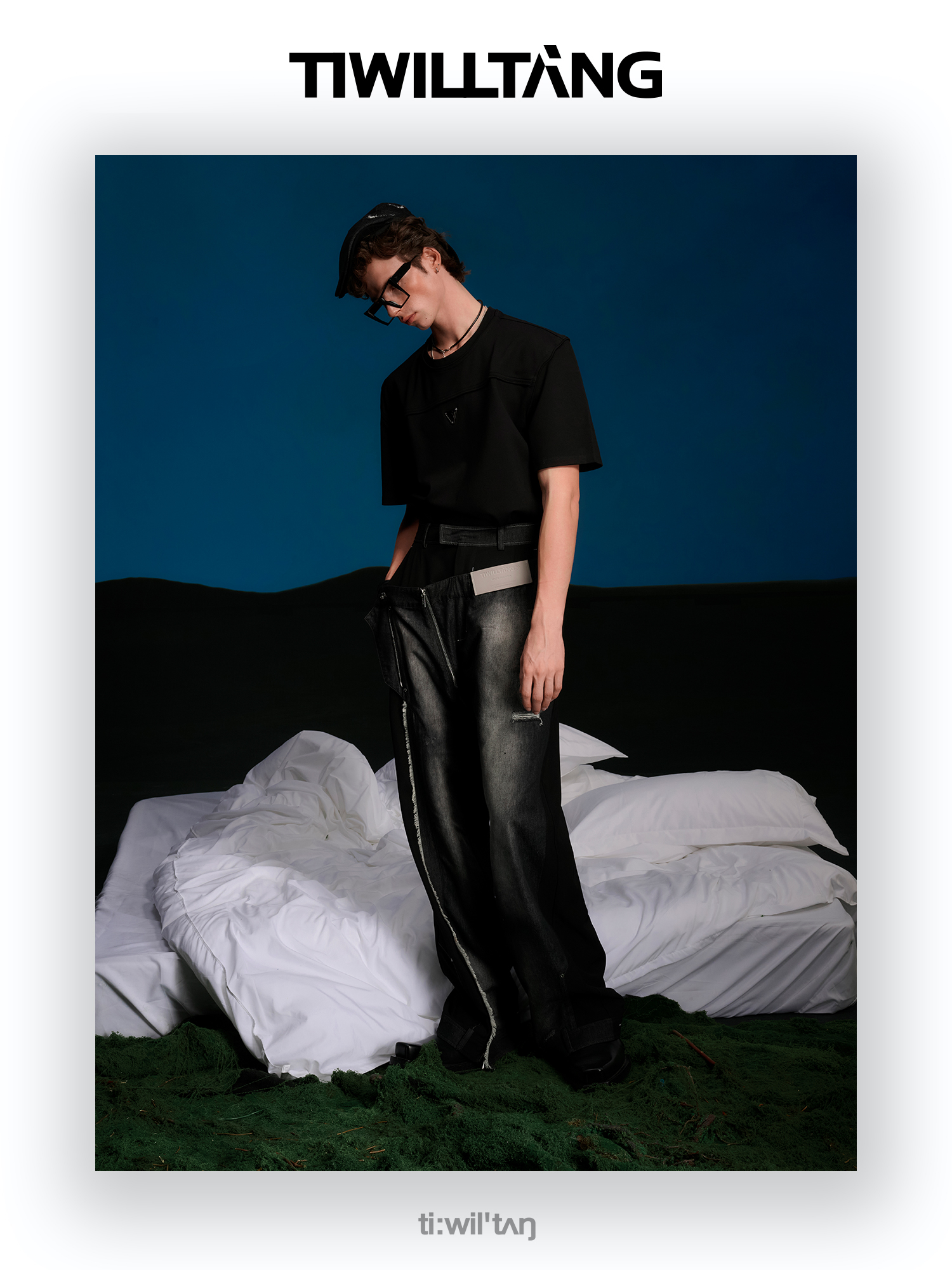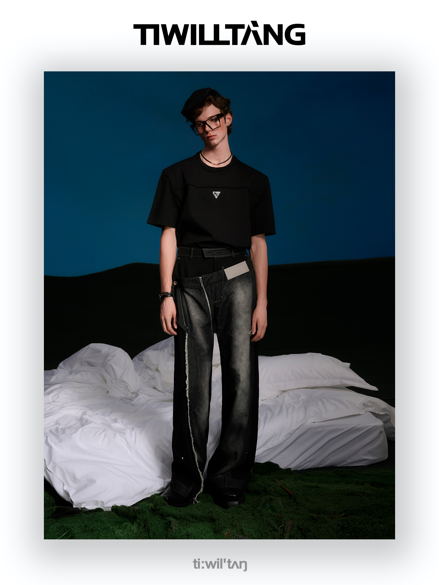 启世录TIWILLTANG“爵屿钦杰”镶边三角金属标百搭T恤圆领短袖男