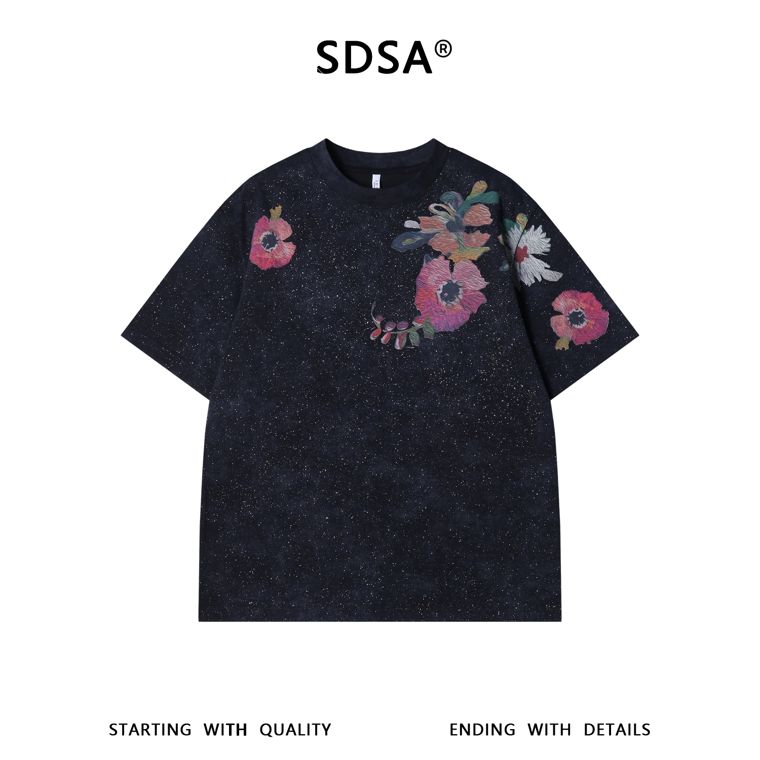 26T153SDSA男装2026新款高贵轻奢潮牌满天星撞色花卉印花圆领短袖T恤