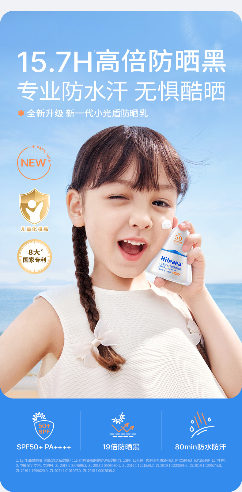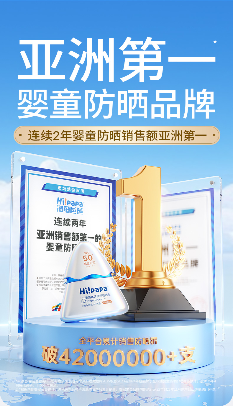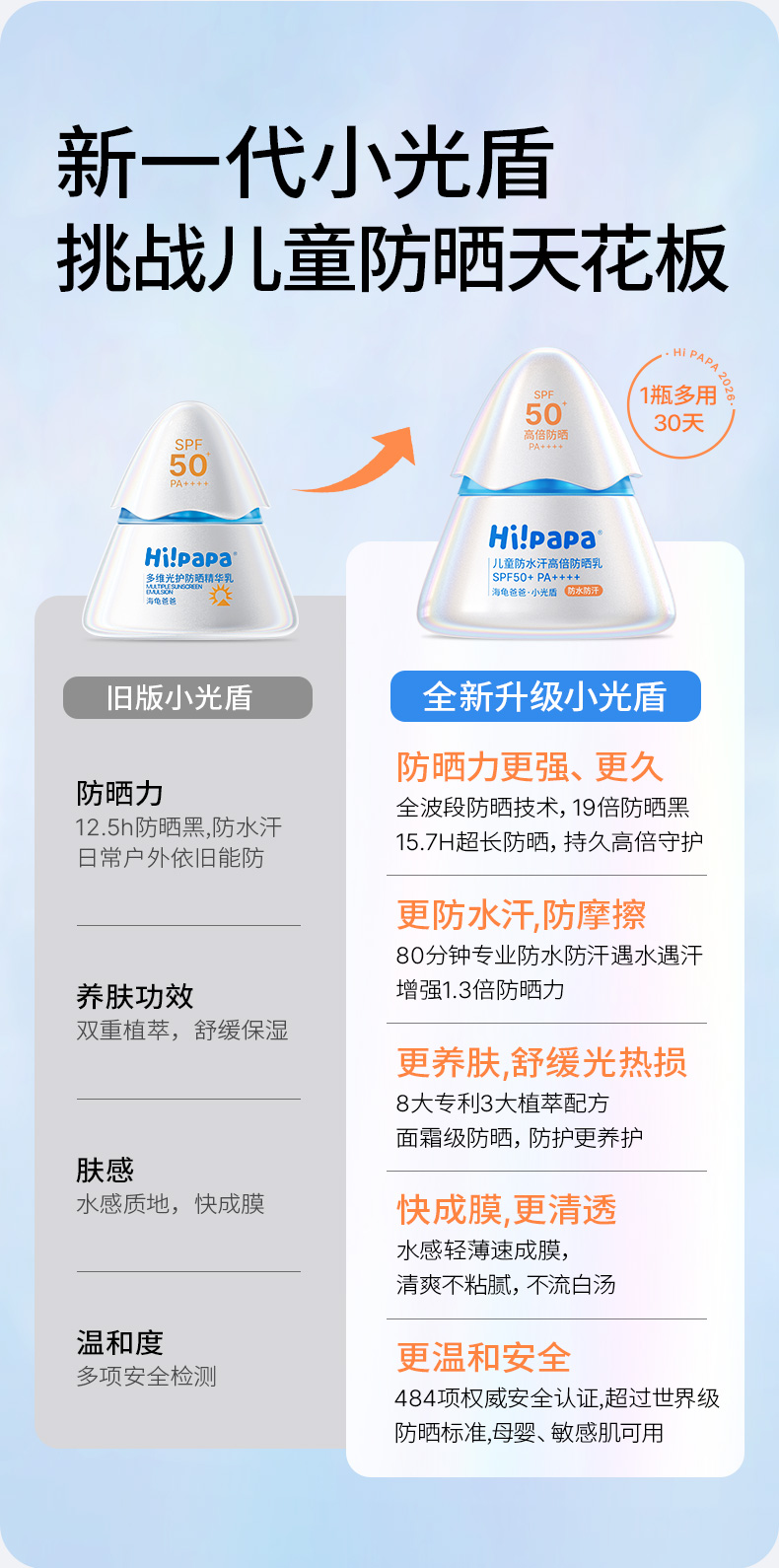严选 | Hi!papa海龟爸爸儿童防水汗高倍防晒乳 40g/瓶 SPF50+ PA++++ 小光盾26年版 【专业级儿童高倍防晒】