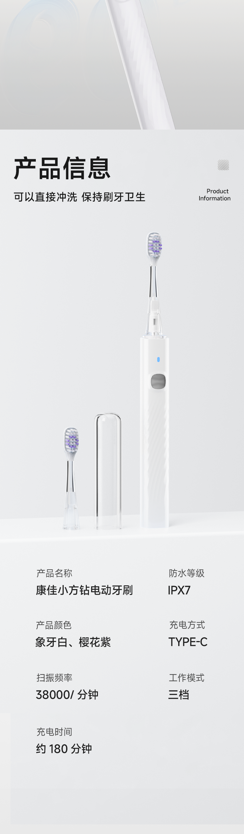 Konka/康佳小方钻电动牙刷全自动杀菌蓝光家用旅行男女生防水