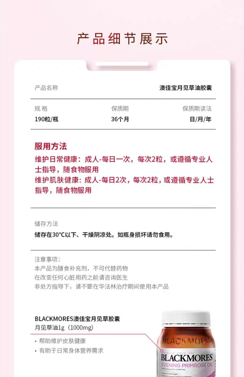 Blackmores澳洲月见草油精华胶囊190粒