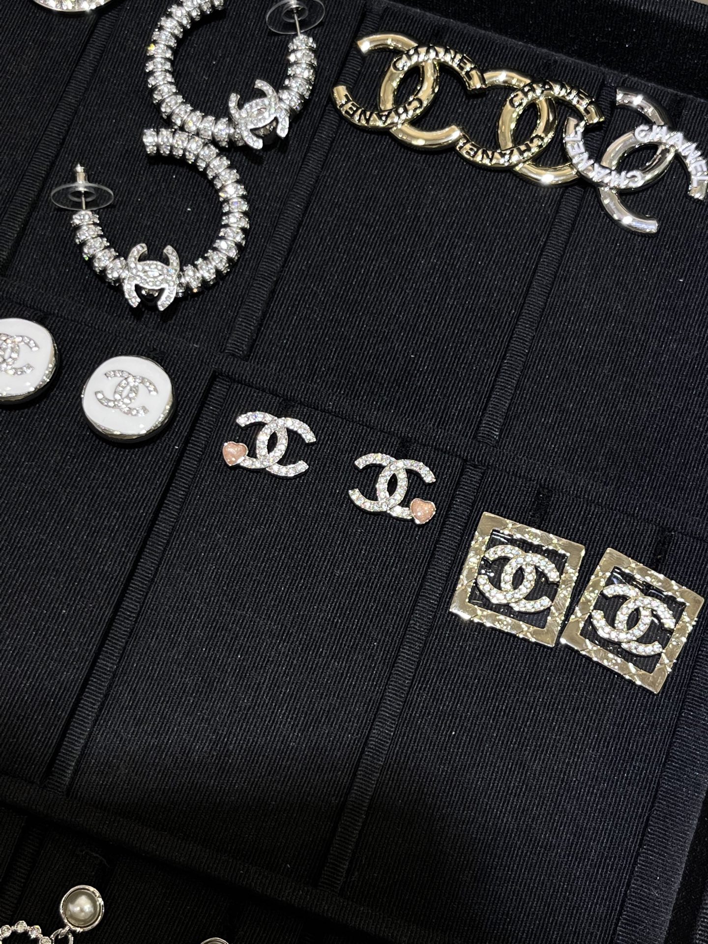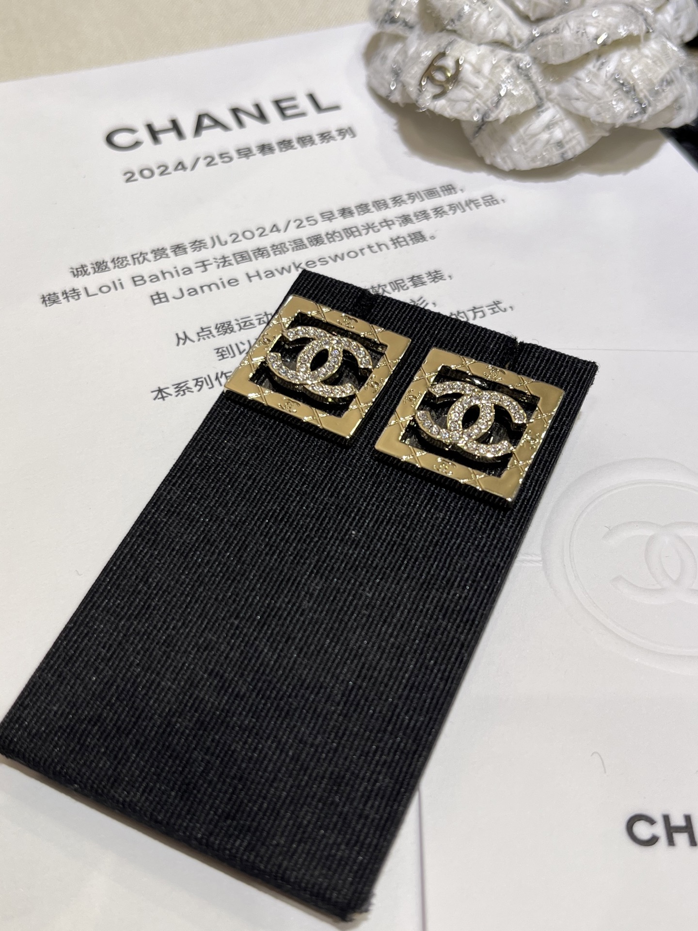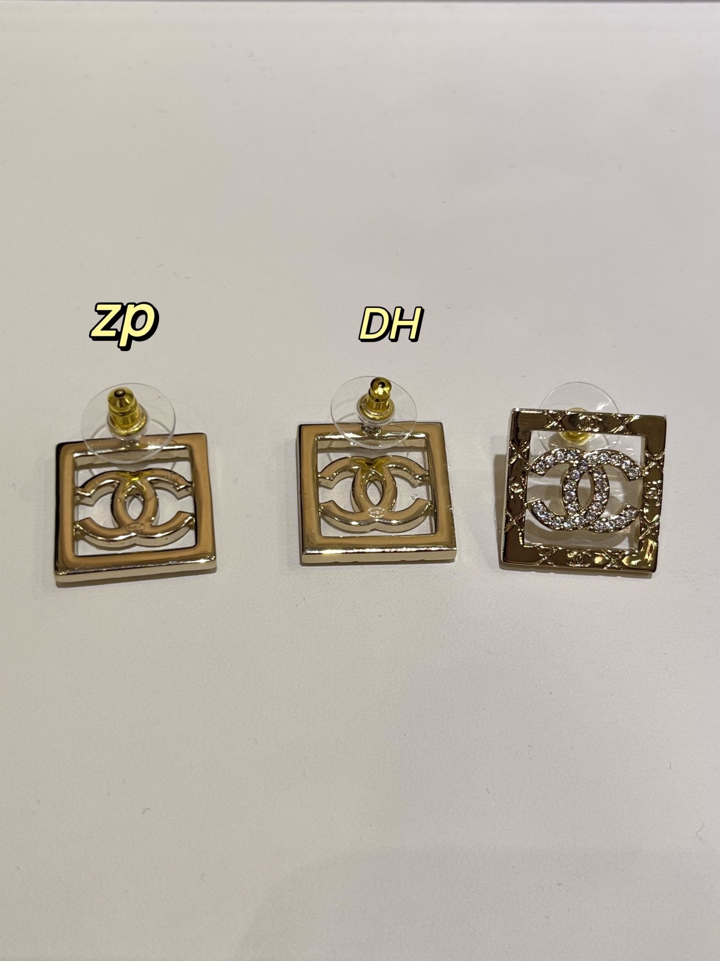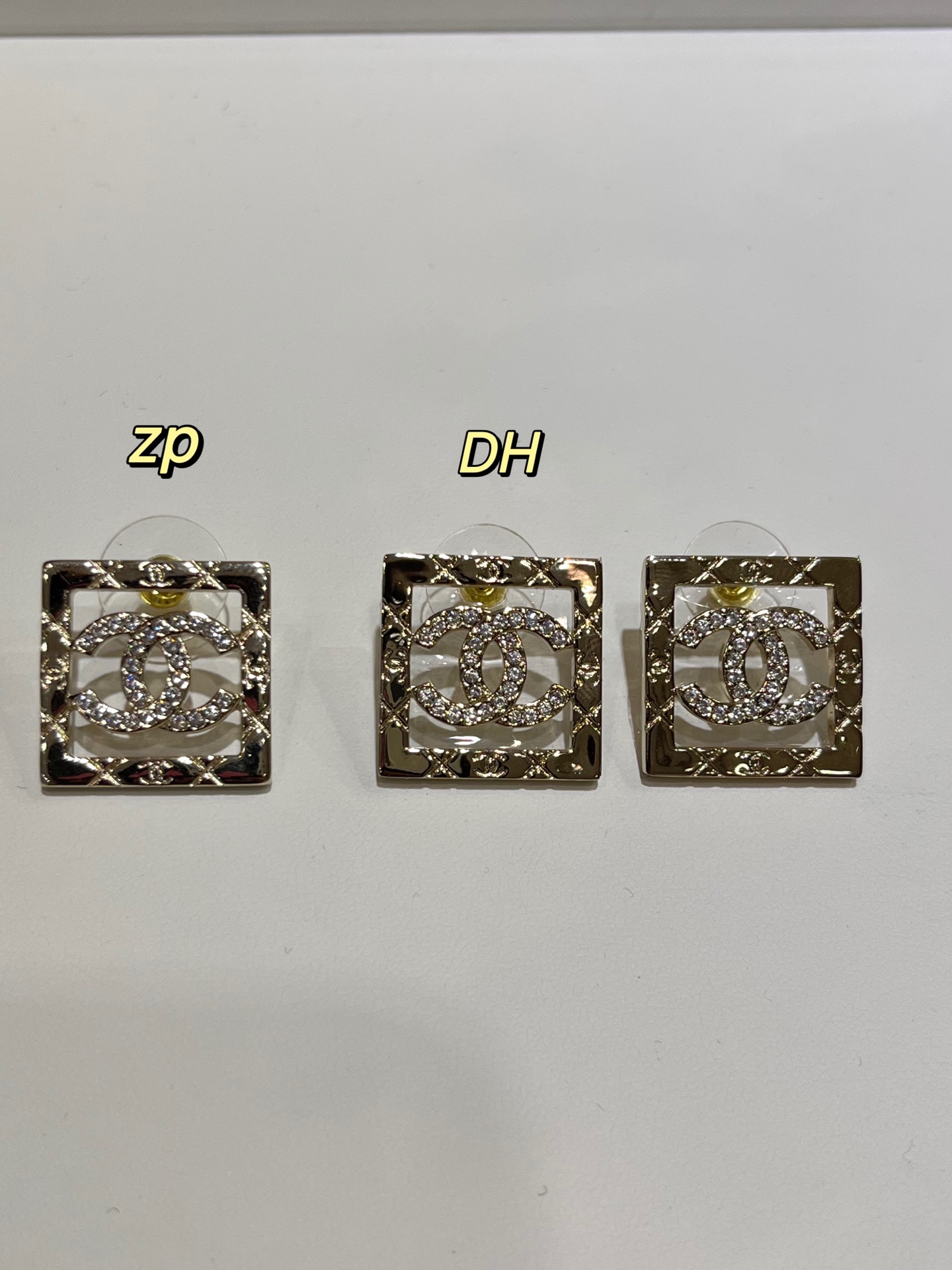香奶奶 25P新款金色满钻双C镂空方块耳钉