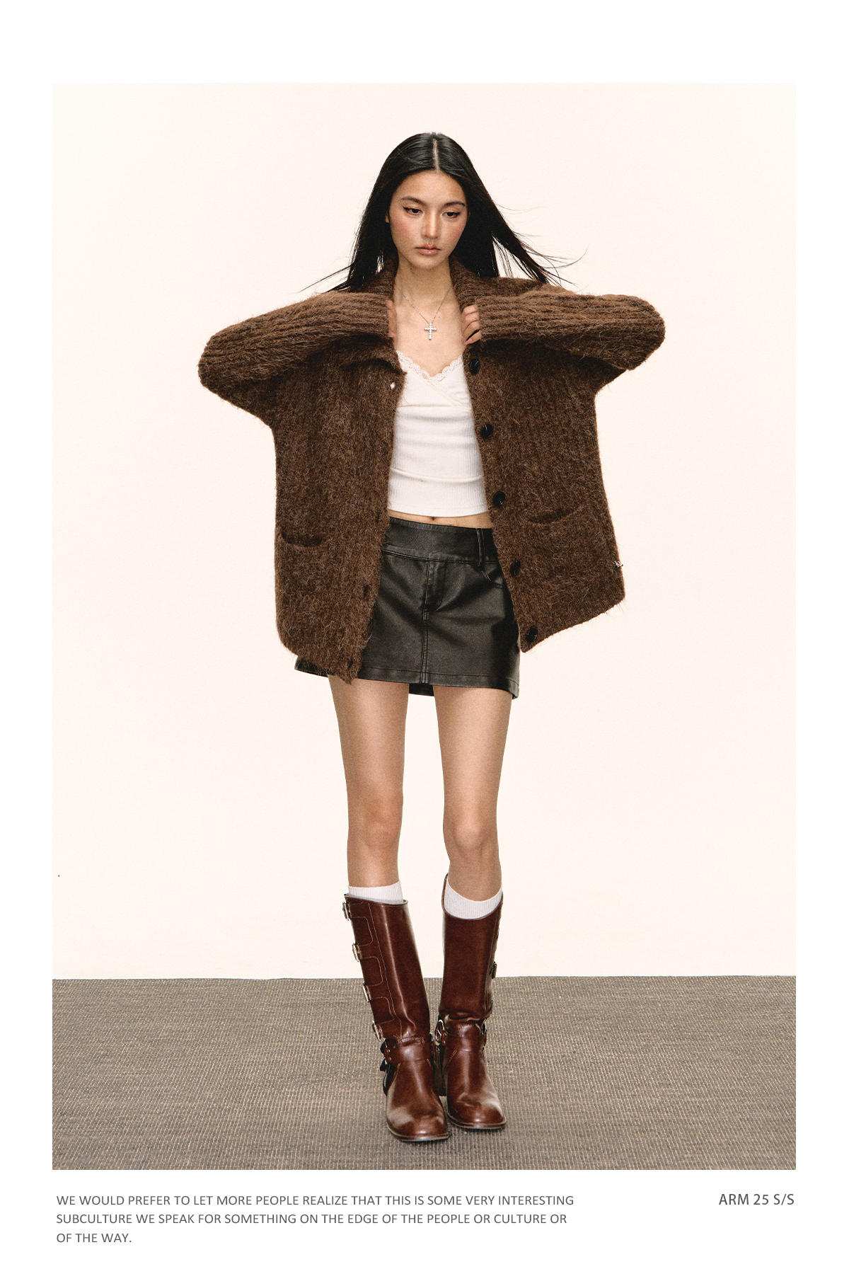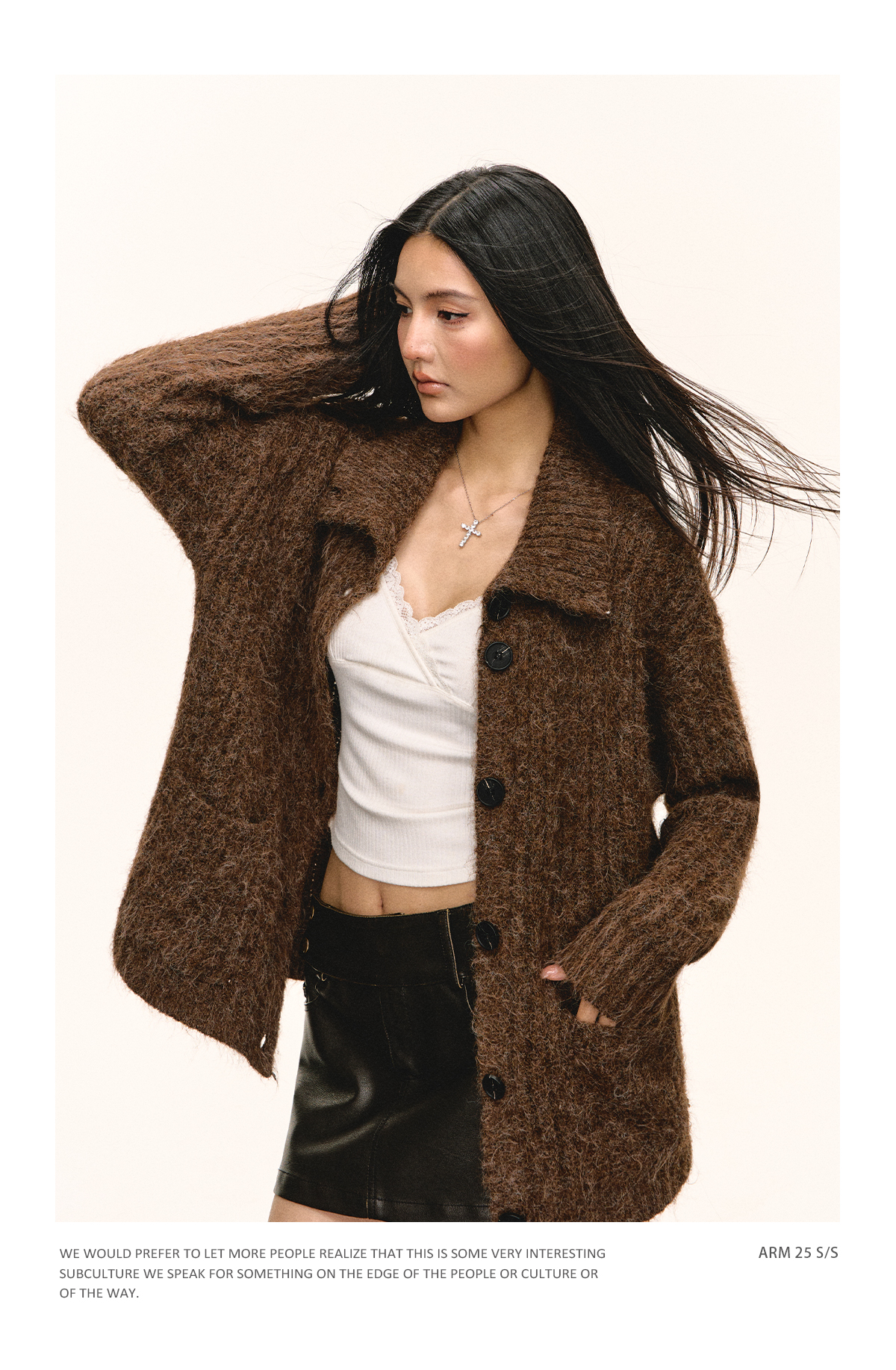 Ariseism 美式复古翻领开衫毛衣外套女秋季新款上衣