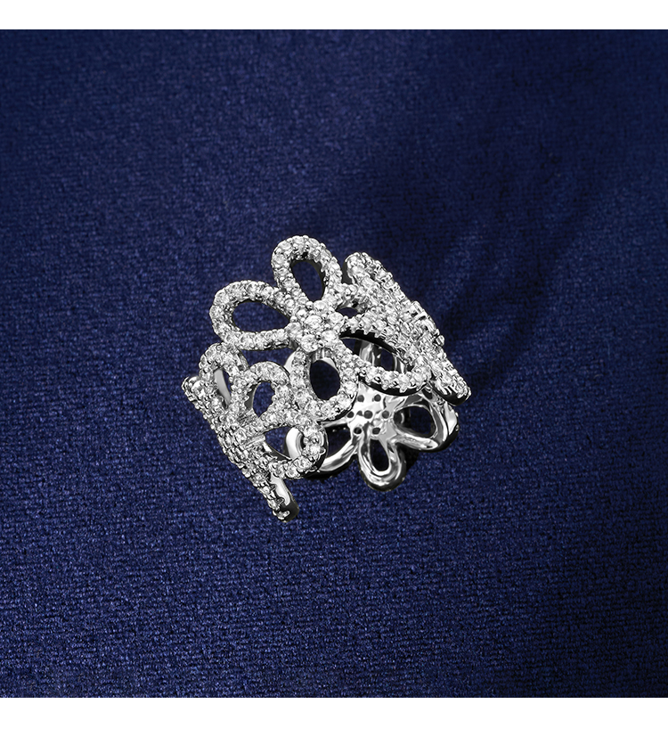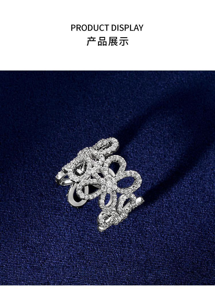 ANGEL ISLAND「洛拉Lola」镂空花朵锆石可调节开口戒指