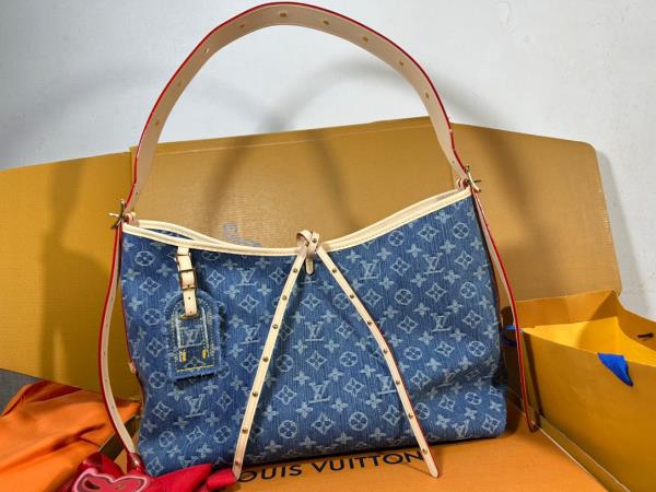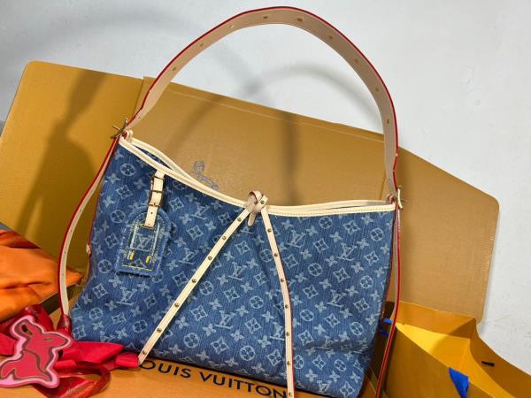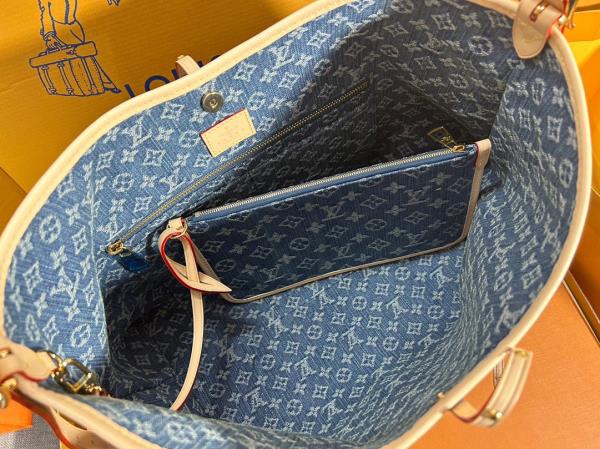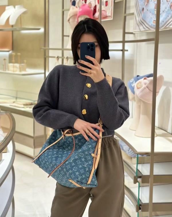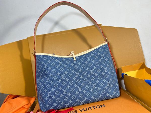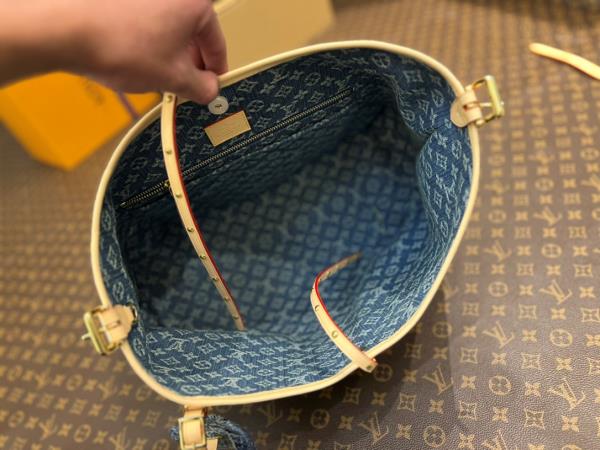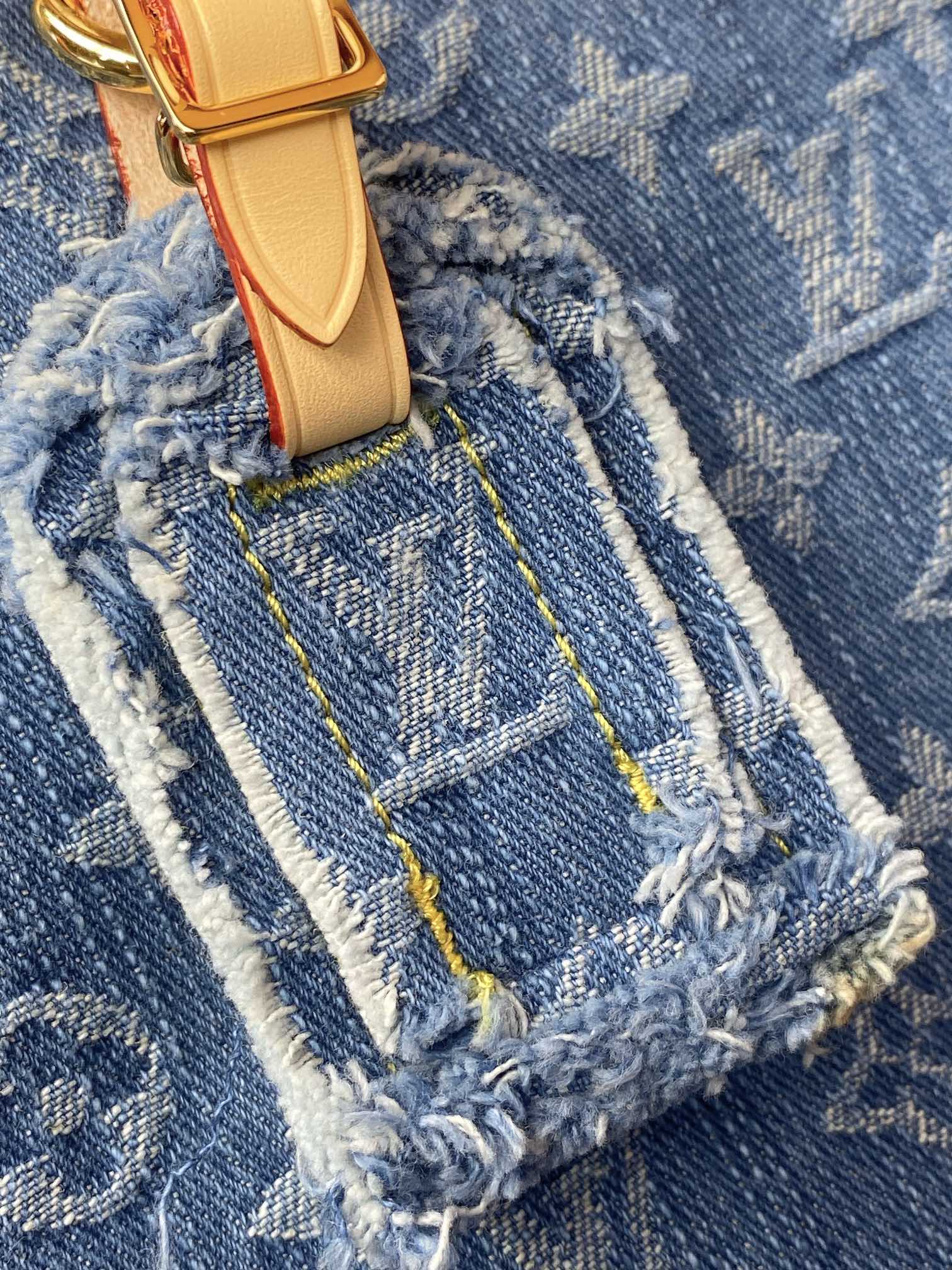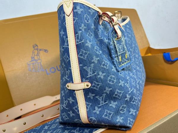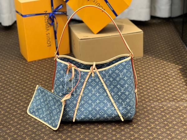 M46855蓝色牛仔 丹宁购物袋系列 M46197 CarryAll 中号手袋 路易威登推出崭新 CarryAll 中号手袋,以 Monogram 帆布和皮革饰边塑造贴合身形的设计。牛仔布布面刺绣二件套系带包大号oo充裕空间内设拉链袋,可拆卸拉链手拿包再添功能元素,搭扣可调节手柄长度。尺寸:39.0 x 30.0 x 15.0 厘米 (长 x 高 x 宽)