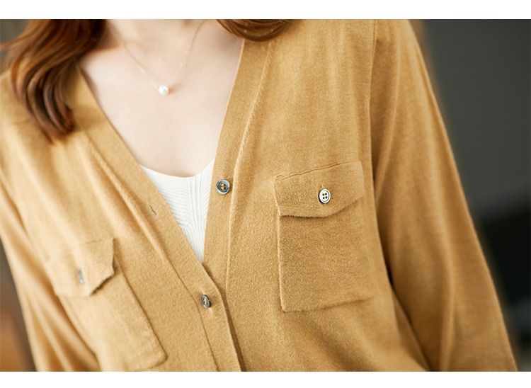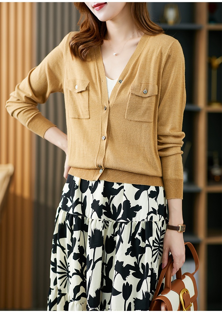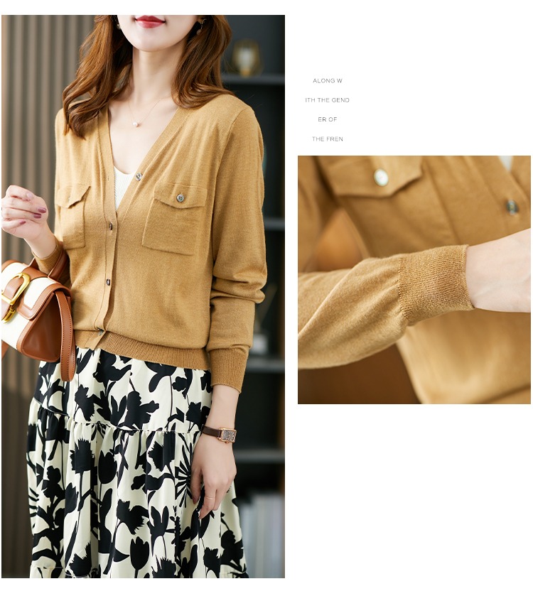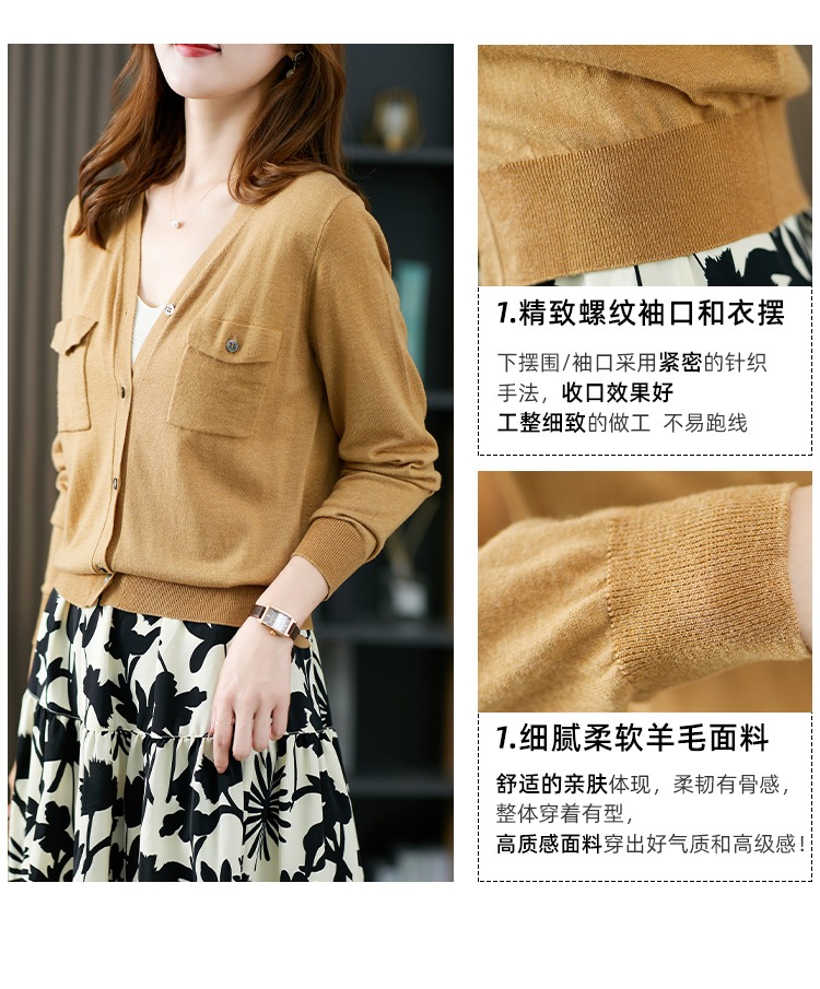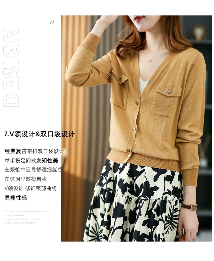 现货7天】V领针织开衫女夏秋薄款2023新款小外套羊毛长袖针织衫上衣