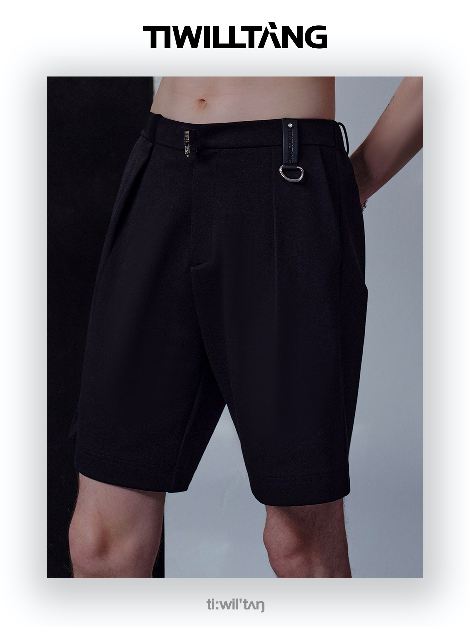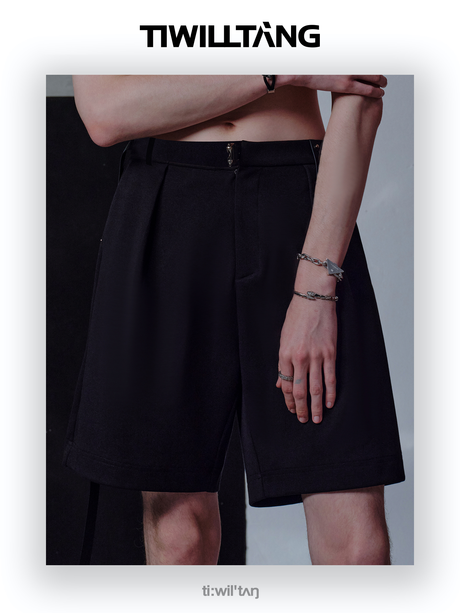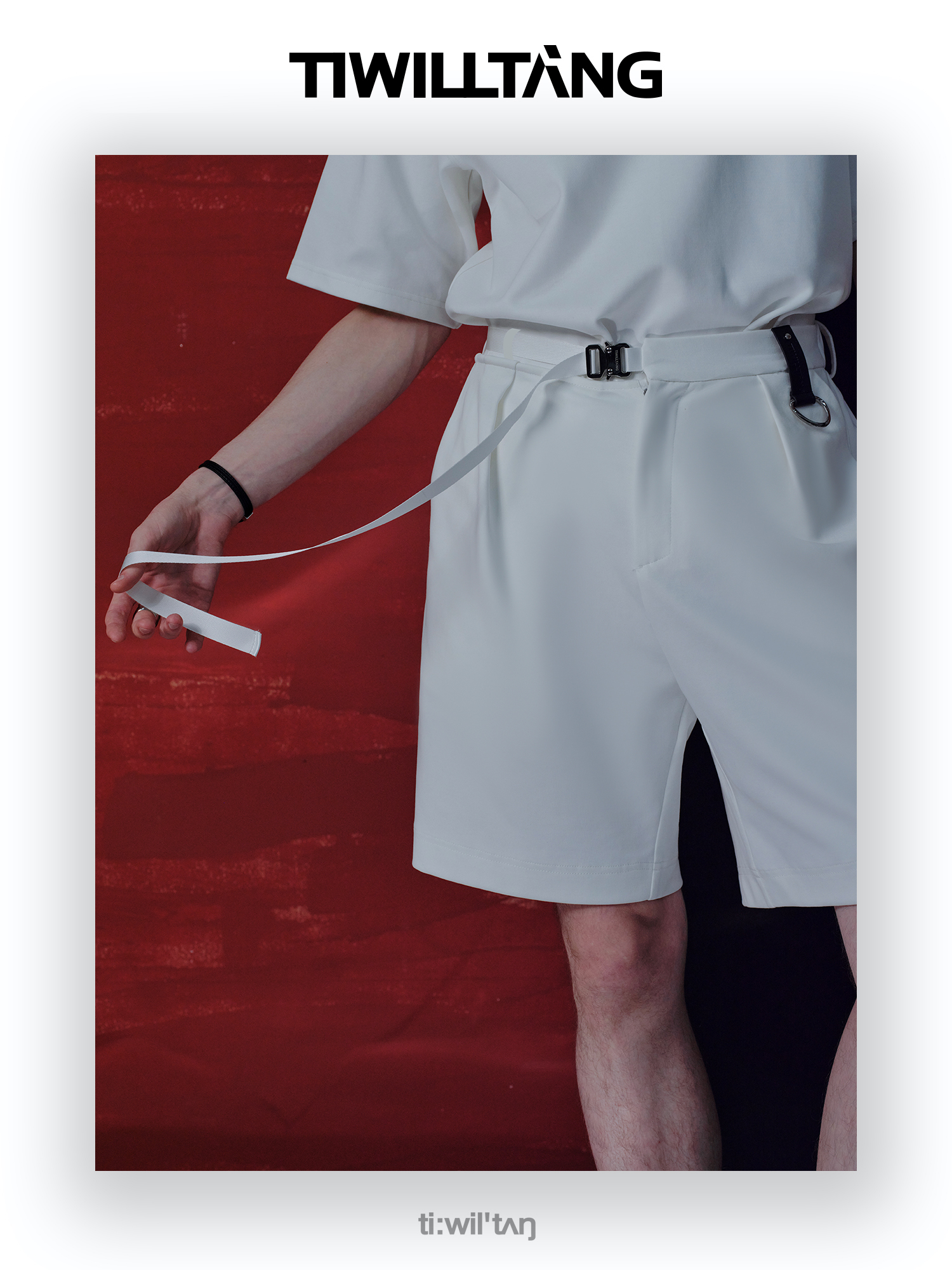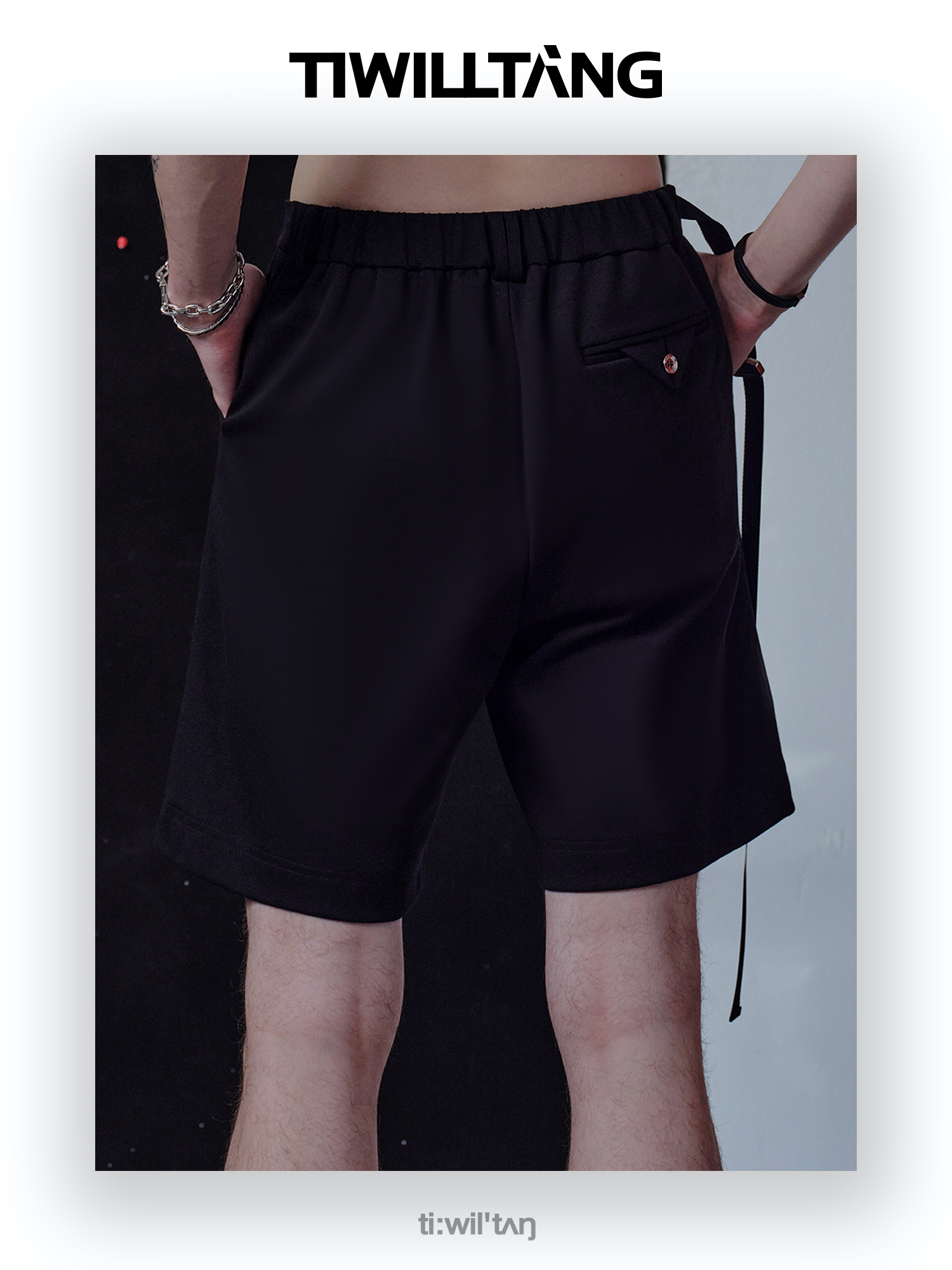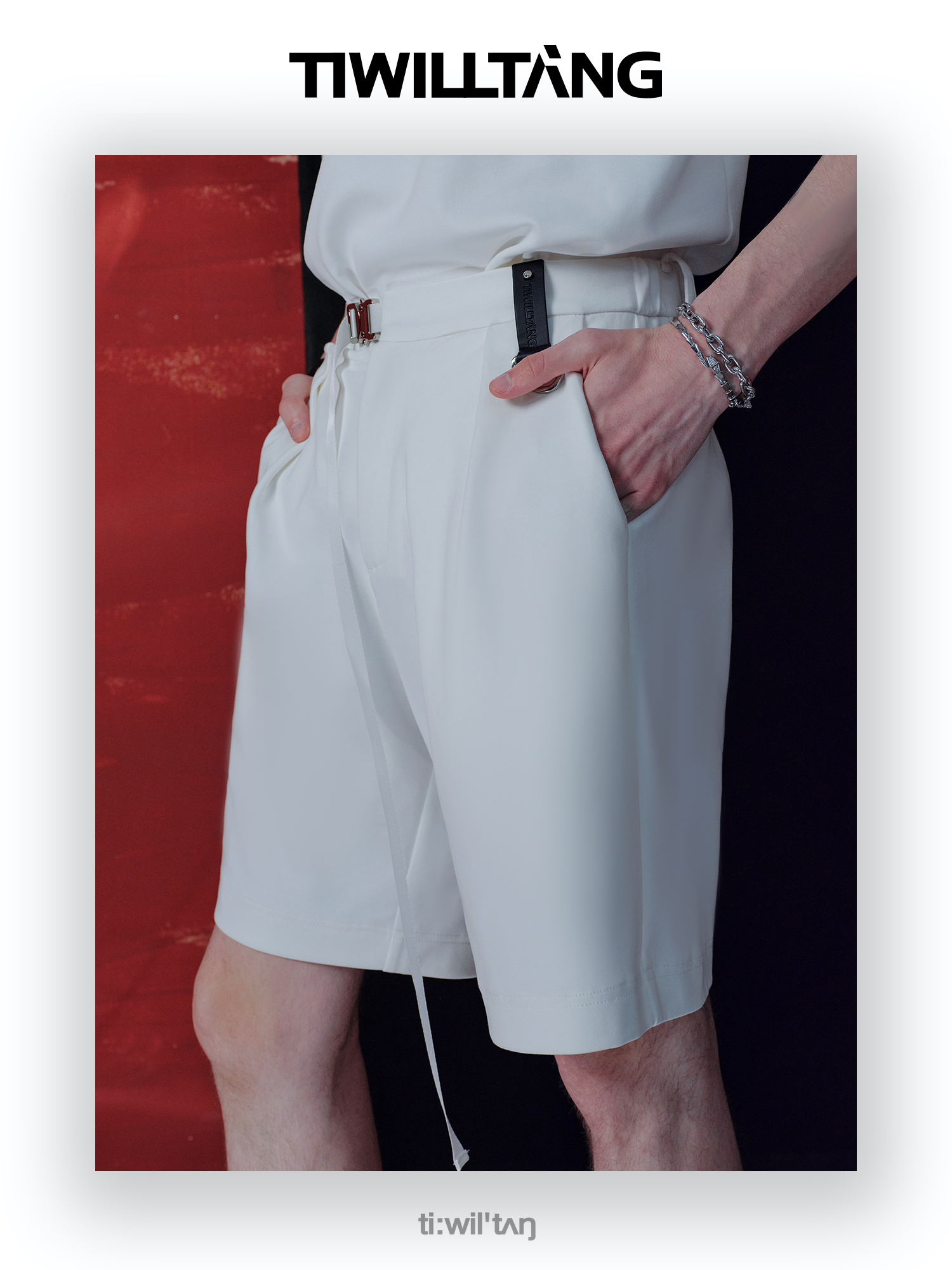 TIWILLTANG启世录“菱烬型制”袢带不对称腰头短裤宽松休闲裤男