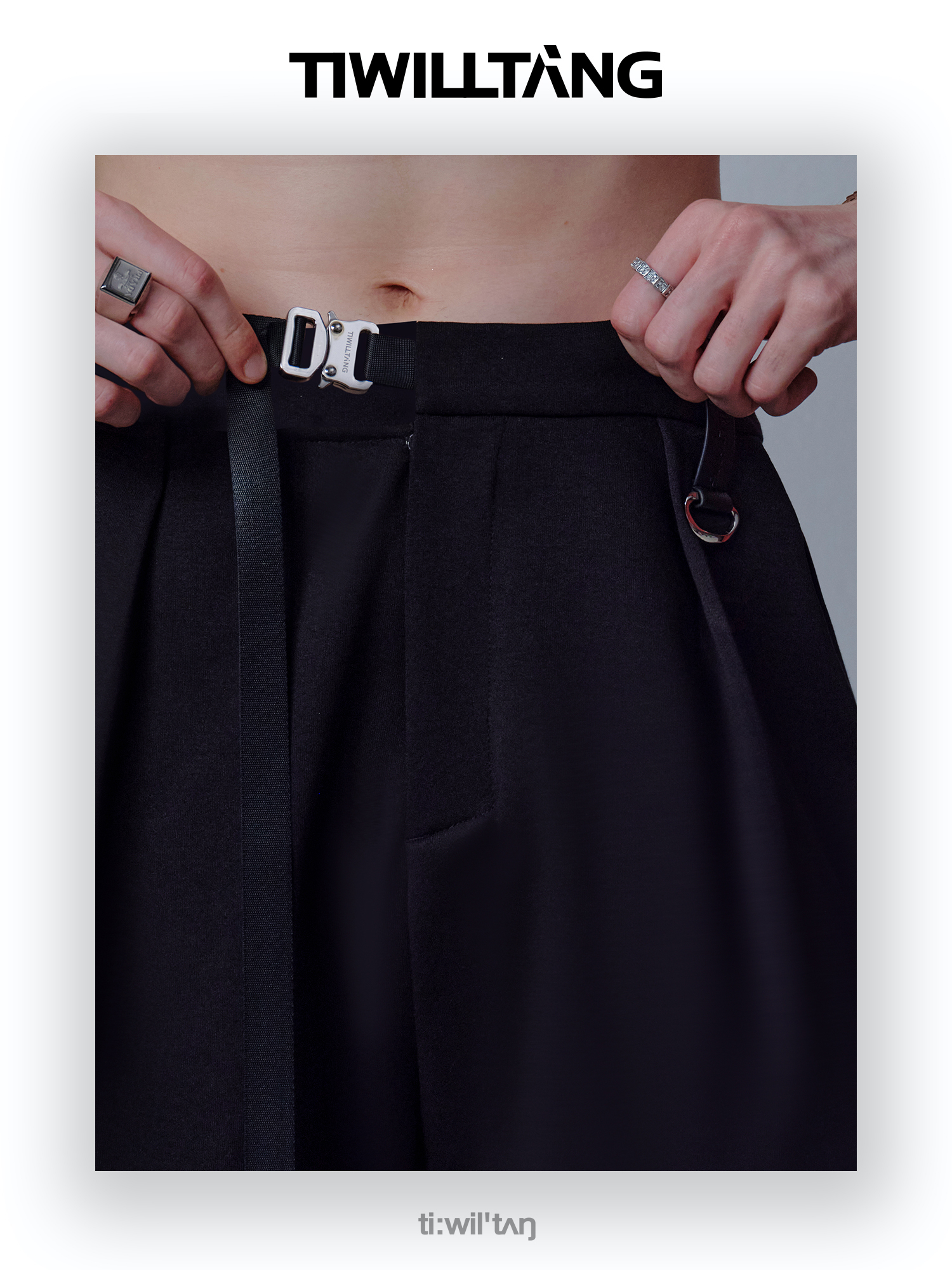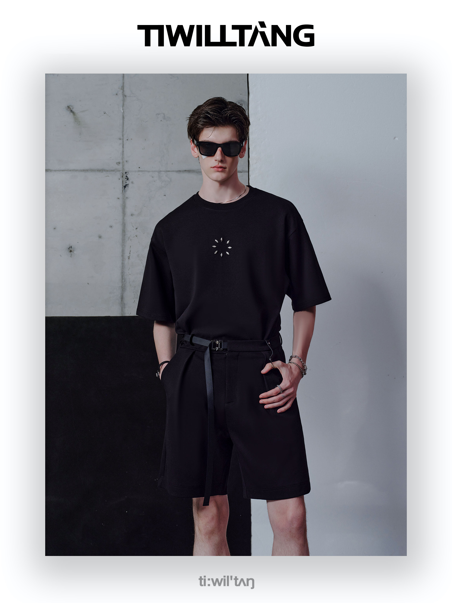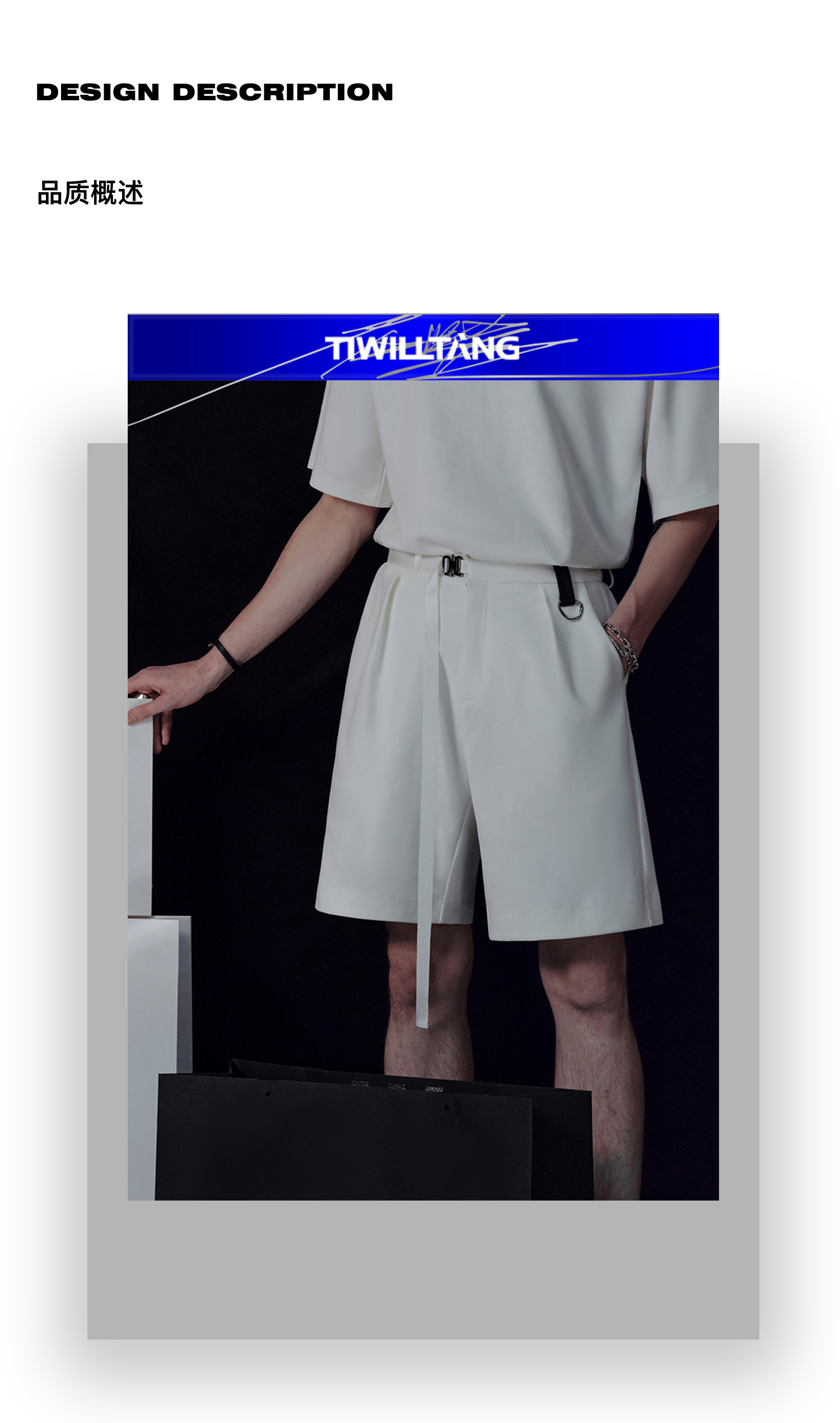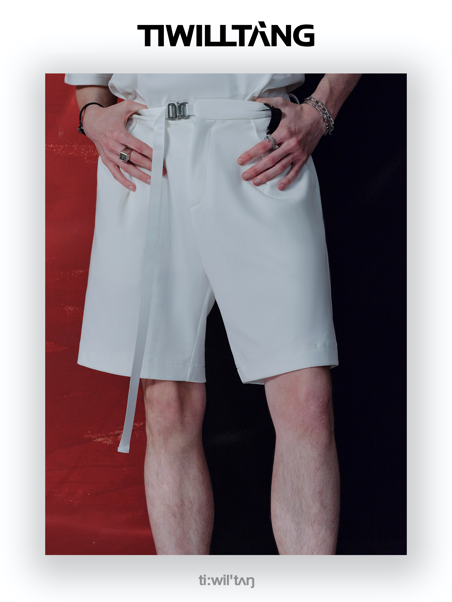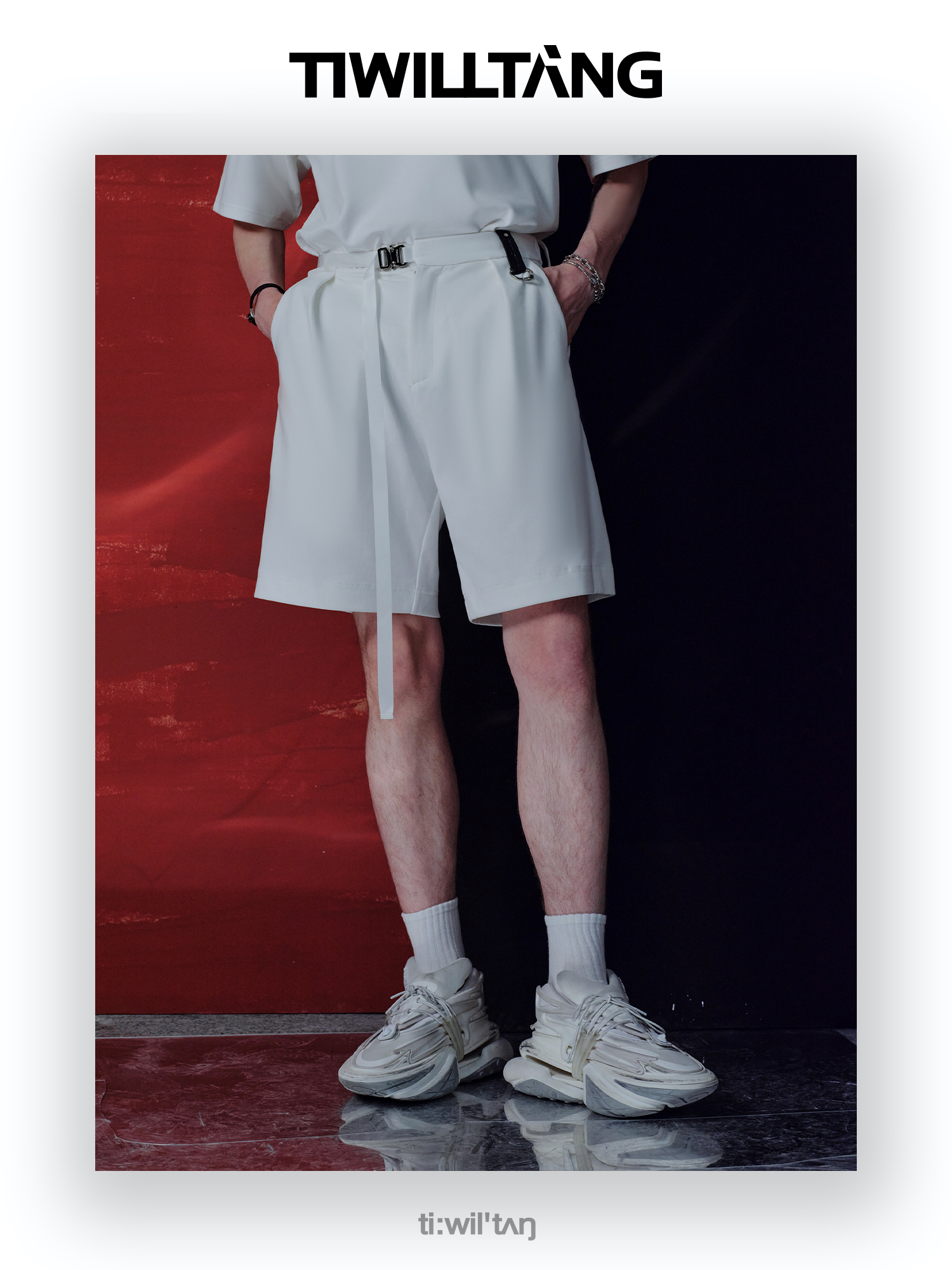 TIWILLTANG启世录“菱烬型制”袢带不对称腰头短裤宽松休闲裤男