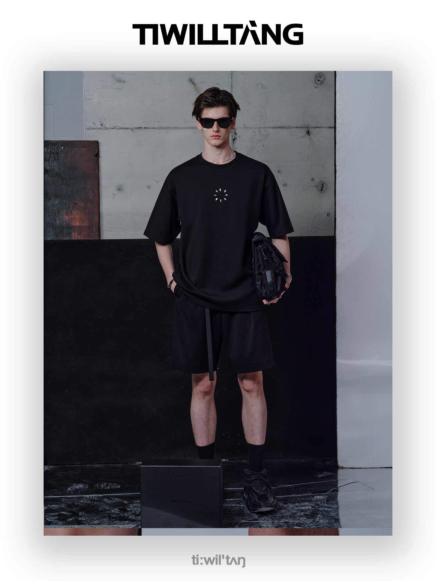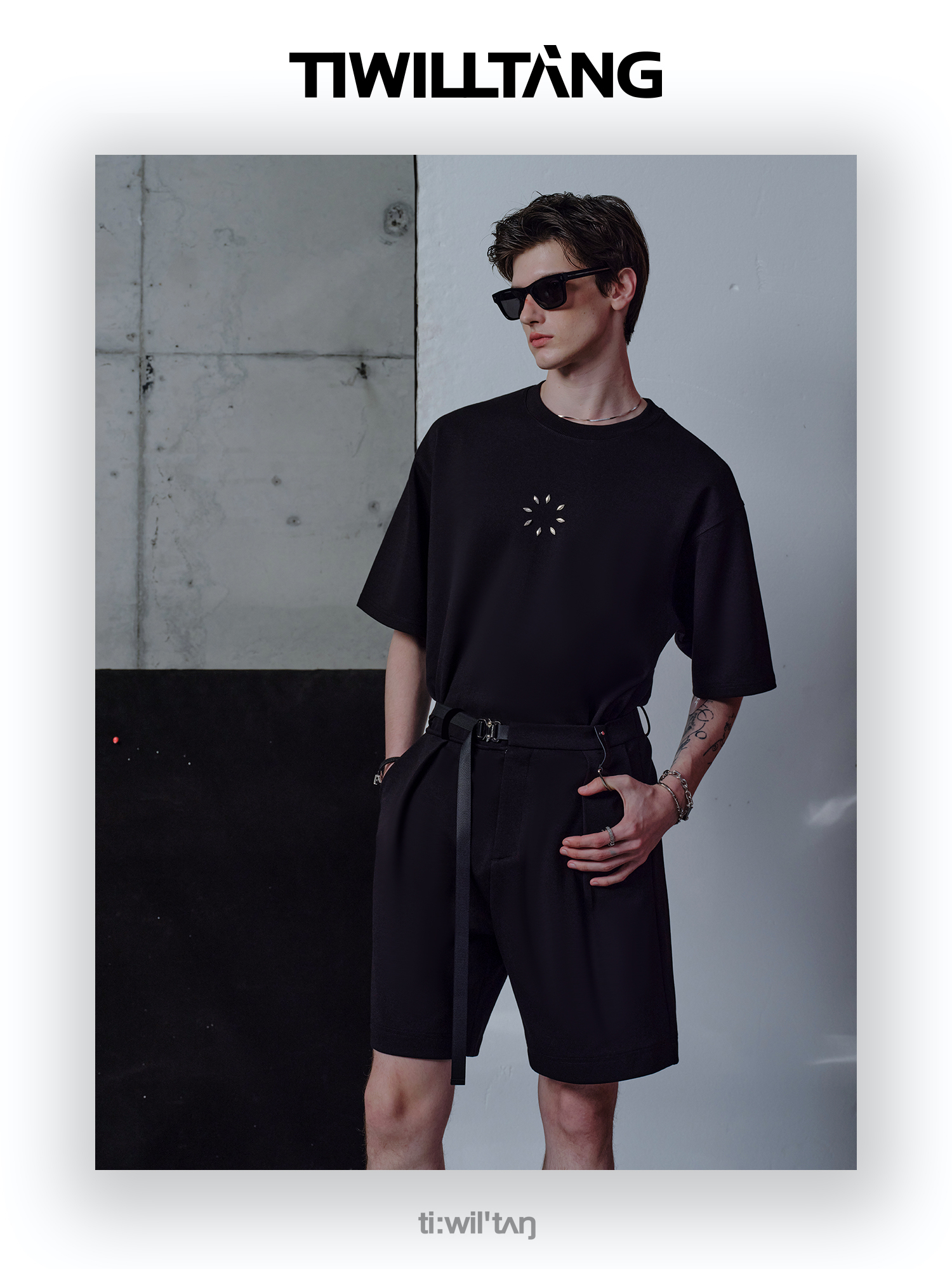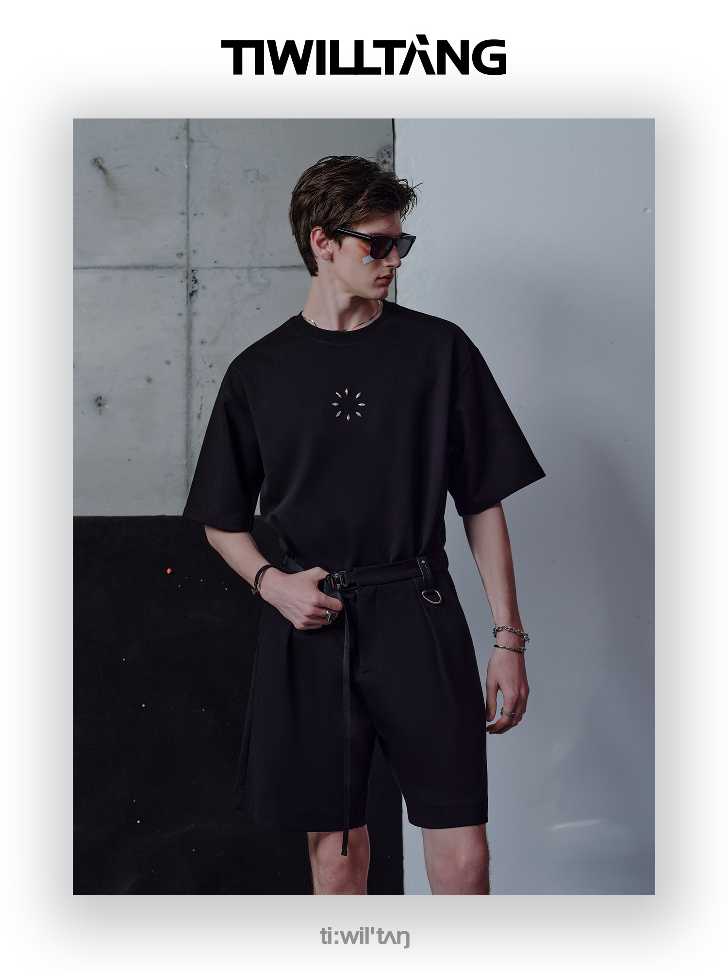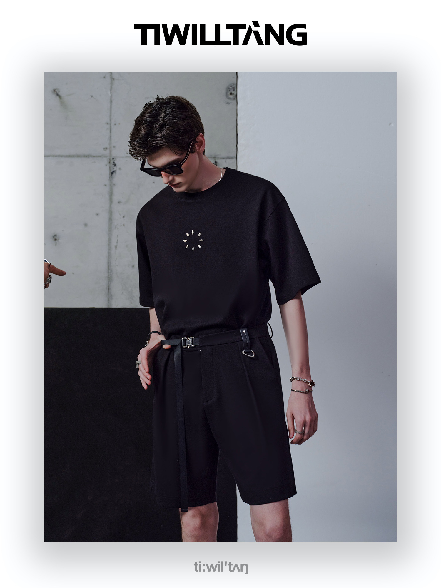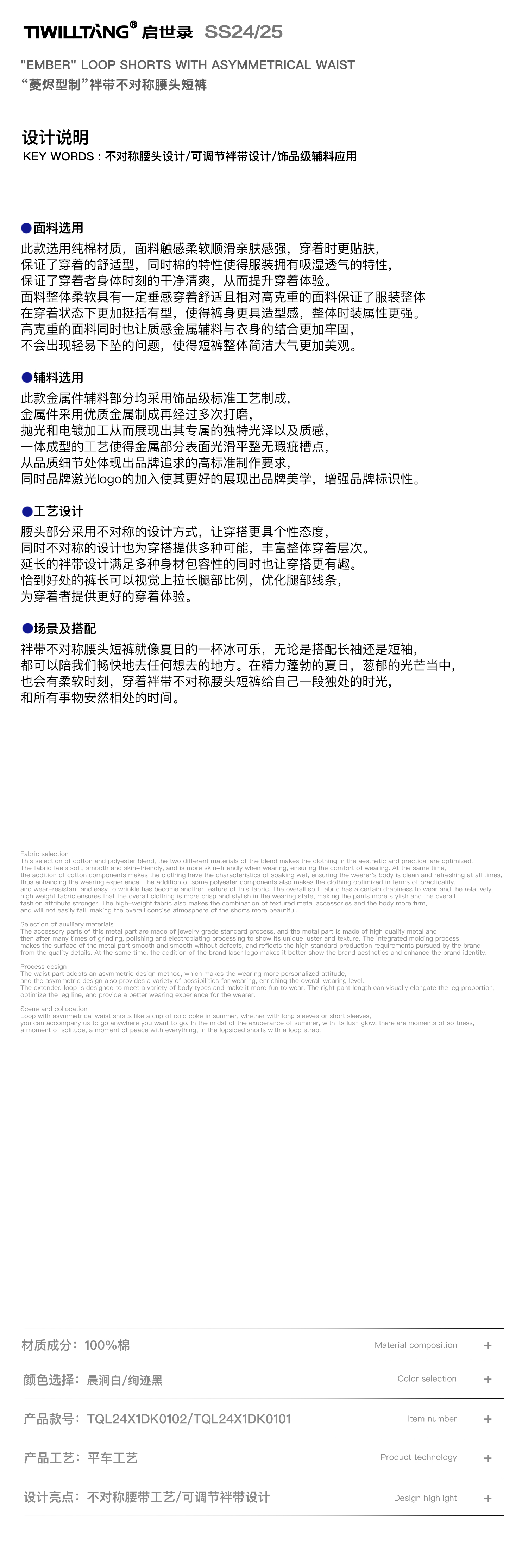 TIWILLTANG启世录“菱烬型制”袢带不对称腰头短裤宽松休闲裤男