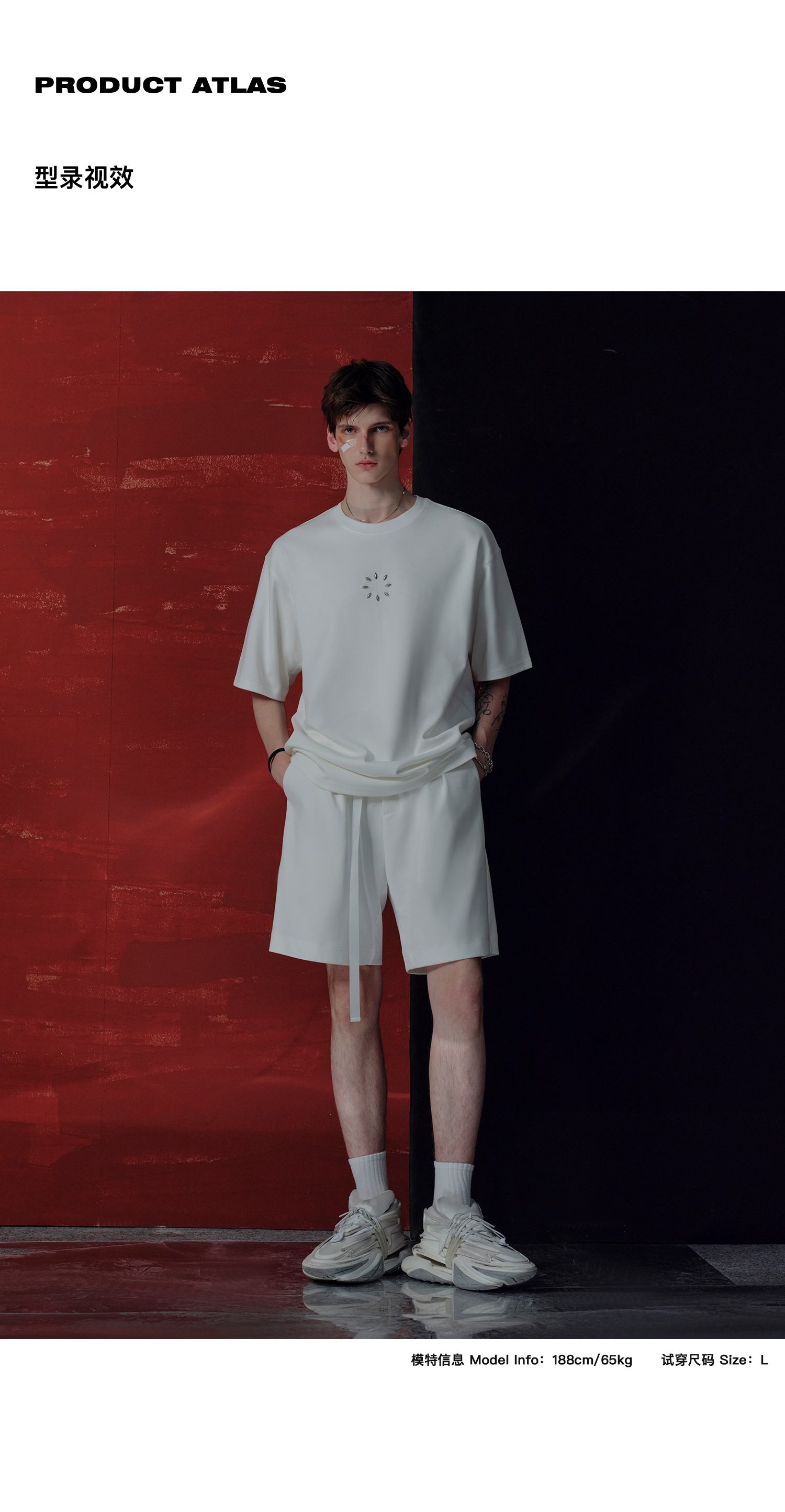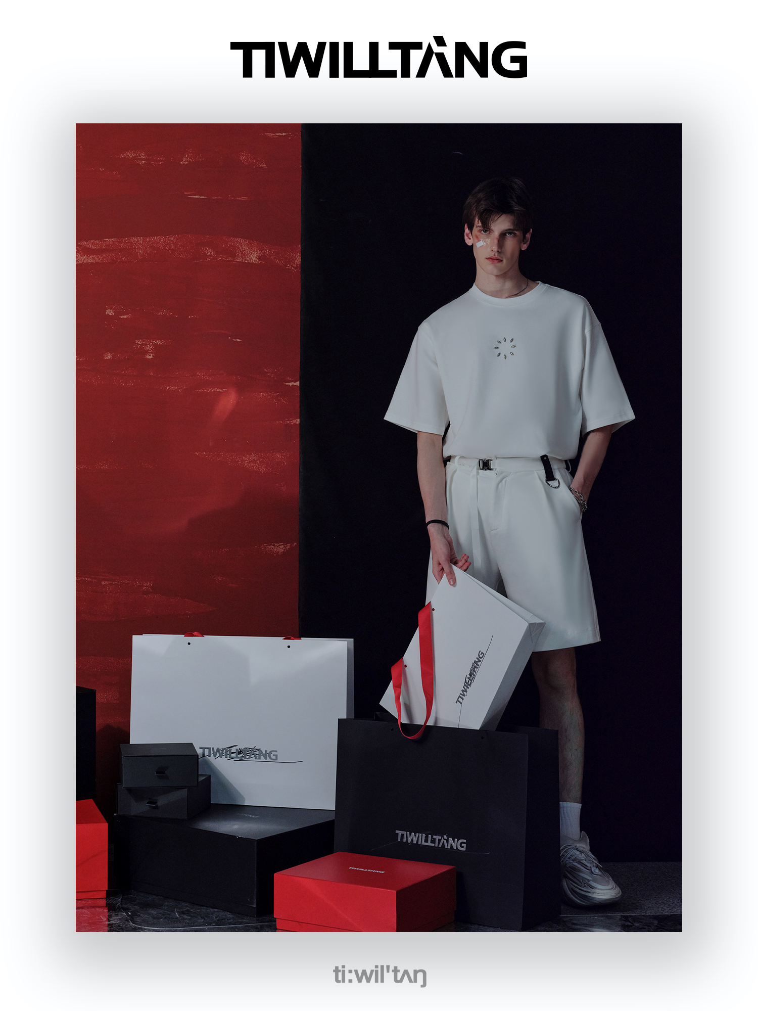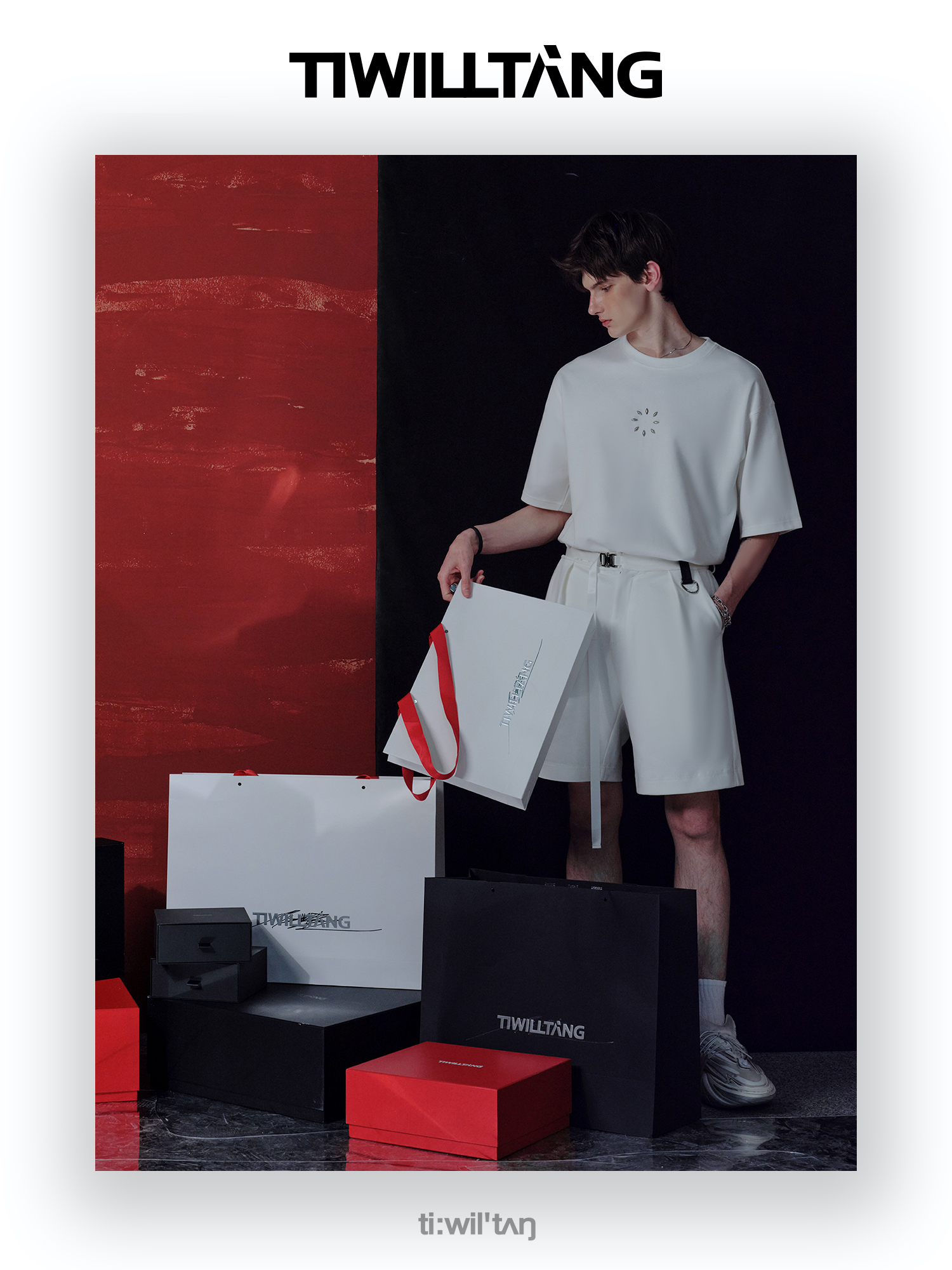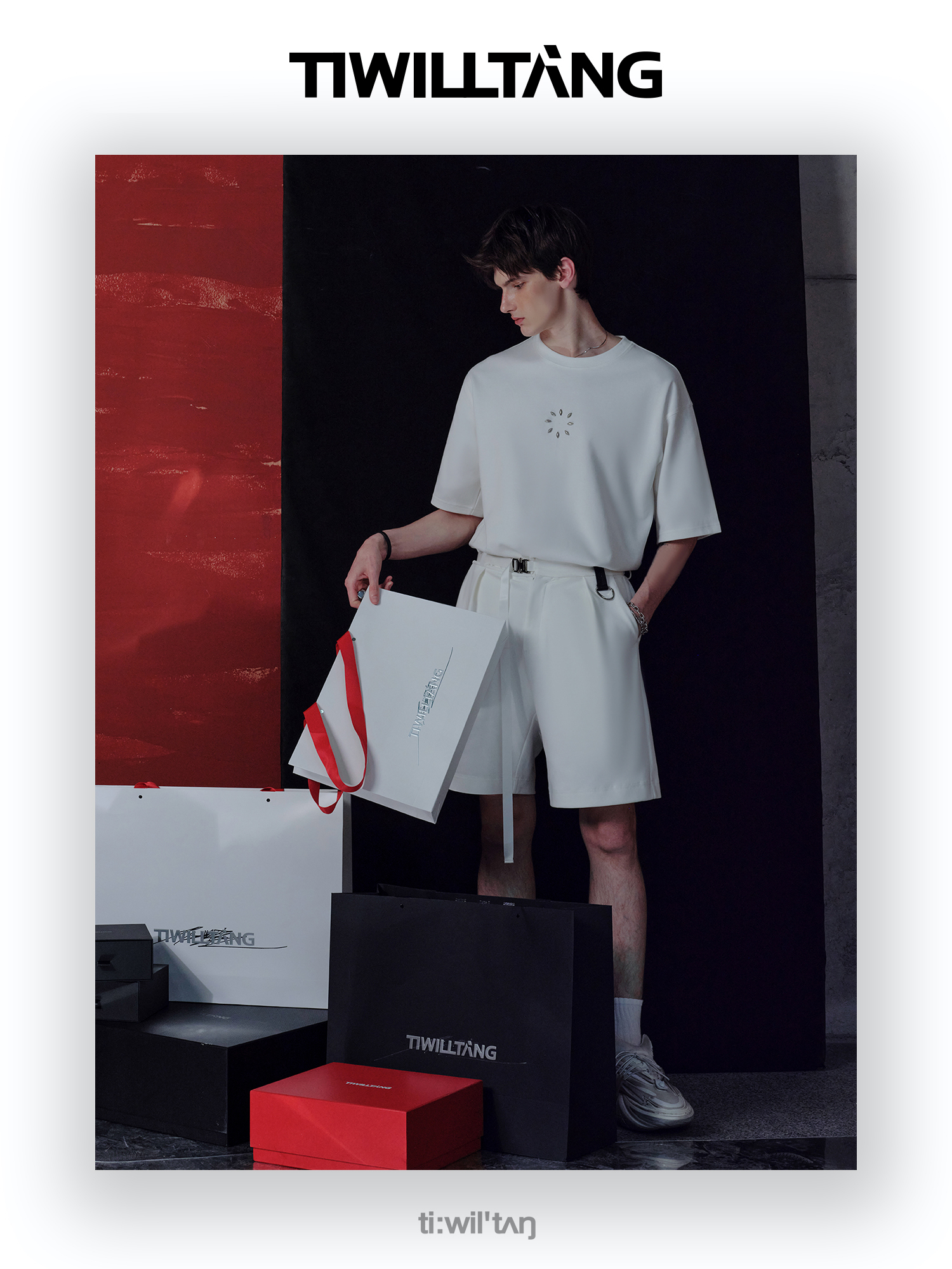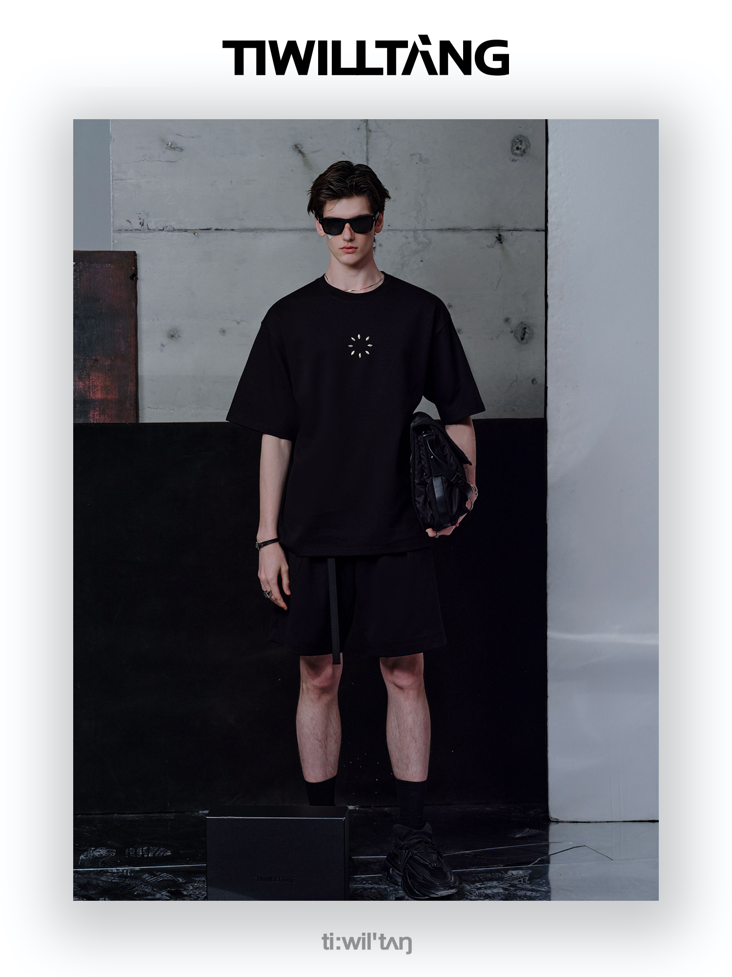 TIWILLTANG启世录“菱烬型制”袢带不对称腰头短裤宽松休闲裤男