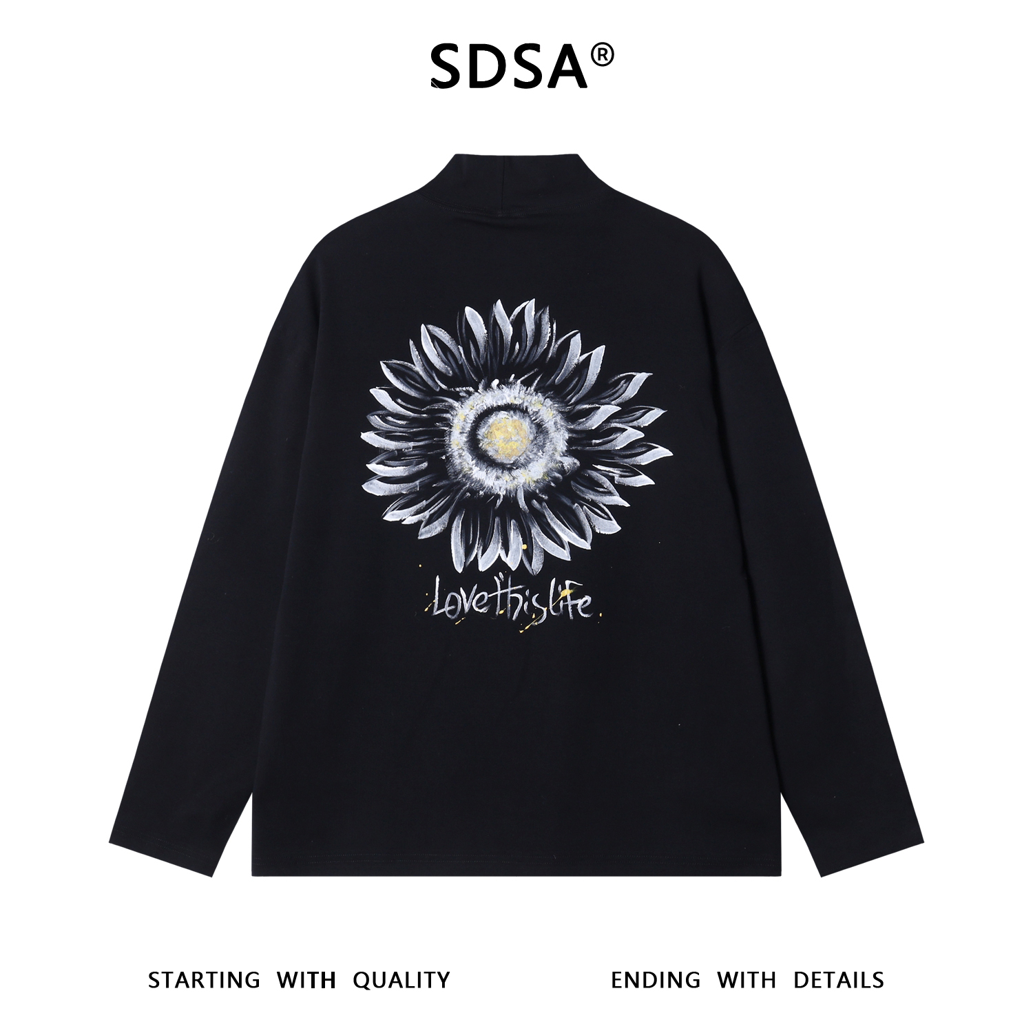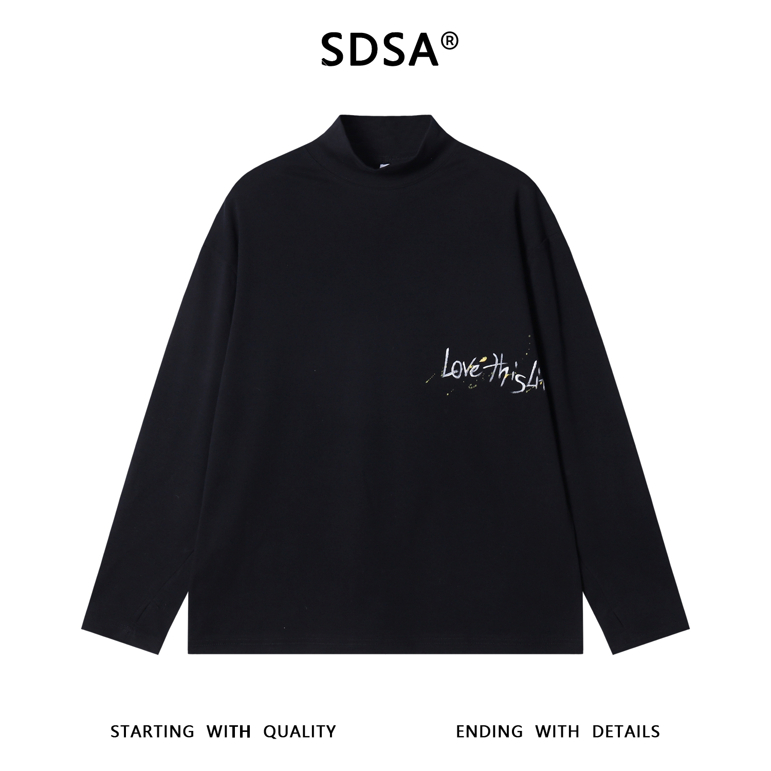T4994SDSA秋冬新款痞帅男装简约手绘花卉字母印花半高领长袖T恤百搭潮