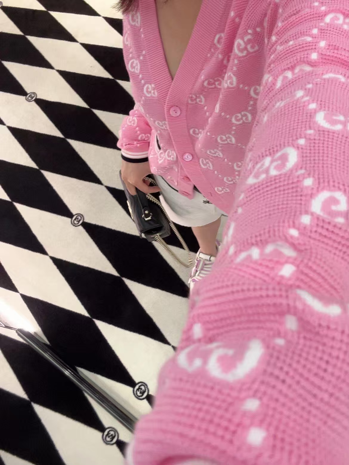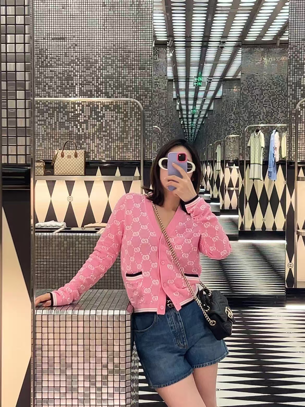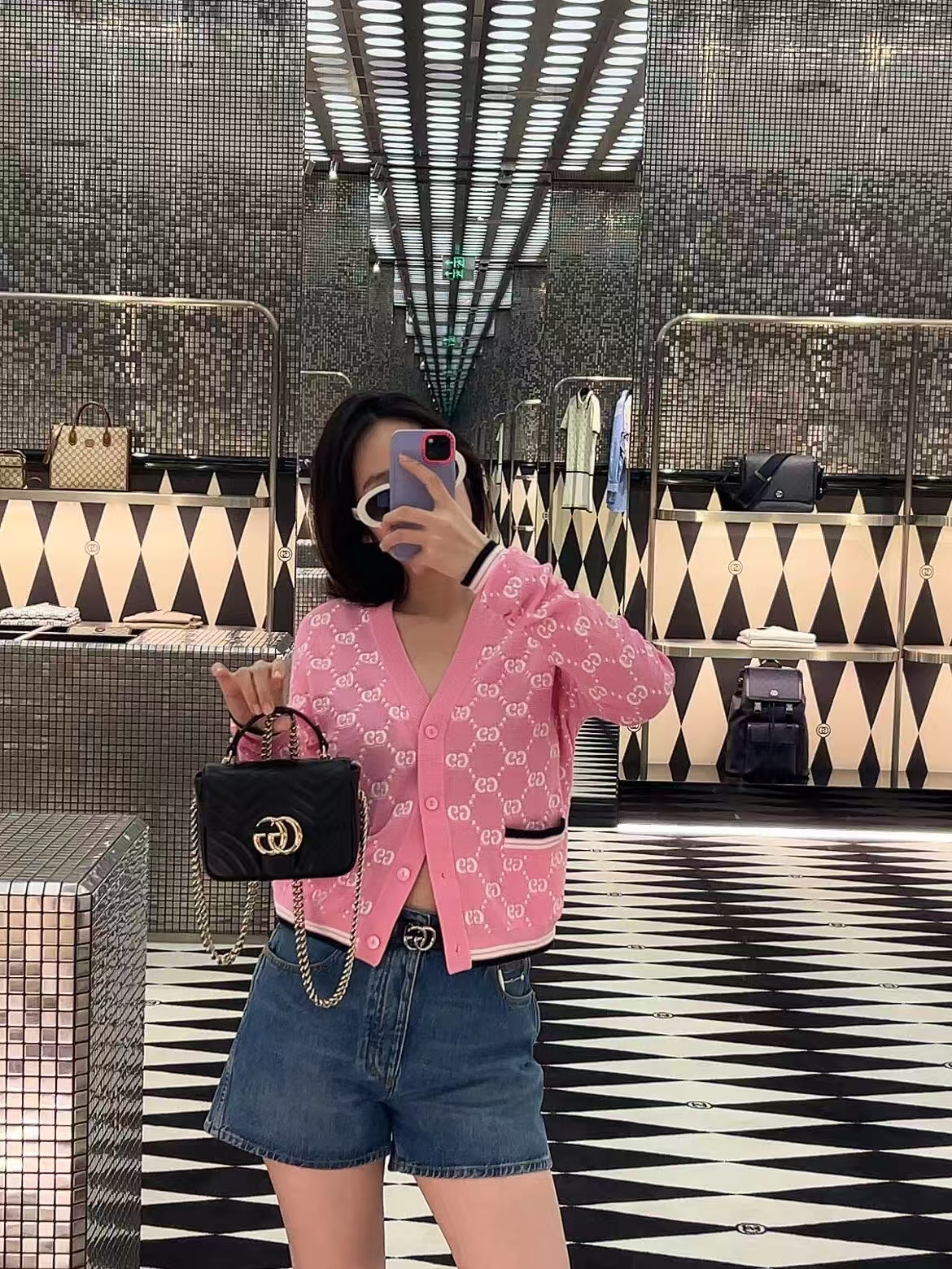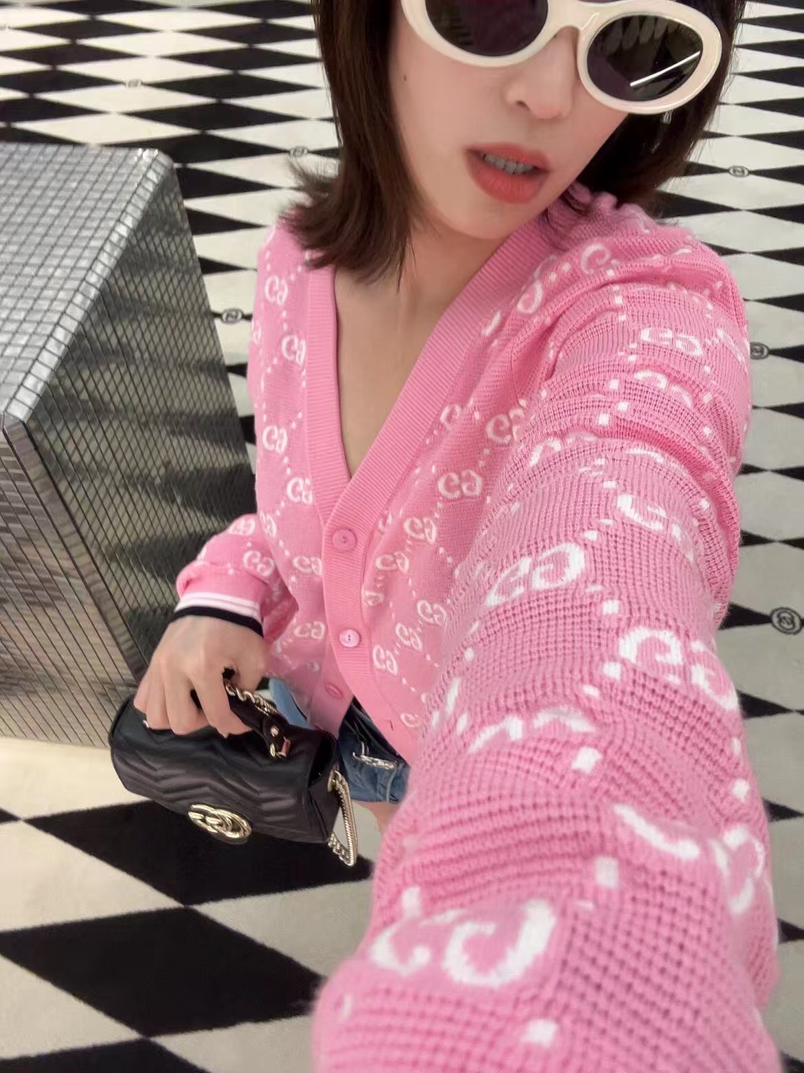 【原厂皮】GG Marmont系列以经典配色演绎全新廓形,811238展现早秋魅力风范。这款手提包以黑色绗缝V型皮革打造,搭配饰可拆卸栓扣浅金色调链条肩带。磁吸翻盖开合缀饰双G,令整个设计魅力倍增。