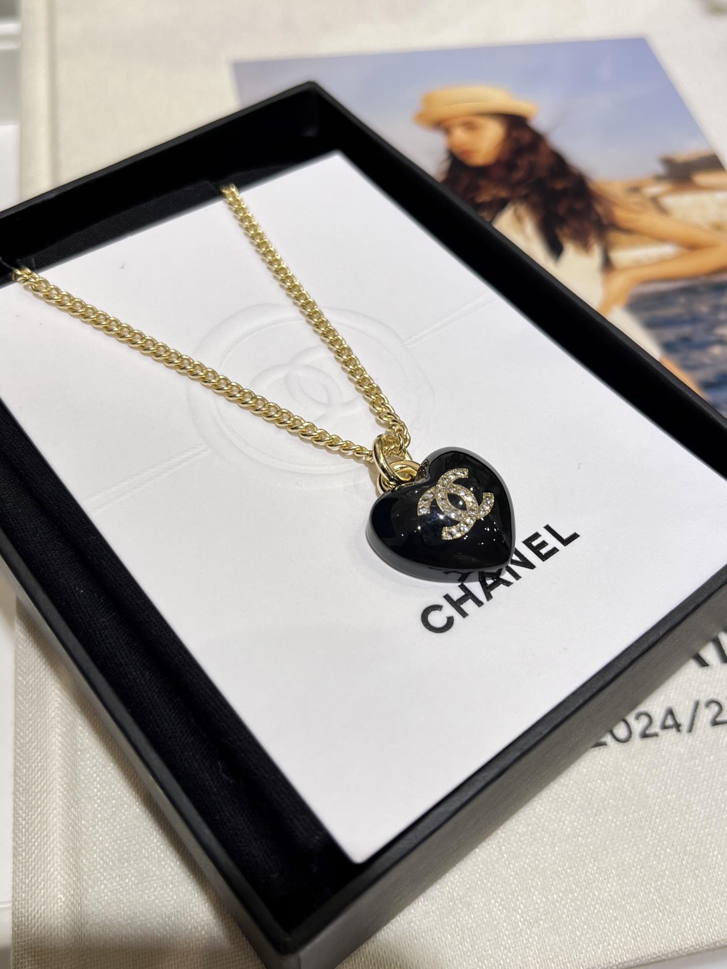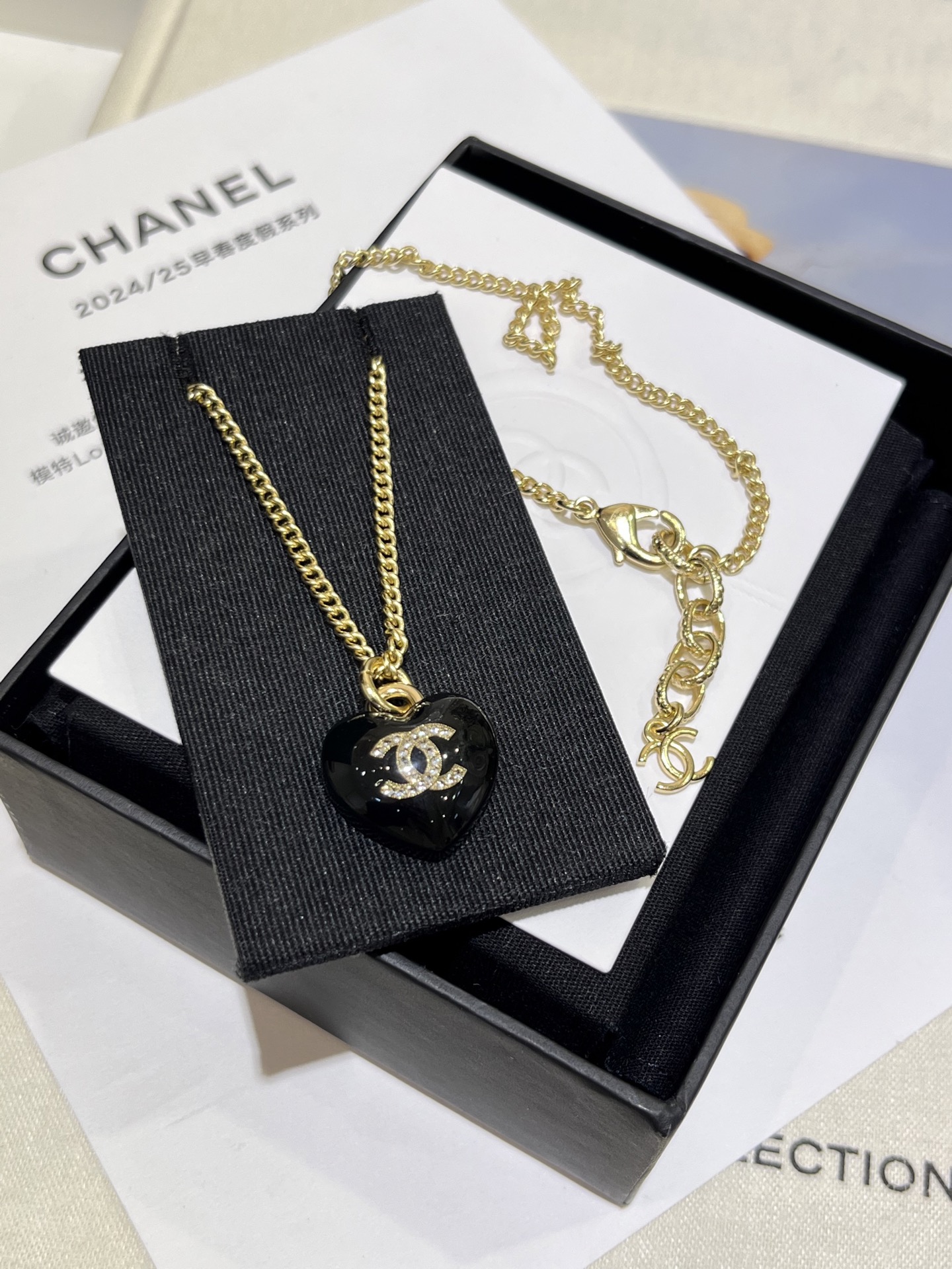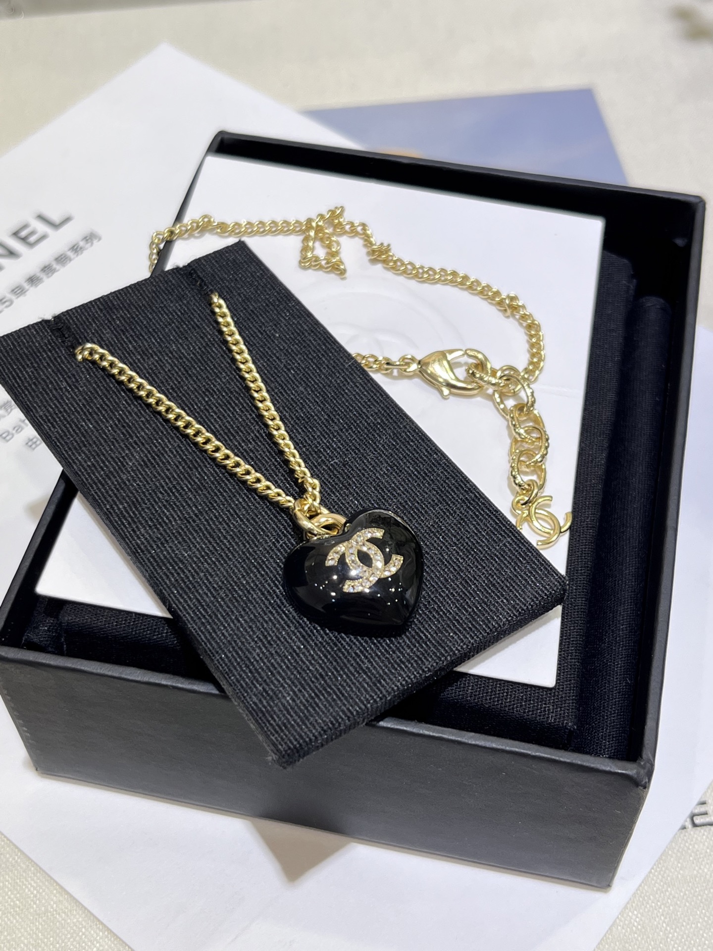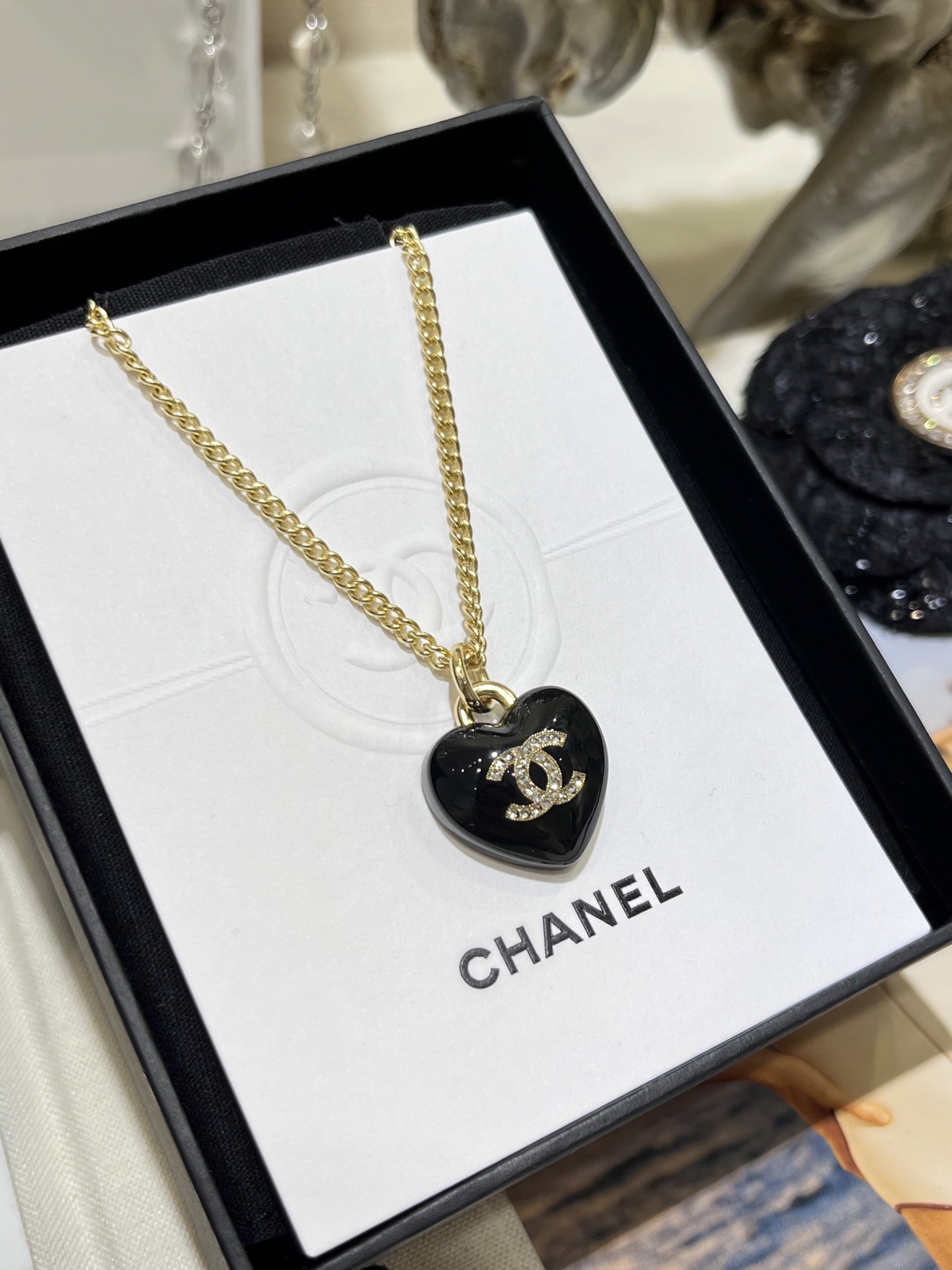 香奶奶 新款金色满钻双C黑色树脂爱心项链