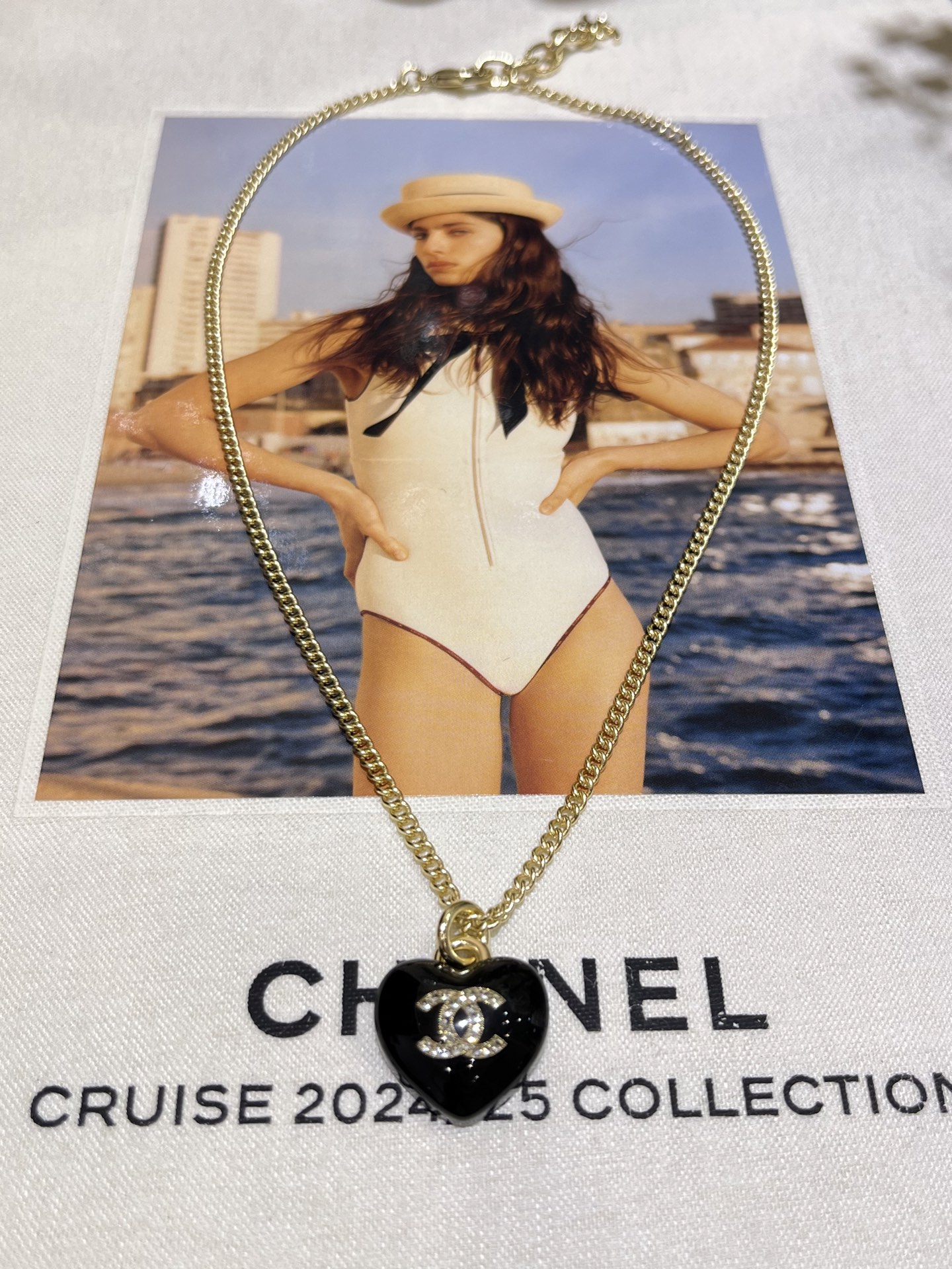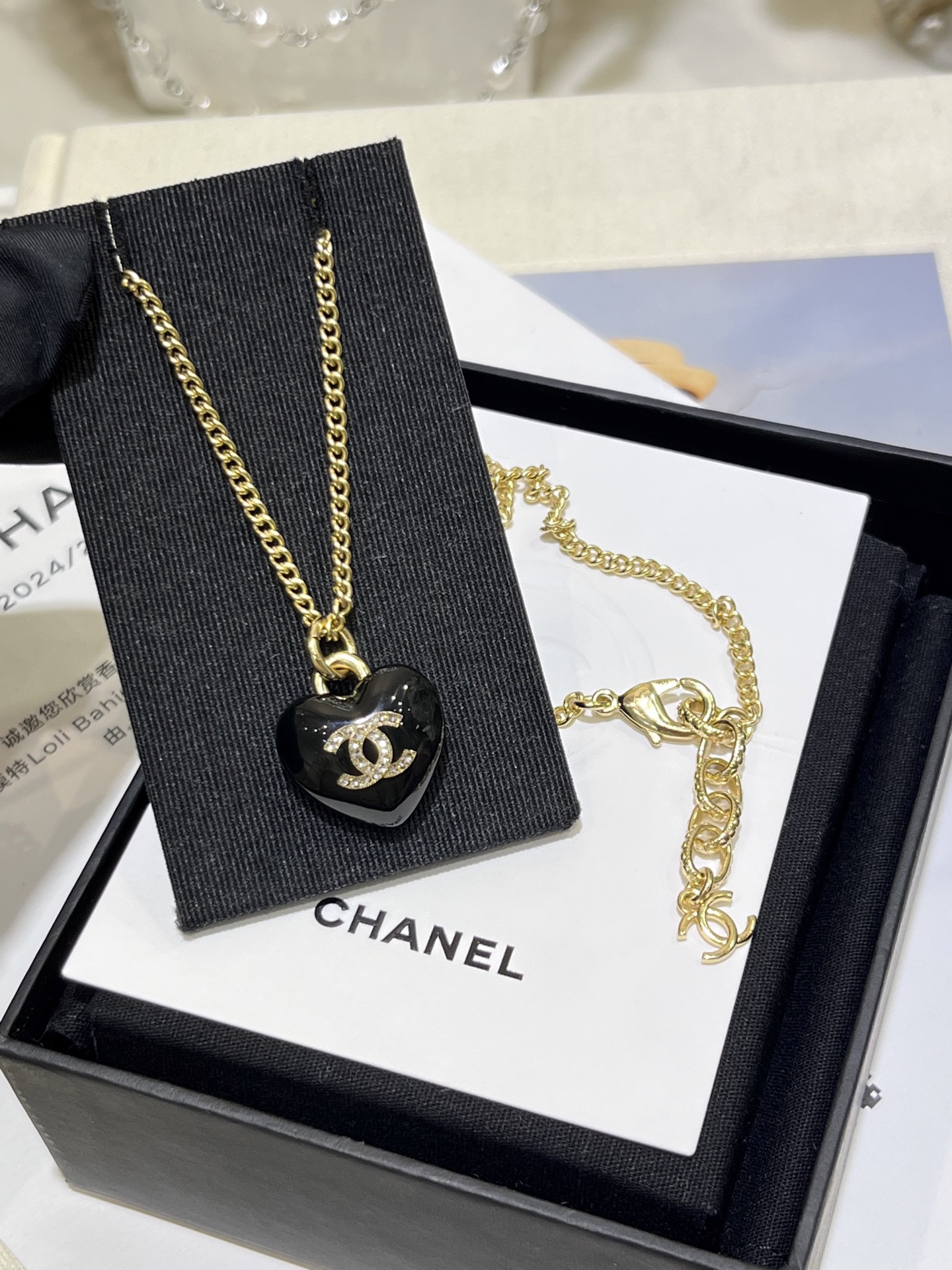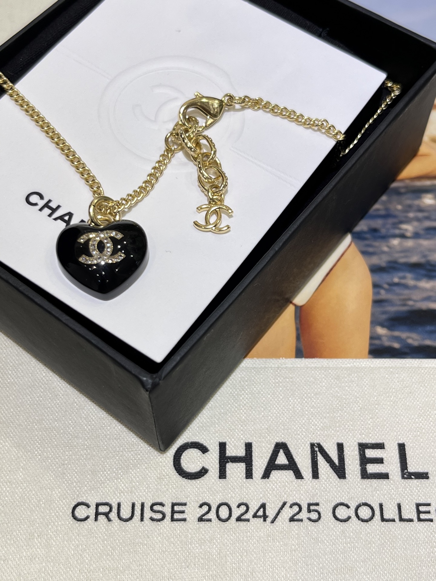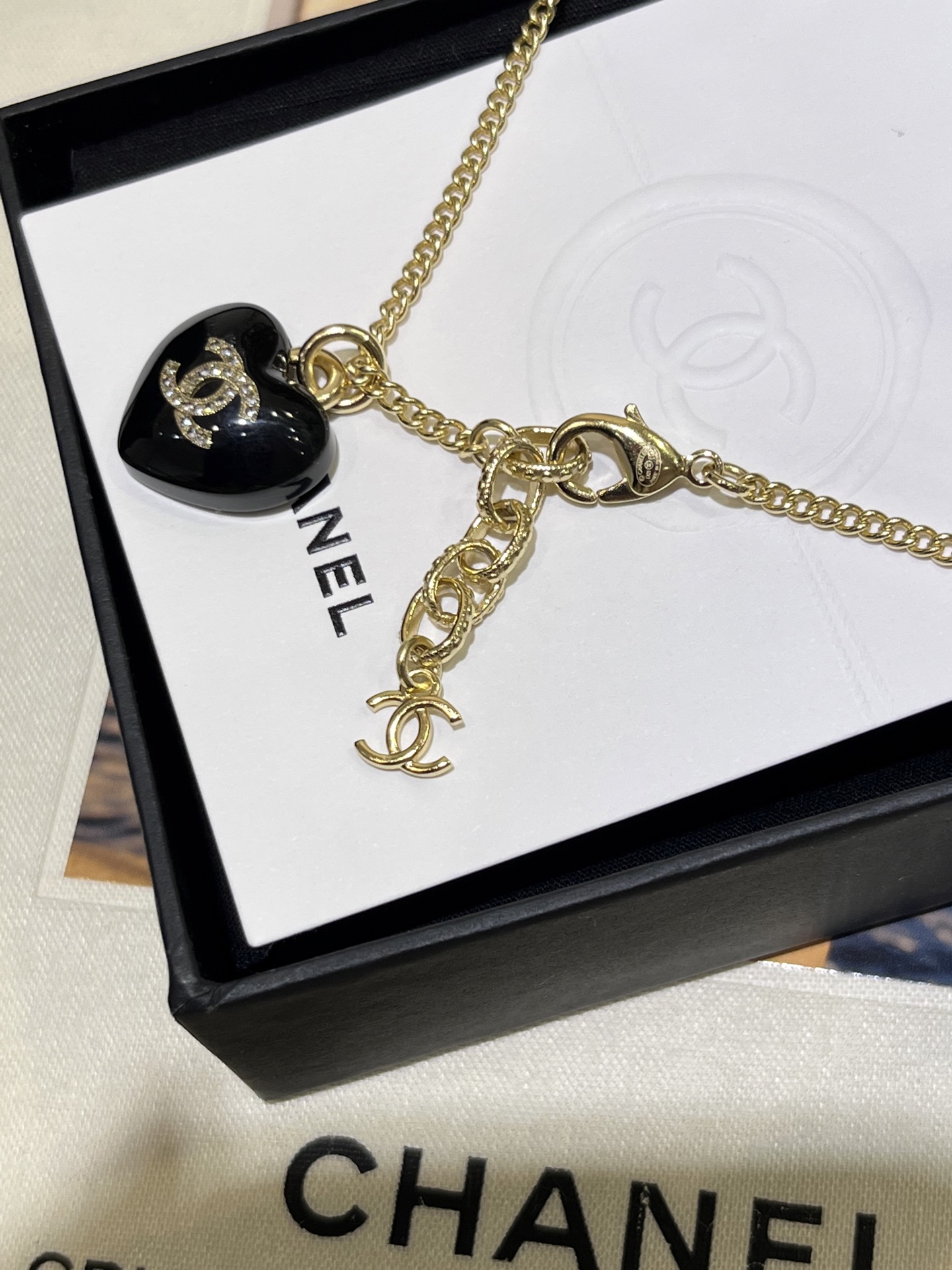 香奶奶 新款金色满钻双C黑色树脂爱心项链