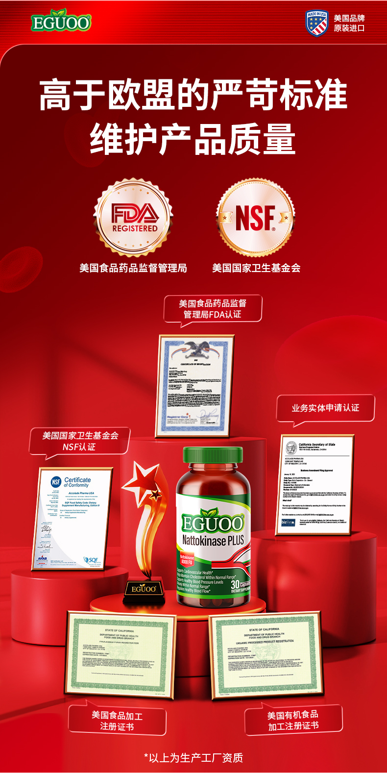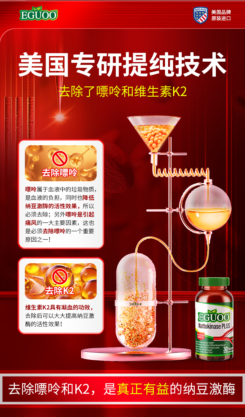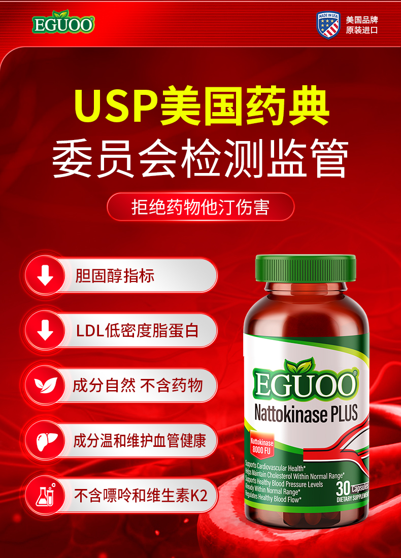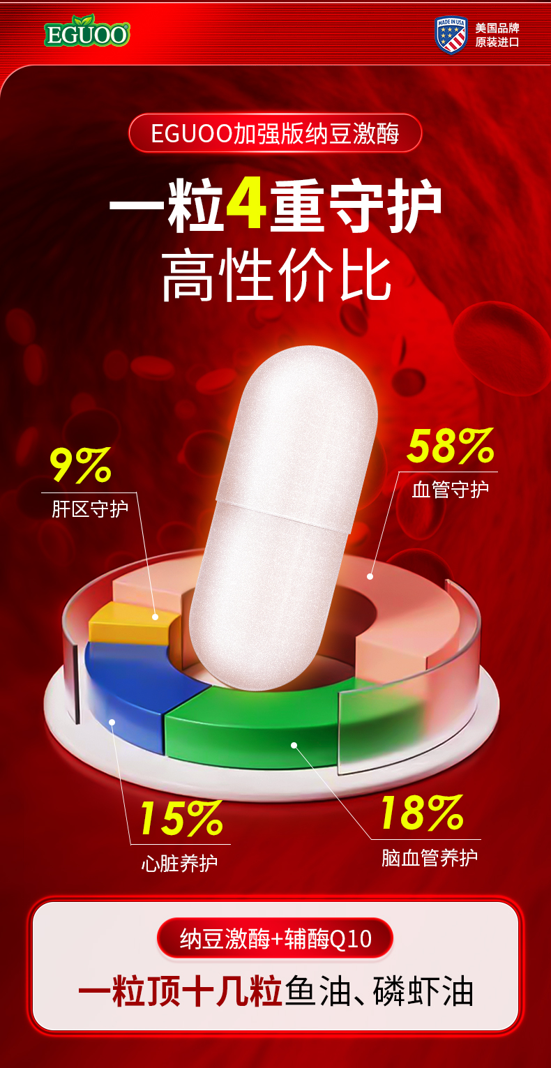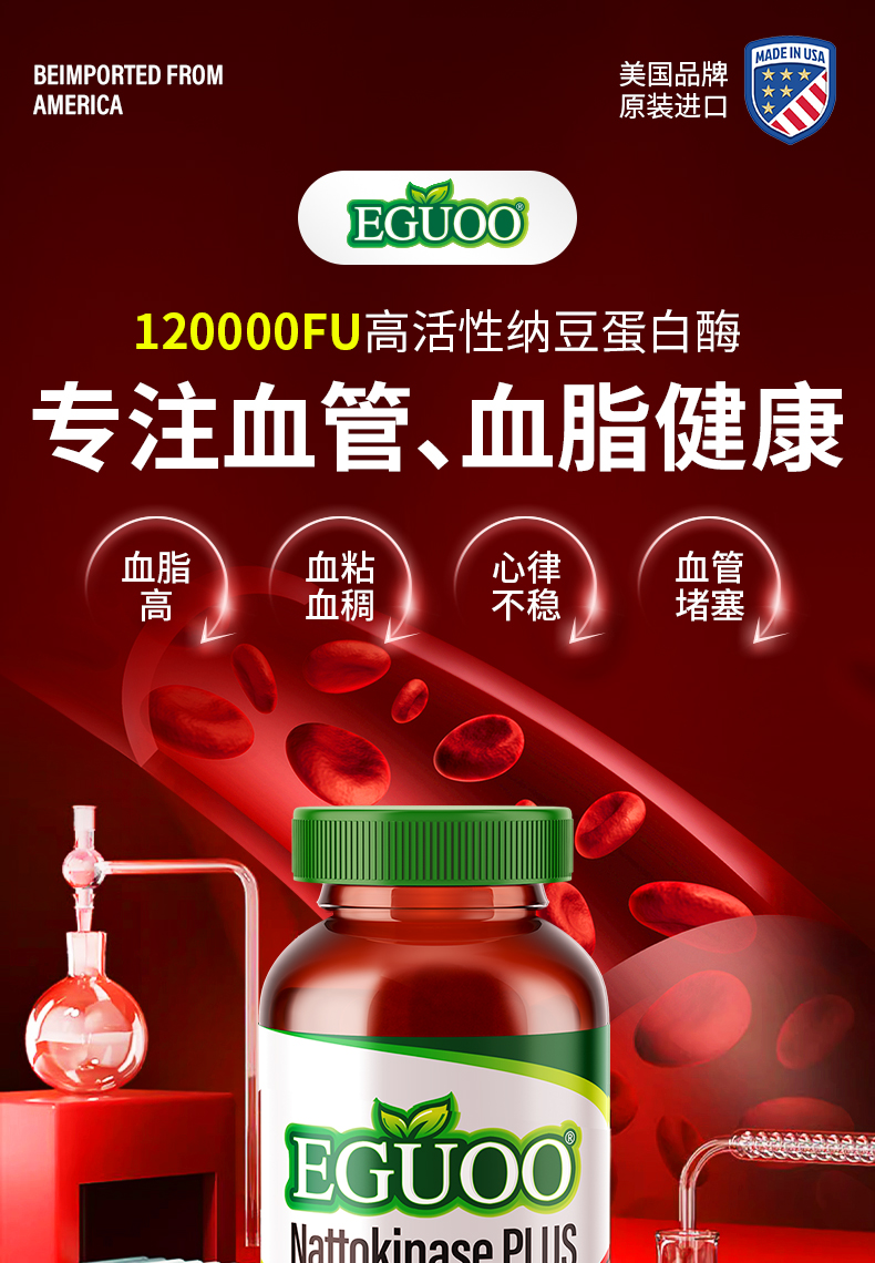 美国进口EGUOO高活性纳豆激酶中老年心血脑辅酶Q10疏通养护心脏k