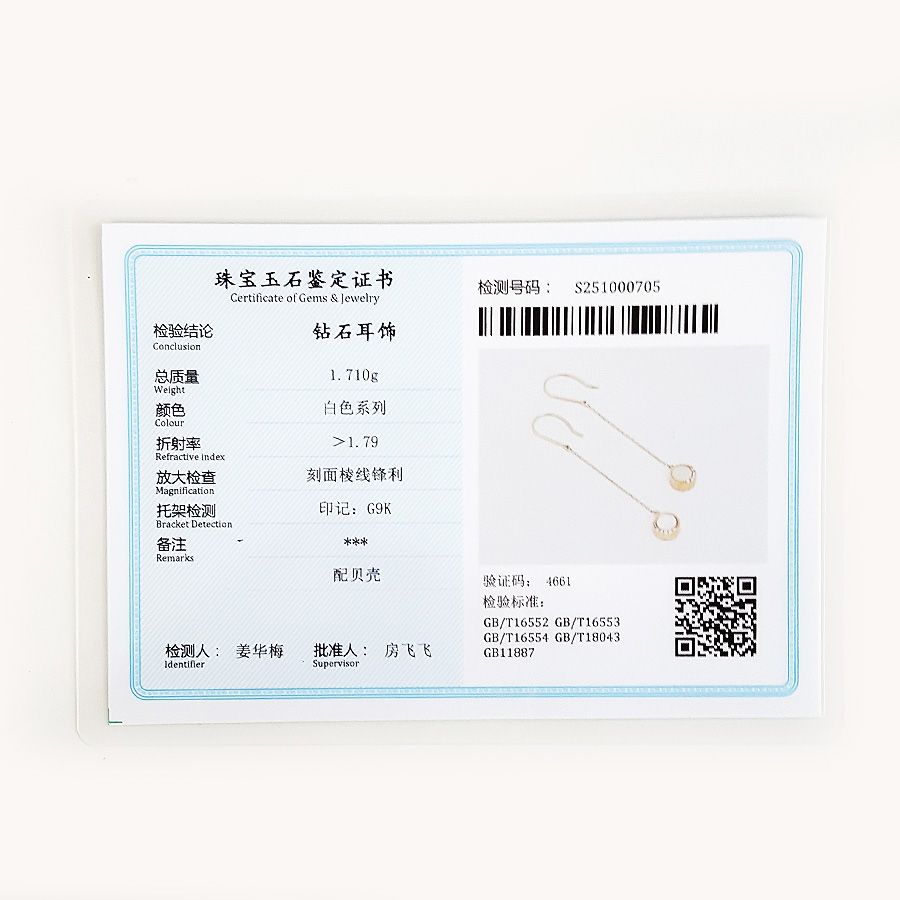 【天然正品】AU375黄金时尚设计款双面贝母造型钻石耳环52.3*7.2*3.8MM(皆取最大值)女士191025NJS40 特价:880元