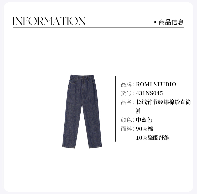 ROMI STUDIO“优雅丹宁”长绒竹节棉肌理花纱感绳染牛仔裤 431NS045