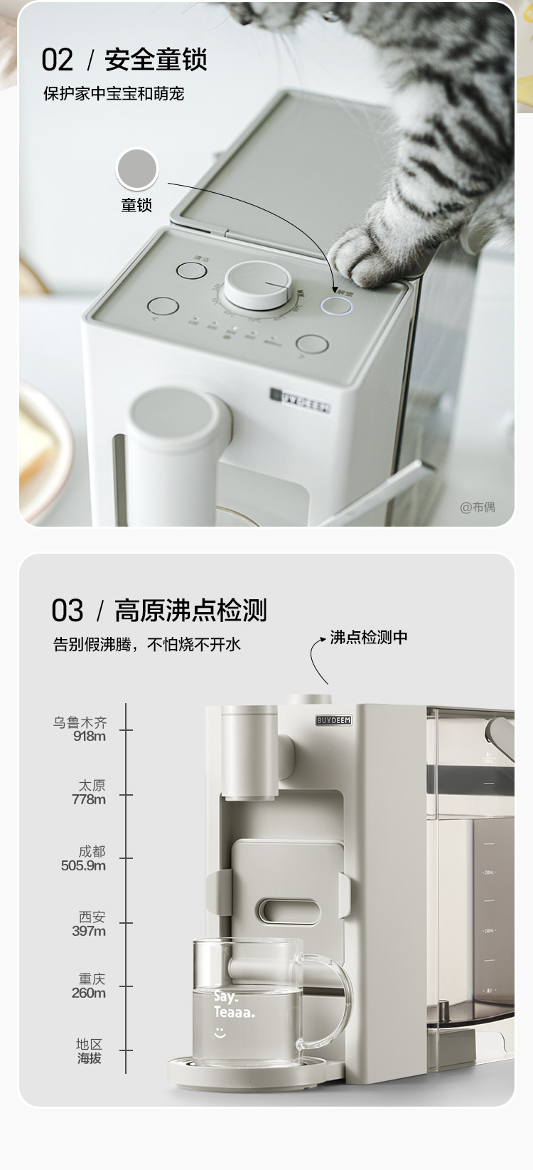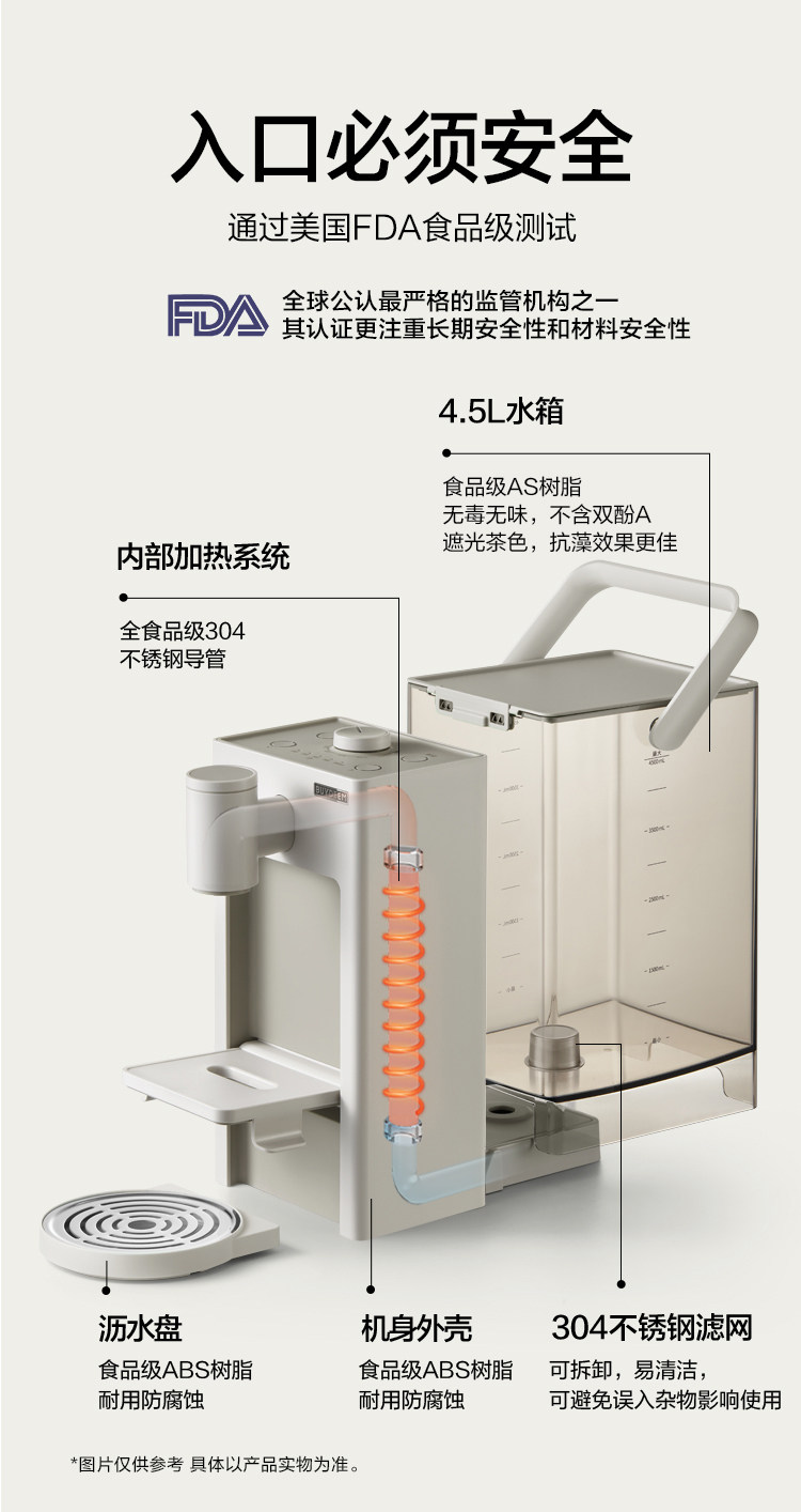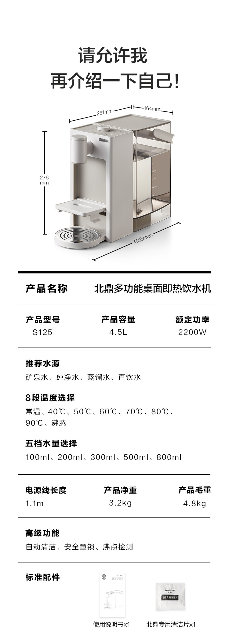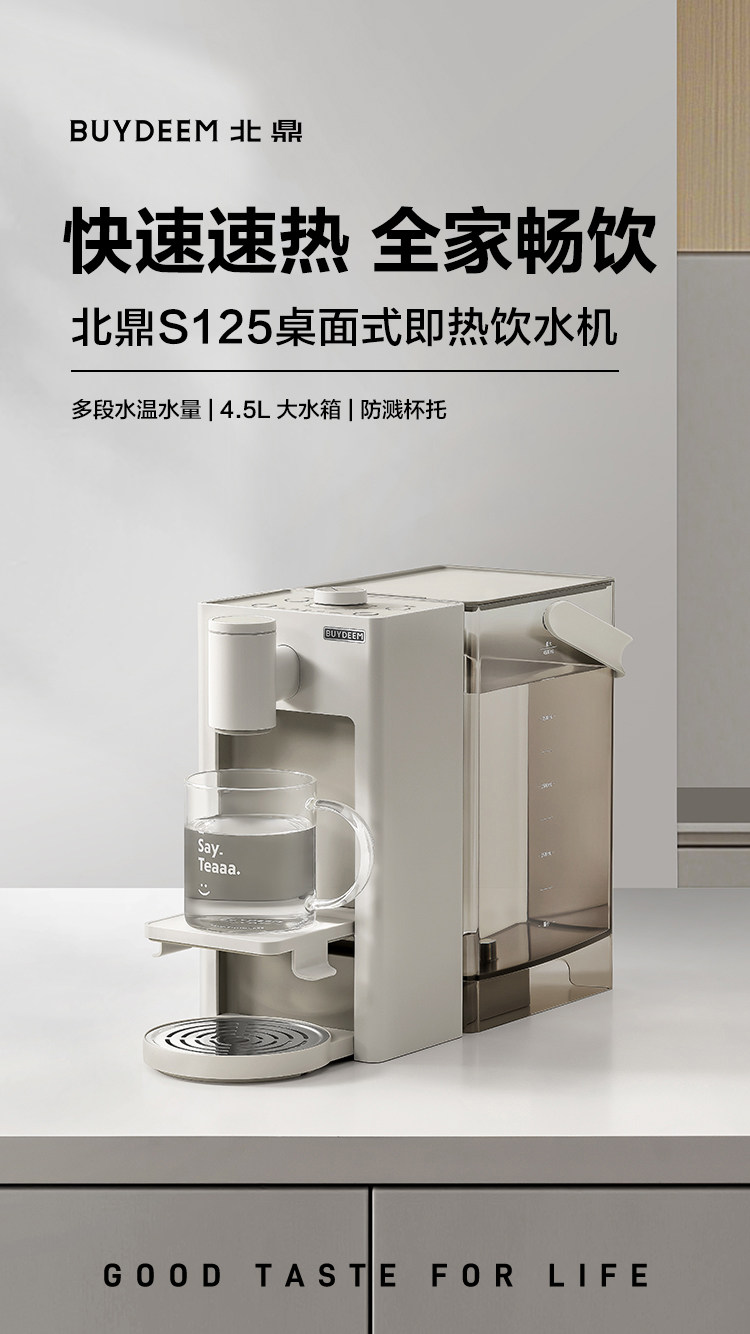 北鼎S125桌面即热式饮水机4.5L水箱家用饮水器多段水温台式饮水机