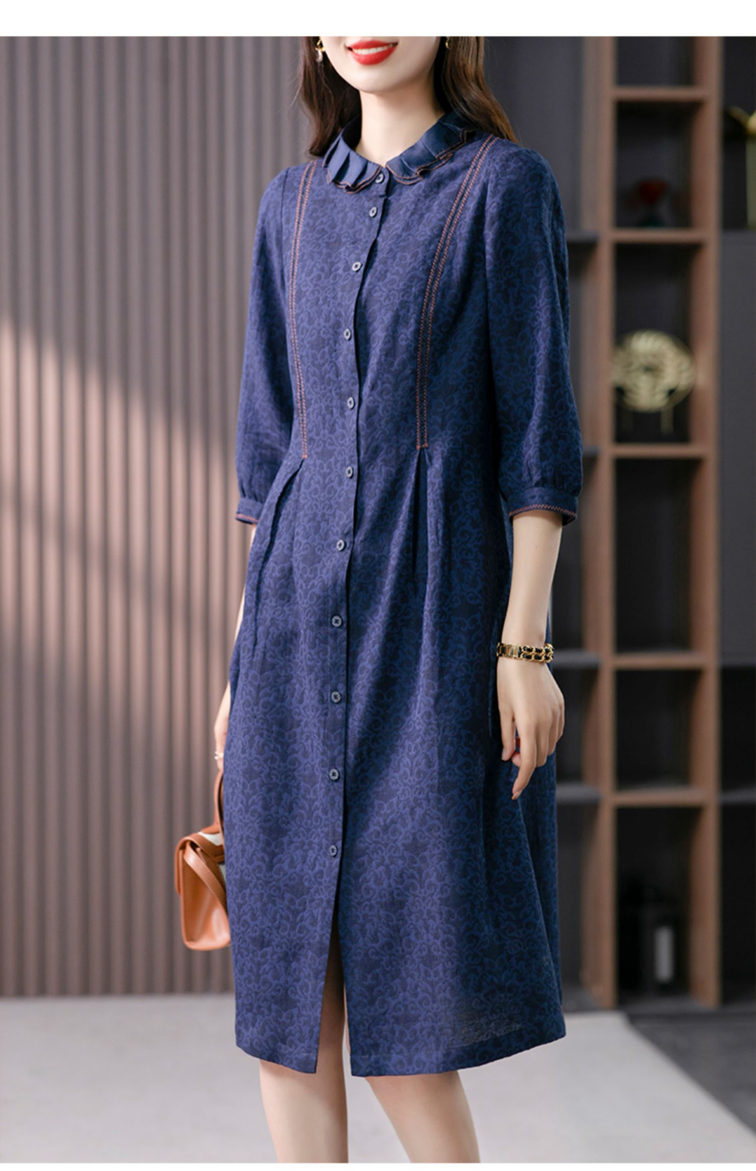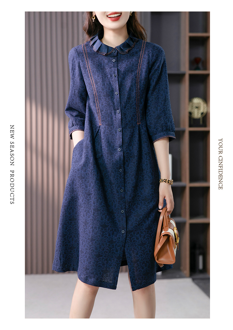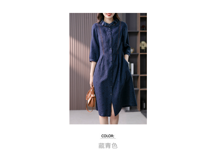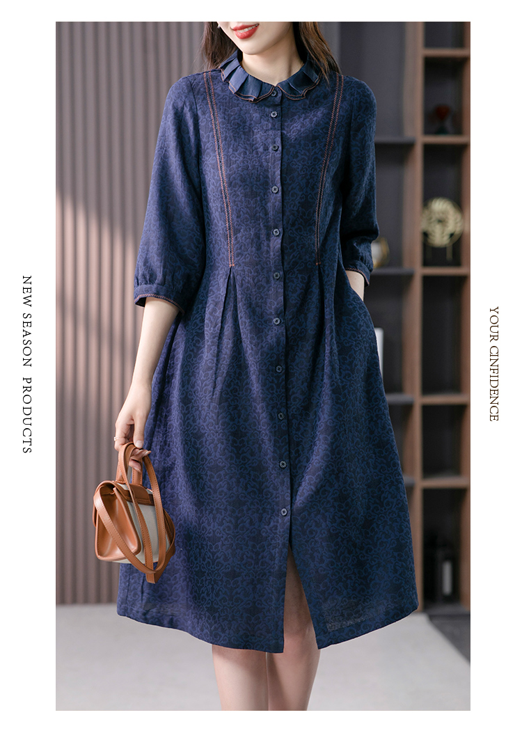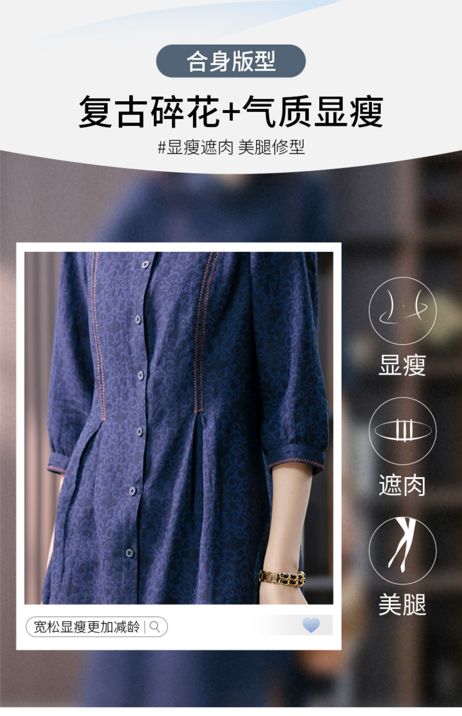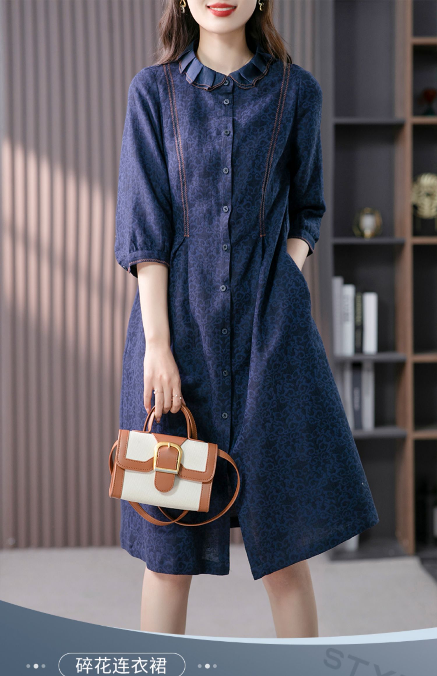 87849原形设计感复古碎花中长款裙子女2024春夏季新款气质棉麻连衣裙