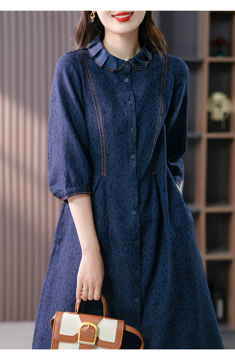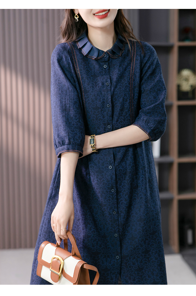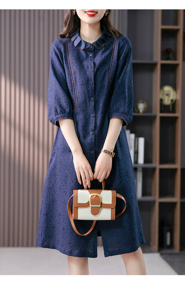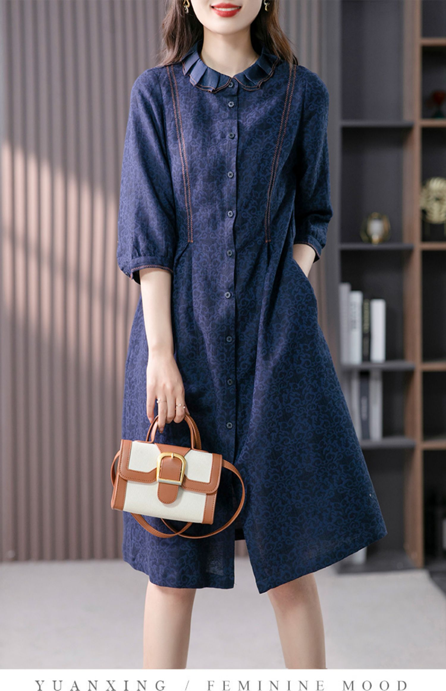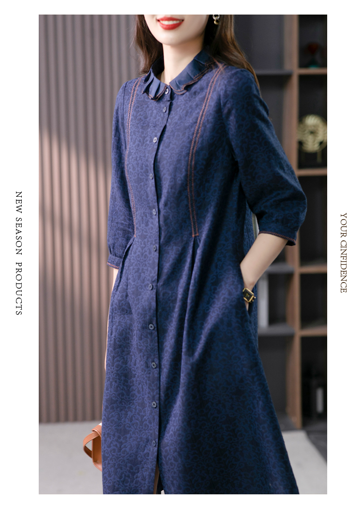 87849原形设计感复古碎花中长款裙子女2024春夏季新款气质棉麻连衣裙