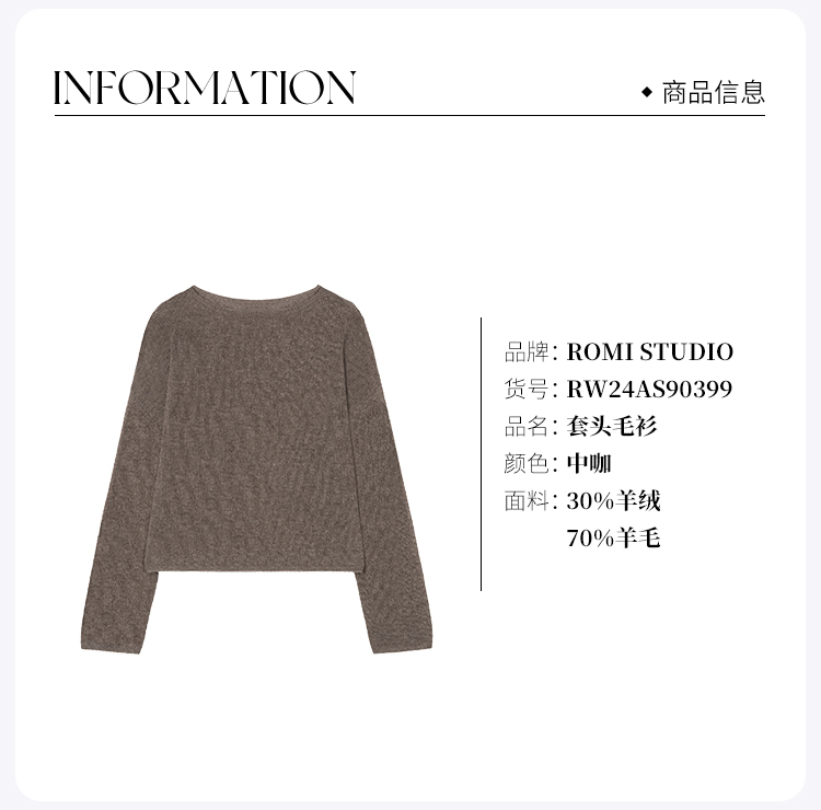 ROMI STUDIO“感知秋意”7针单边羊绒羊毛混纺套头毛衫 RW24AS90399