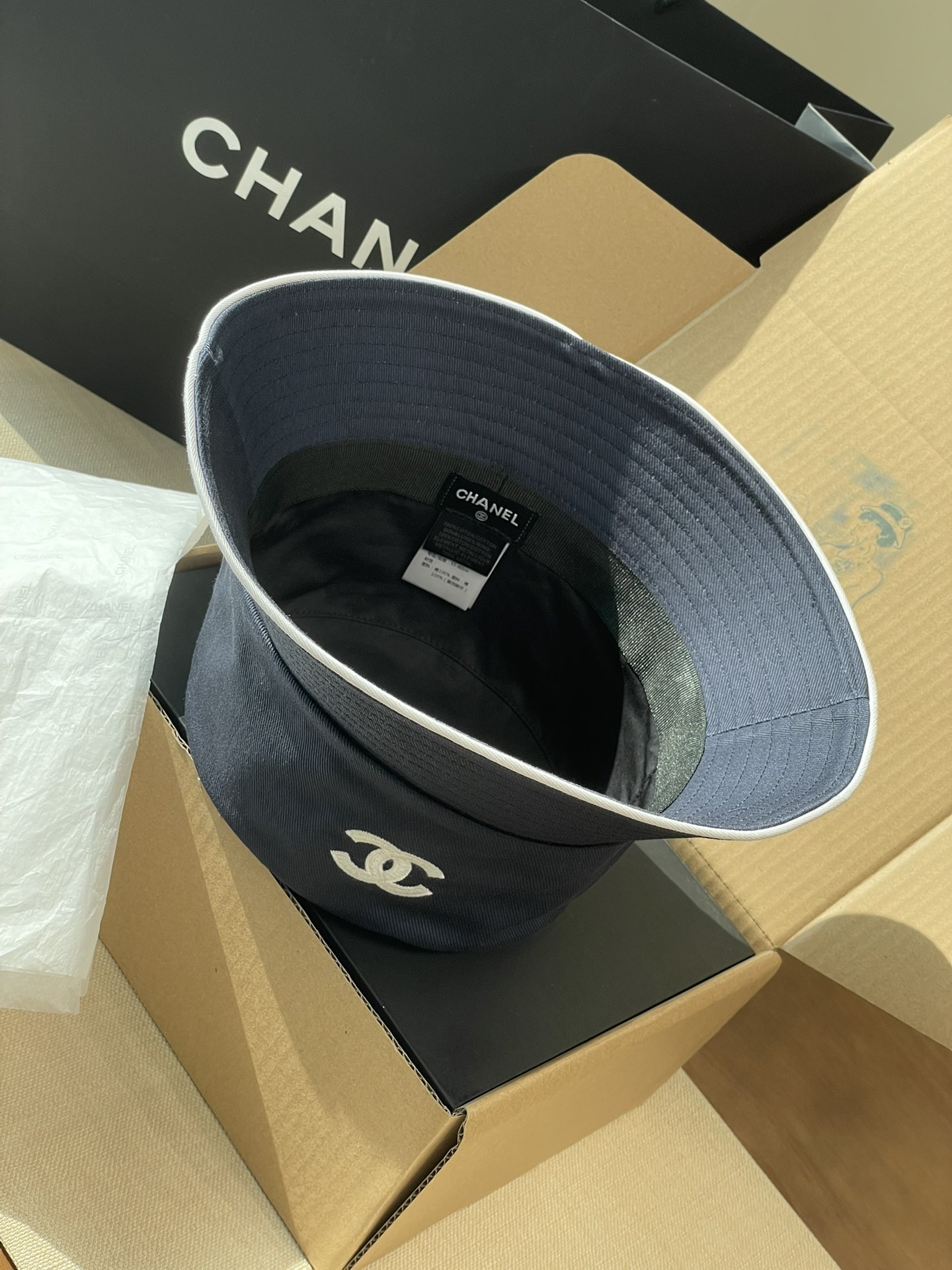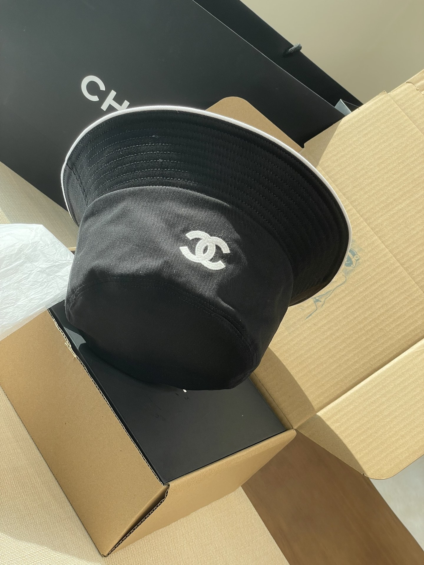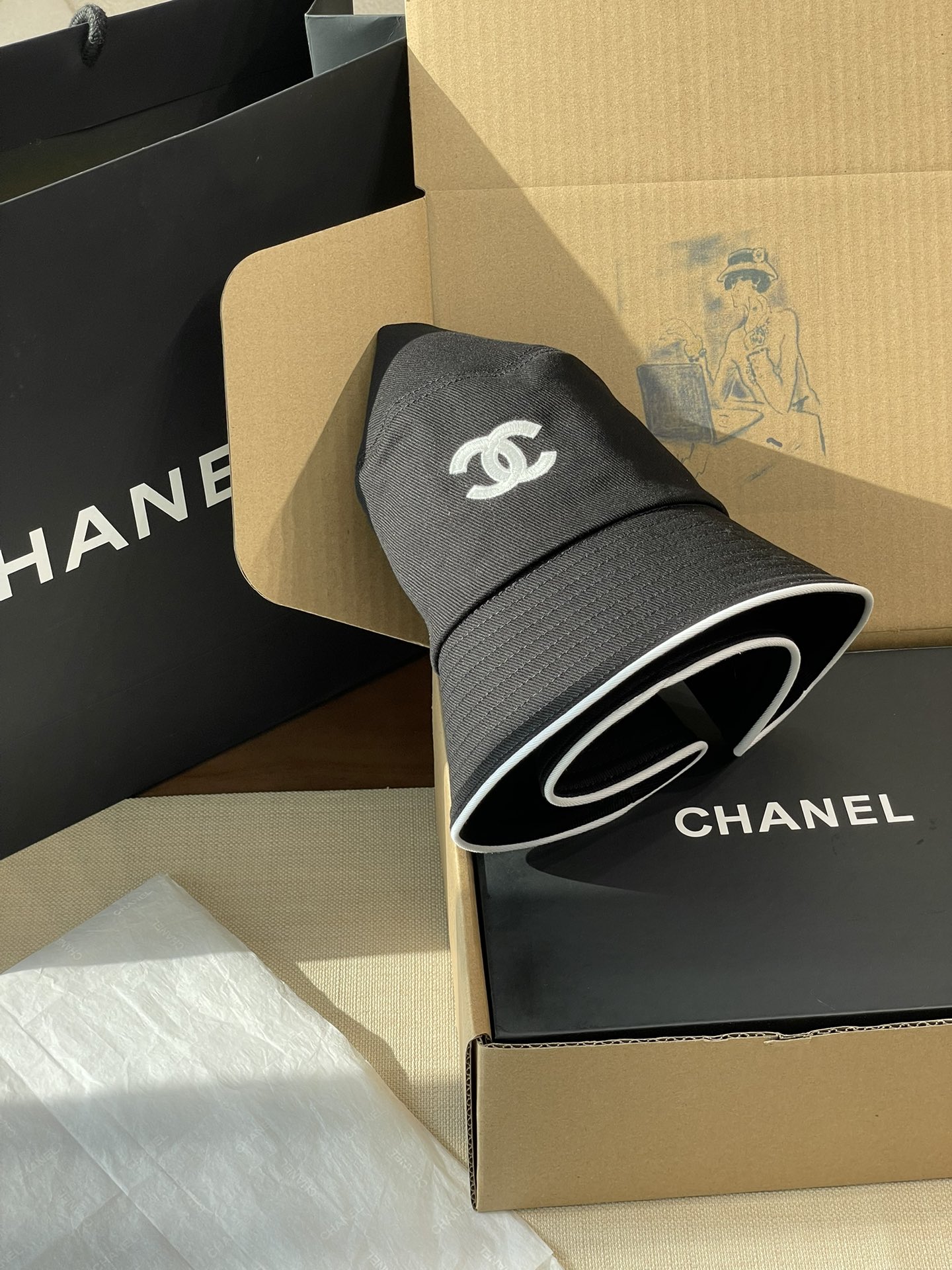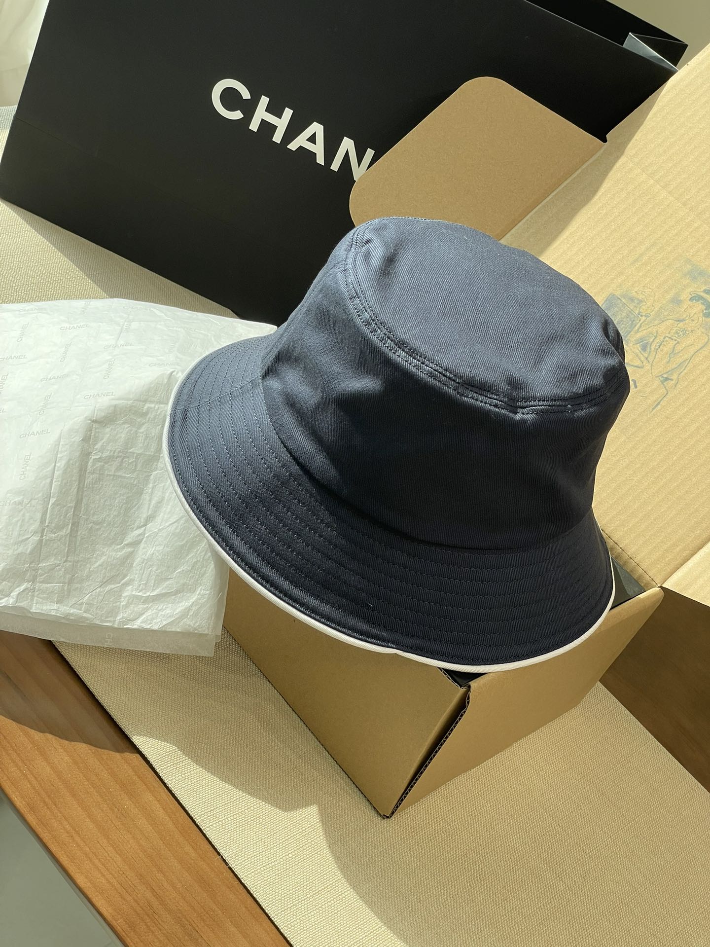 2025 新款Chanel香奈儿渔夫帽,拥有经典的黑、白、蓝三种颜色。