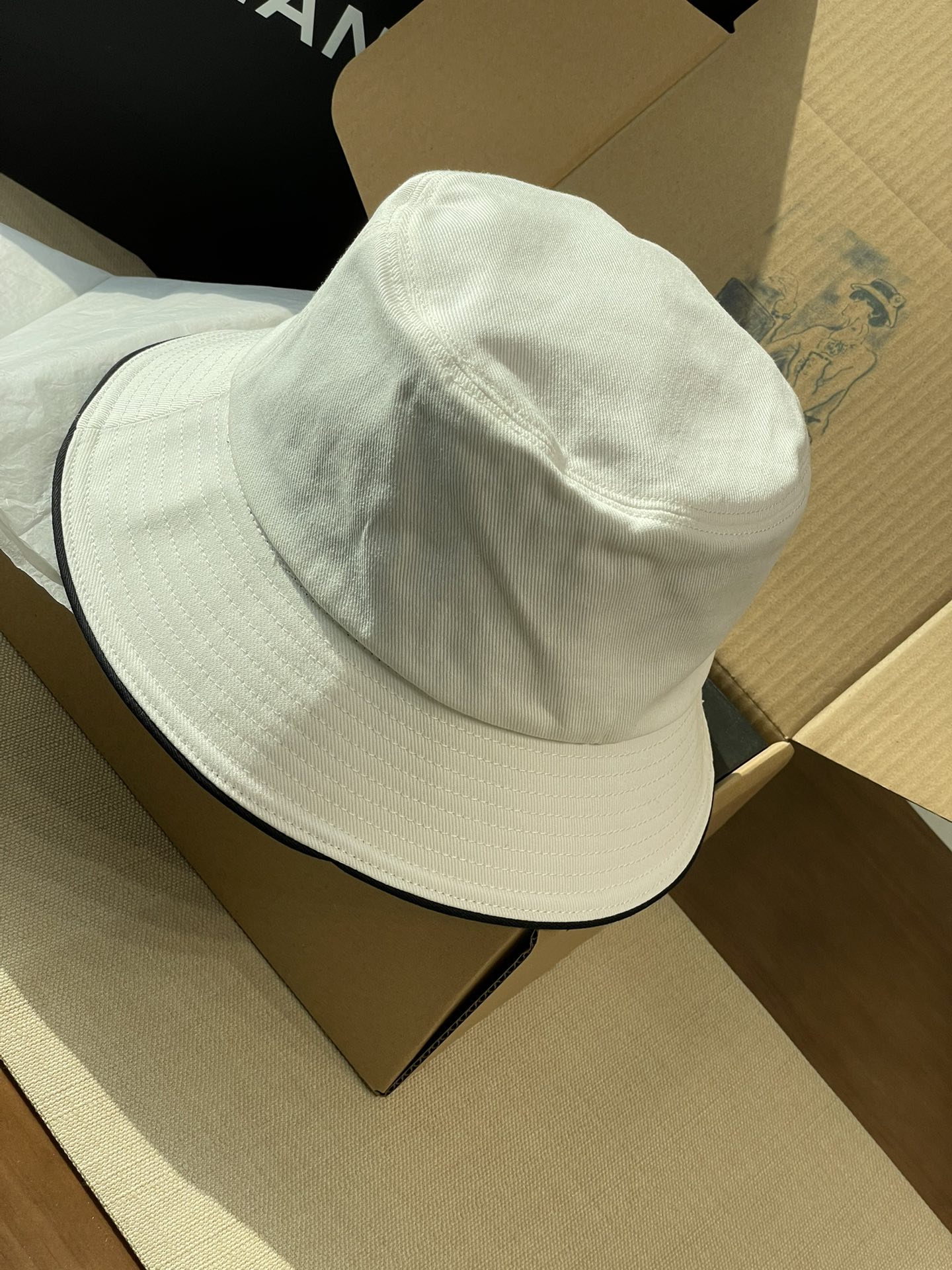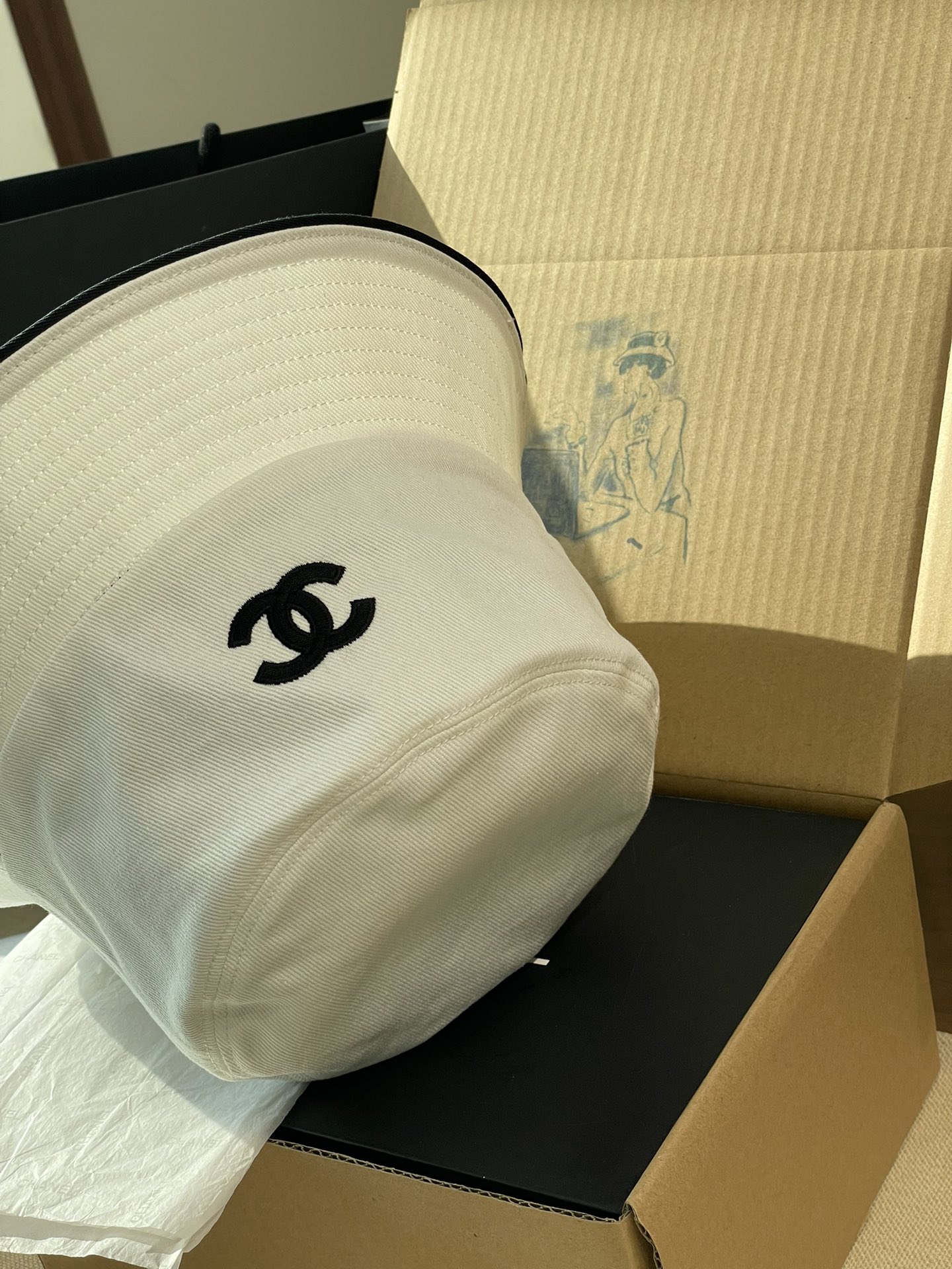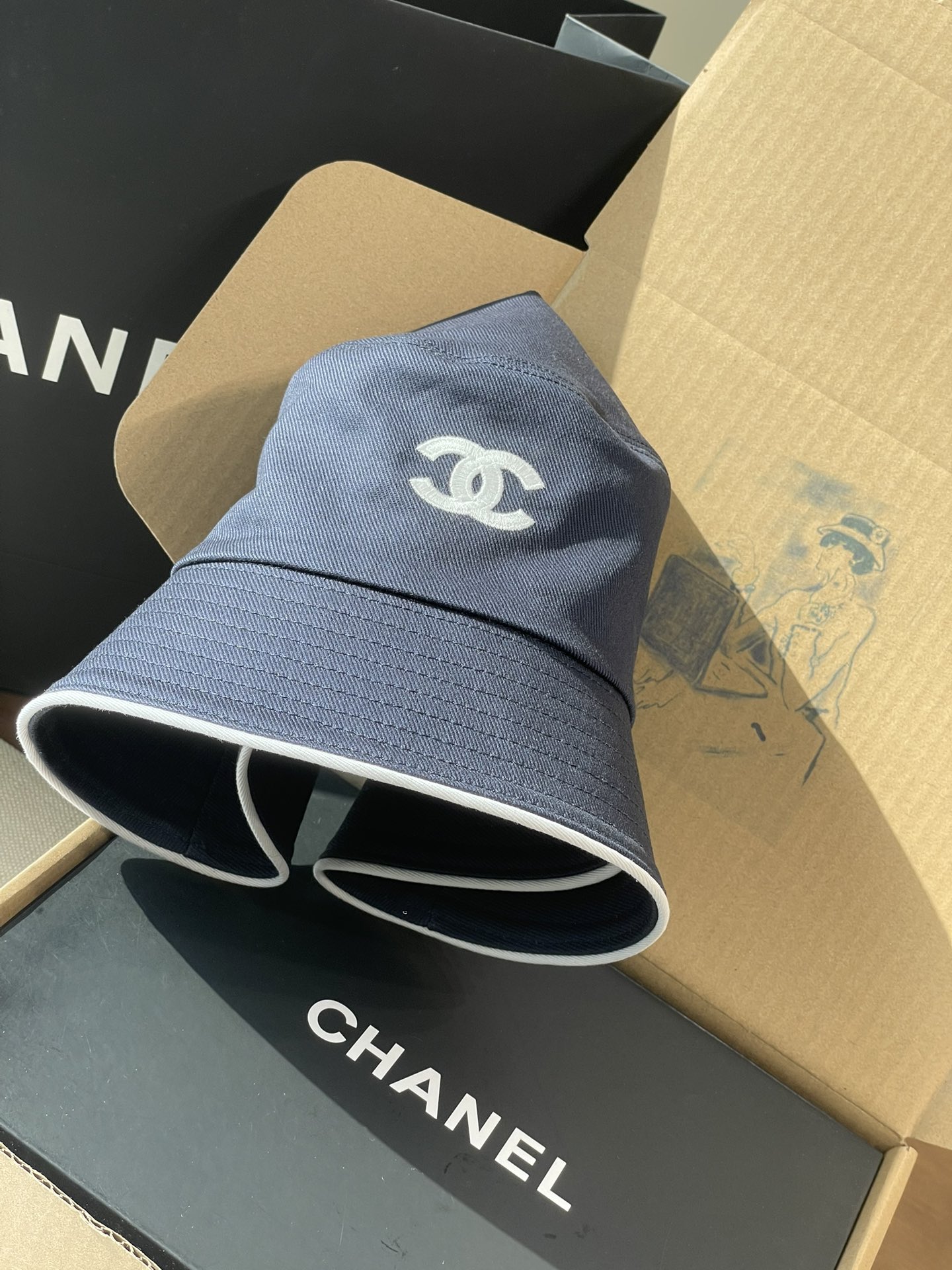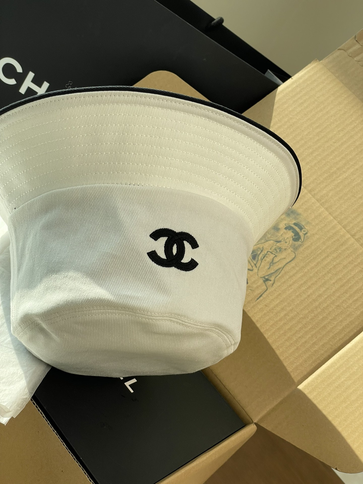 2025 新款Chanel香奈儿渔夫帽,拥有经典的黑、白、蓝三种颜色。